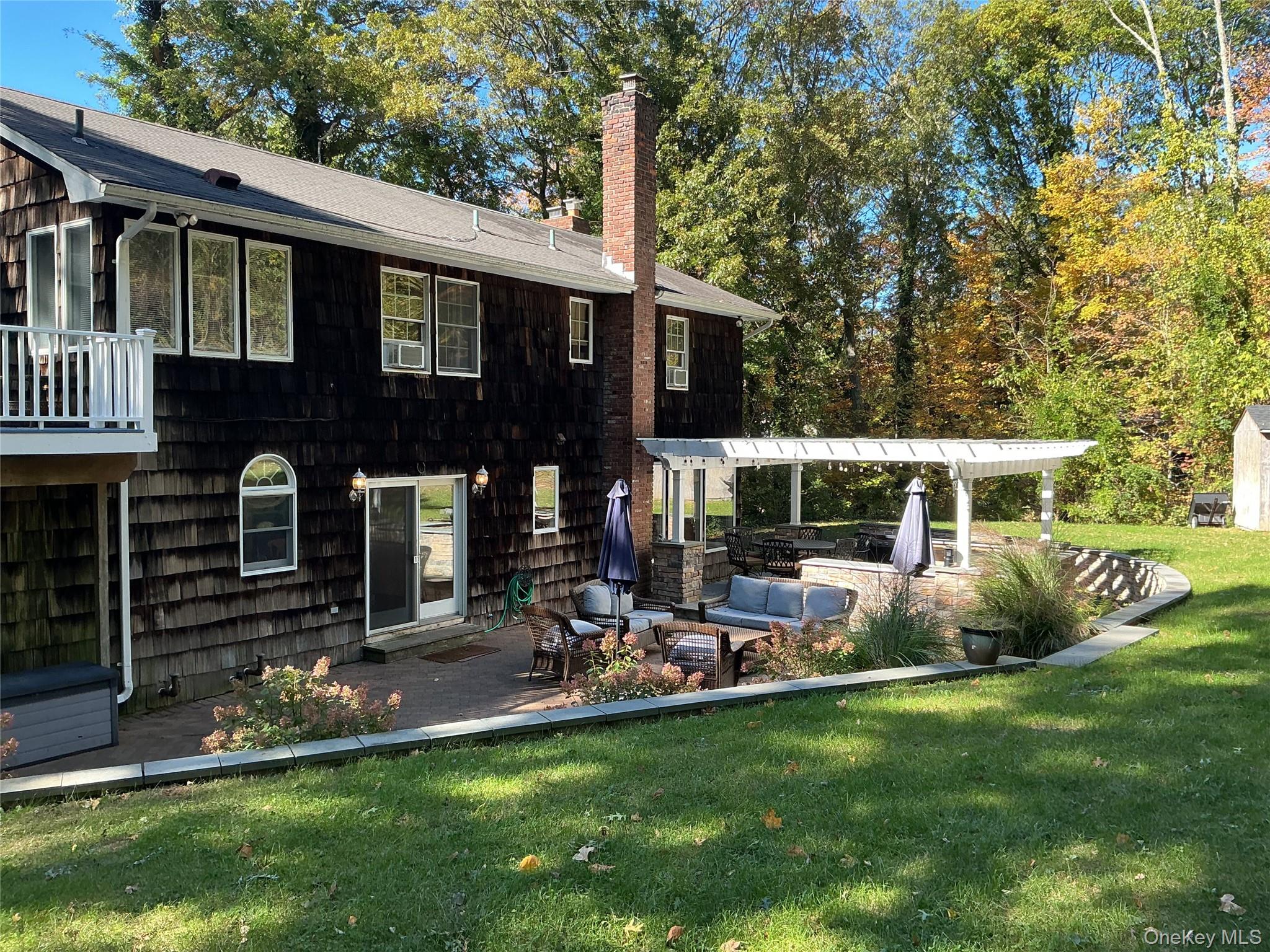 Don't miss this opportunity to enjoy your own slice of suburban serenity. This 4 bedroom, 2. 5 bath colonial sits on 1. 36 acres in a quiet cul-de-sac and backs a nature preserve. Living room/great room boasts exquisite coffered ceilings, wood burning fireplace and oversized windows allowing for an abundance of natural light, creating the most relaxed setting. Large formal dining room, 1/2 bath, mudroom off the garage leading to the beautiful eat-in-kitchen round out this first floor living space. Primary bedroom suite with custom wainscoting, sliders to private balcony, walk-in closet and luxurious bath including double sink vanity, soaking tub and separate shower. There are 3 additional bedrooms with large closets, one of which contains a walk-in. Additional full bath, laundry room and secluded office space complete the 2nd floor. All 3 bathrooms uniquely custom designed. Pull down stairs for easy access to the attic space. Garage allows for the ease of parking 2 cars plus an abundance of storage. The full basement is half finished with an egress window providing both an additional recreation space as well as an area for storage, workshop or home gym. Step through the French doors off the kitchen to the perfect place for outdoor entertaining; paver patio, outdoor kitchen, pergola all creating the ideal setting. The gazebo gives you the ultimate place to take pictures and make memories plus there is plenty of room to add a pool. Located within the Kings Park School District this home also gives you convenient access to the highway, LIRR, both the town of Kings Park as well as historic Northport Village, Sunken Meadow State Park and shopping. Don't wait to see it!