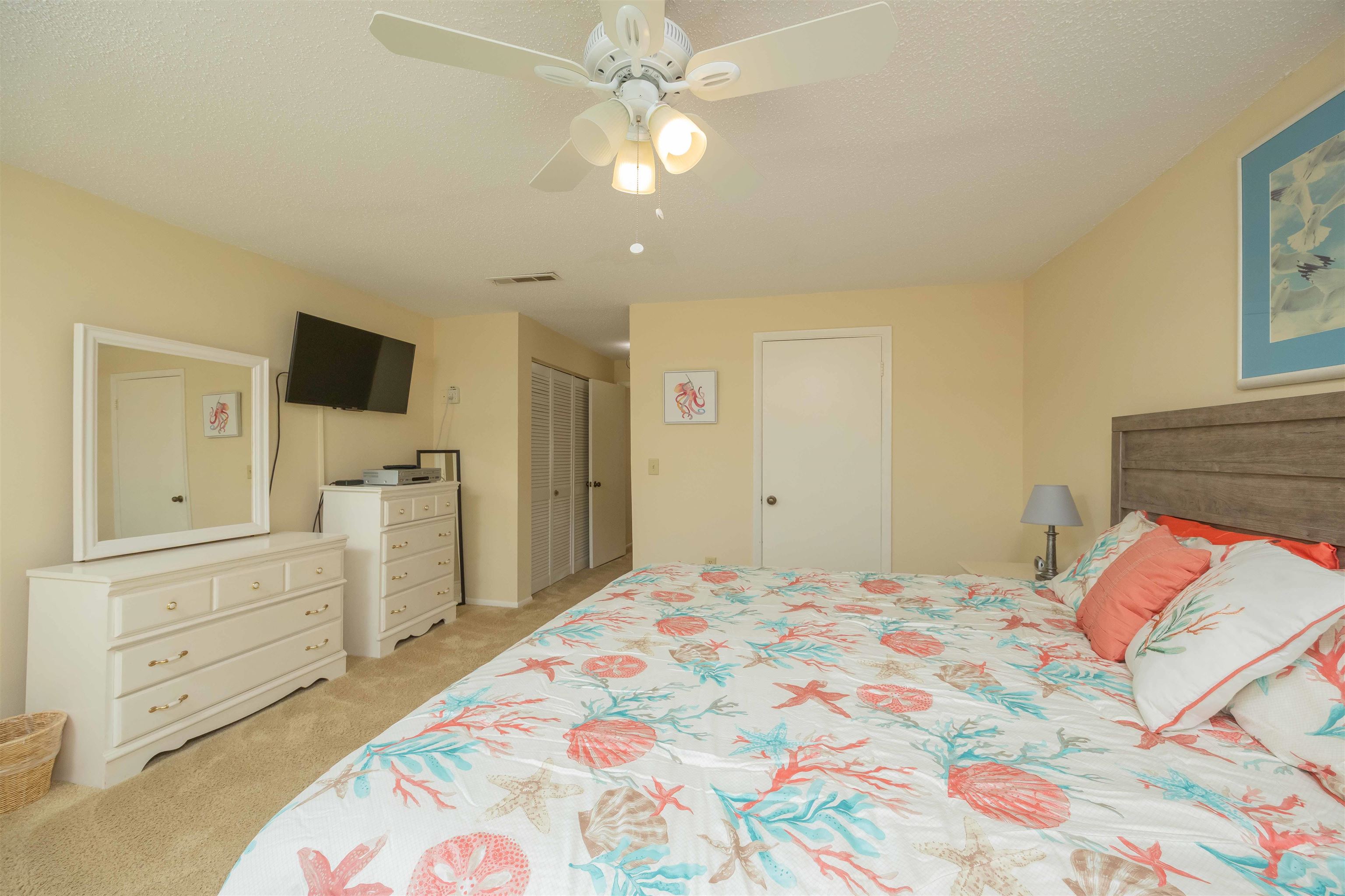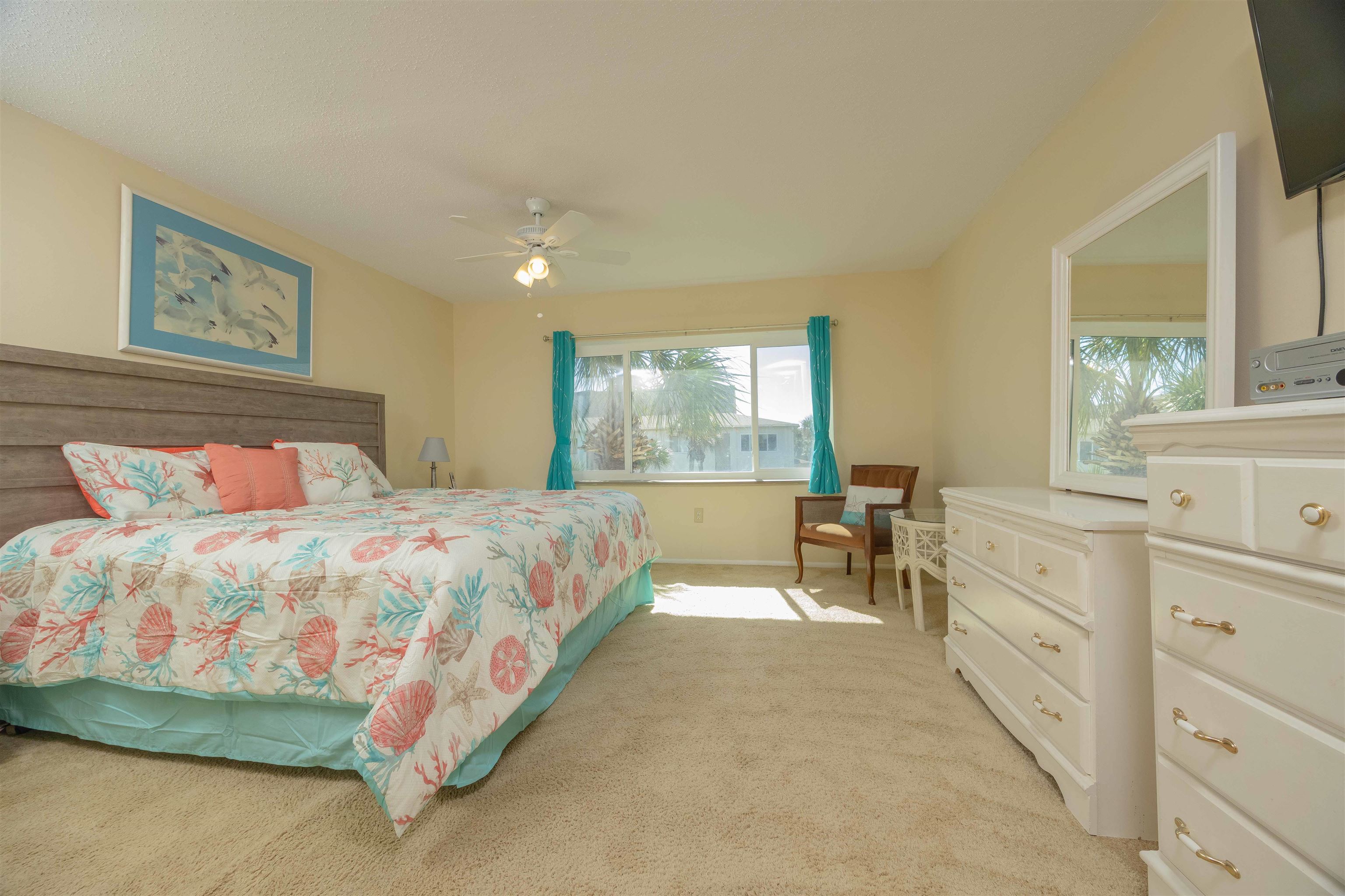 2BR AT FOUR WINDS CONDOS AT CRESCENT BEACH! Fully furnished, includes all appliances, TV's & furnishings. Luxury Vinyl Plank on entire 1st floor. Kitchen with white cabinets & white appliances leads into brightly painted living room. 10'x7' balcony with large storage closet (perfect for beach supplies) that overlooks pool & some ocean view. Convenient 1/2 bath is located downstairs. Open staircase with cleverly placed closet beneath for extra storage. 2nd floor has 2 good sized bedrooms. Owner BR has regular closet, king size bed, plus huge walk in closet (perfect place for a 2nd full bathroom) & some ocean view. 2nd bedroom includes a queen size bed that backs to a queen size Murphy bed. Four Winds sits in the middle of Crescent Beach far away from the public beach ramps. 2 pools, 2 dune walkovers, tennis, pickleball, shuffleboard. NO PET RESTRICTIONS! Bring your boat & park in allotted area. Intracoastal boat ramp at Devil's Elbow, only 1. 5 miles north of Four Winds. Less than 20 minutes to shopping centers, restaurants, the Amphitheater and historic downtown St. Augustine.