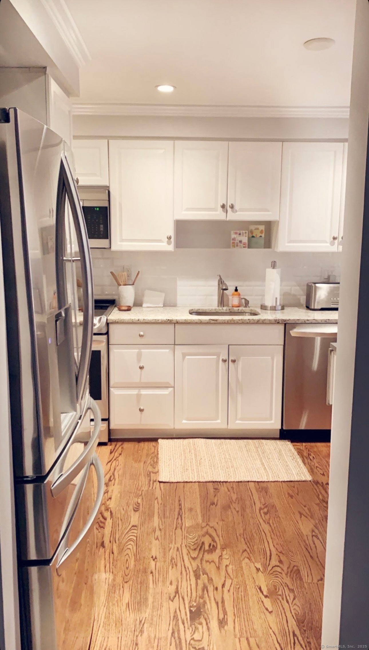 Beautifully appointed townhouse in convenient Springdale location. Walk to park, library and more. Living room with hardwood flooring sliders to private patio. Dining area with hardwood, newer kitchen, lower level family room and laundry room. Primary bedroom with double closets and additional secondary bedroom. 2 reserved parking spaces. A short walk to the Metro North train. Must see.
