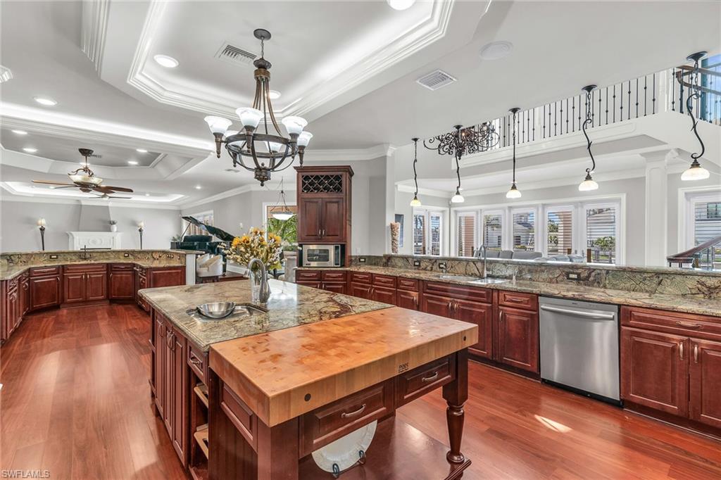 YACHT FRIENDLY Waterfront Marco Island Estates Roberts Bay SOUTHERN EXPOSURE 125’ of Waterfront DIRECT GULF ACCESS . 80’ BELLINGHAM floating dock, with Ramp. Custom-built home nestled on a private cul-de-sac in the prestigious Estates section, one of only 8 homes. Quick deep-water access to the Gulf via Caxambas Pass, this property is a boater’s dream. Positioned on . 43 acres, the residence offers exceptional outdoor living, expansive water views, resort-style amenities. APropane-heated Saltwater Pool & Spa make this the ultimate retreat for yachting enthusiasts. 5, 895 sq. ft. under air, 4 Bedrooms lower level , 2 bonus rooms upper level, 3 Full + 2 Half Baths. EXPANSIVE LOWER POOL DECK (2, 850+ sq. ft. ) PLUS EXPANSIVE UPPER DECK w/ROBERTS BAY VIEWS. Library with custom wood cabinetry, indoor dual gas fireplace, chef’s kitchen with Viking Gas Stove, Sub-Zero, and Bosch appliances, plus 2 wet bars. Fully equipped Viking appliances OUTDOOR KITCHEN. Imported mahogany doors, imported 3/4 " Jatoba hardwood floors. IMPACT GLASS throughout, 5-ZONE A/C Whole-house water filtration. Central vacuum, Central Alarm w/cameras, SONOS sound system, epoxy-coated 3-car garage. Lush, mature native landscaping , fenced side yards for privacy. Located about 1 nautical mile to Caxambas Park Fuel Dock and 1. 25 miles to Winterberry Beach Access. This rare offering delivers the perfect blend of tranquility with panoramic wide-water views, premier boating infrastructure, and an unmatched location in the heart of Marco Island.