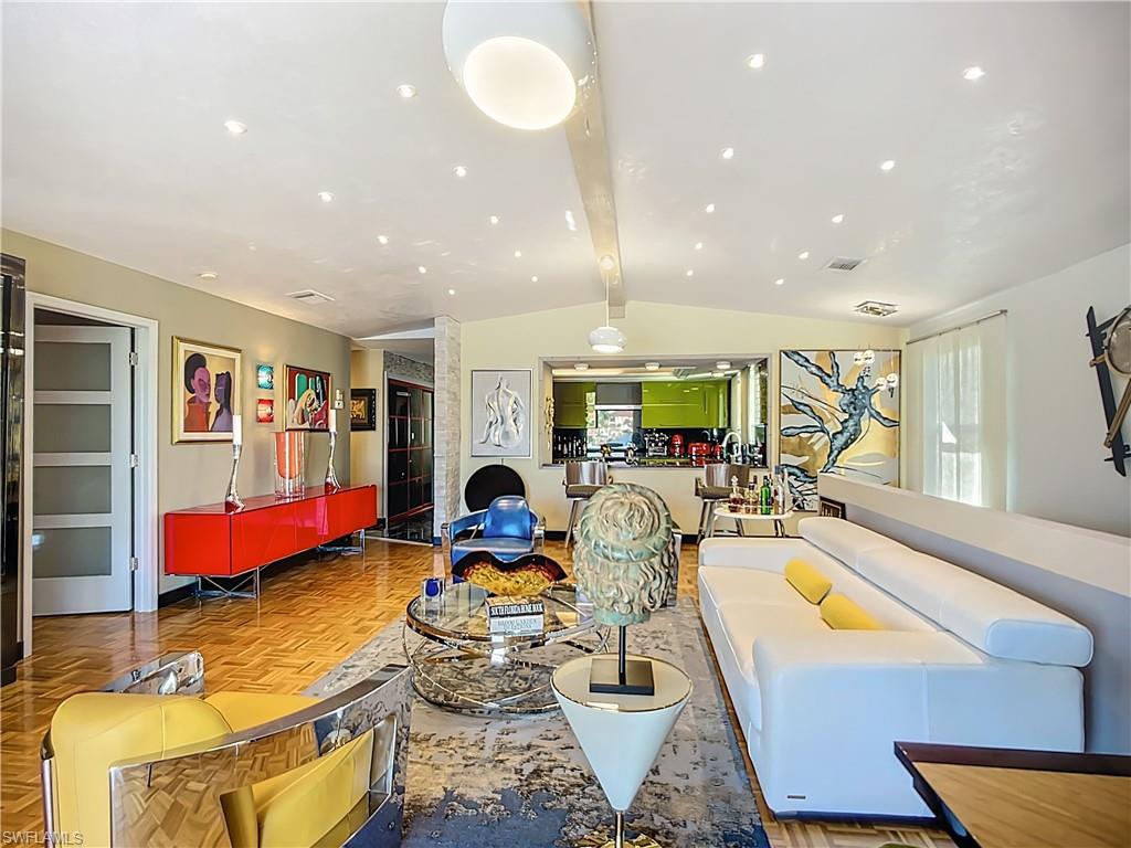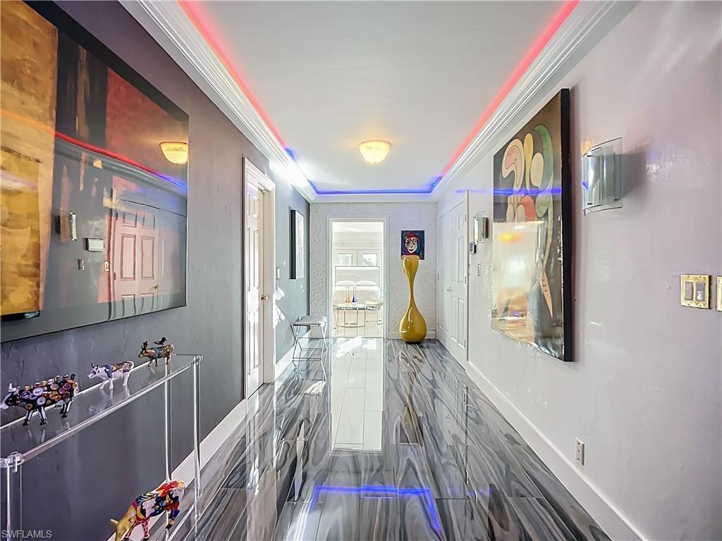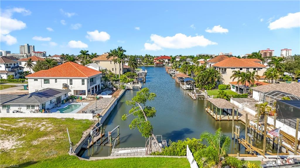 Take advantage of trully unique opportunity to purchase this two story artistically furnished home that perfectly blends modern sophistication with timeless design in the heart of Naples Park . Located on quiet Vanderbilt drive within walking distance to the beach and the dining at Ritz Carlton, La playa and Turtle club , this property has long water view of canal leading to Naples Bay. Elegance, comfort, and convenience: Sparkling chandeliers, intricate tile work, and expansive marble slabs, complemented by warm European oak flooring, create a radiant and refined interior. This unique home offers separate guest suite with full size kitchen/living sleeping area that can be also mother in law dwelling, as well as top 3 bedroom 2. 5 bath eclectic residence that is connected with generously appointed staircase that is utilized as art exhibit space ! A private pool compliments beautiful outdoor space — a covered pool deck / lanai and an upper-level balcony — offers ideal unique space for enjoying iconic Naples sunrises on the pool area and sunsets from the upper level living room. The two kitchens feature top of the line appliances, custom made countertops, artistic accents, and a new marble backsplash . Thoughtful floor plan design allows for all rooms to have perfect privacy and views. Master bedrooms showcase sweeping views of canal leading to NaplesBay, where you can watch boats come and go throughout the day , adding movement, beauty, and a true sense of water view living. Step outside to your private retreat, complete with a pool and beautiful garden . Recent updates include a sleek glass railing around the front deck, and a striking imported Italian porcelain accent floors . Review the virtual tour link for a video of this home, it is truly stunning.