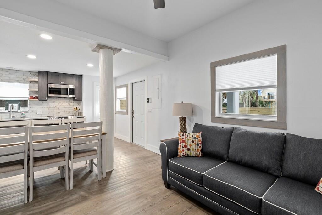 Discover the ultimate oceanside sanctuary- your dream beachside retreat awaits! Nestled just steps from the pristine sands of the Atlantic Ocean, this stunning 4-bedroom, 3-bathroom beachside haven is more than a home- it's a gateway to endless coastal bliss. Imagine waking up to the soothing symphony of waves, crashing ashore, with an expansive deck to enjoy the Florida sun and salt air after a fun day at the beach or sightseeing downtown St Augustine. Inside, modern elegance meets timeless comfort: enjoy the fully updated kitchen and bathrooms that boast high-end finishes, sleek stainless appliances, granite countertops, and spa-like finishes that make every day feel like a vacation. The magic doesn't stop at the doorstep. Step out your front door and in moments, you're on the sun- kissed shores of Vilano Beach, where miles of powdery sand invite leisurely strolls, surfing sessions, world- class fishing, or simply basking in the golden Florida sunshine and fresh salty air breezes. Convenience is key with a one bedroom/one bath in-law suite on the first floor of the home. The second floor includes three bedrooms, two full bathrooms, a living room, and modern kitchen. Enjoy relaxing on the second floor deck, or the two first floor covered patios for dinner al fresco. There is a fully fenced backyard that offers privacy when needed. Large driveway allows for parking for multiple vehicles. From this home you can easily walk to a nearby grocery store, vibrant restaurants, and shopping, or hop on your bike for a scenic ride over the Vilano Bridge to the historic charm of St Augustine, with cobblestone streets, an ancient fort, shopping and restaurants galore, and cultural treasures just minutes away. This isn't just a property; it is a proven investment powerhouse. As a well-maintained and expertly managed vacation rental, it boasts years of glowing reviews, consistent positive rental income, and a stellar reputation that keeps guests returning season after season. Whether you're seeking a serene forever home to create lifelong memories, a luxurious personal retreat for weekend escapes, or a savvy vacation rental opportunity, this gem delivers it all. Seize your slice of paradise- where oceanside living meets effortless luxury and endless potential. Schedule your tour today and step into a life of sun, sea, and serenity in the heart of Vilano Beach!