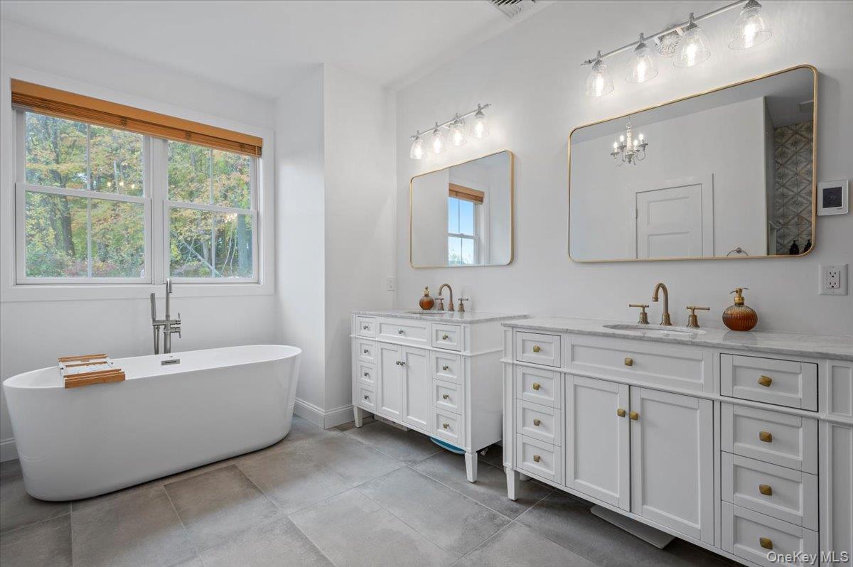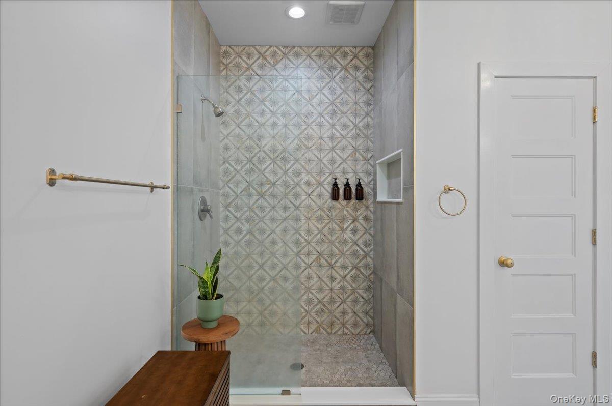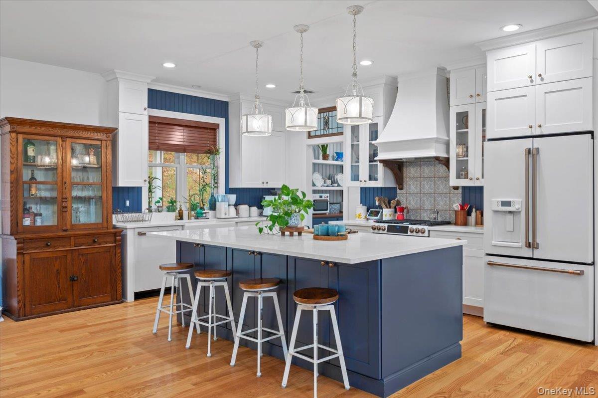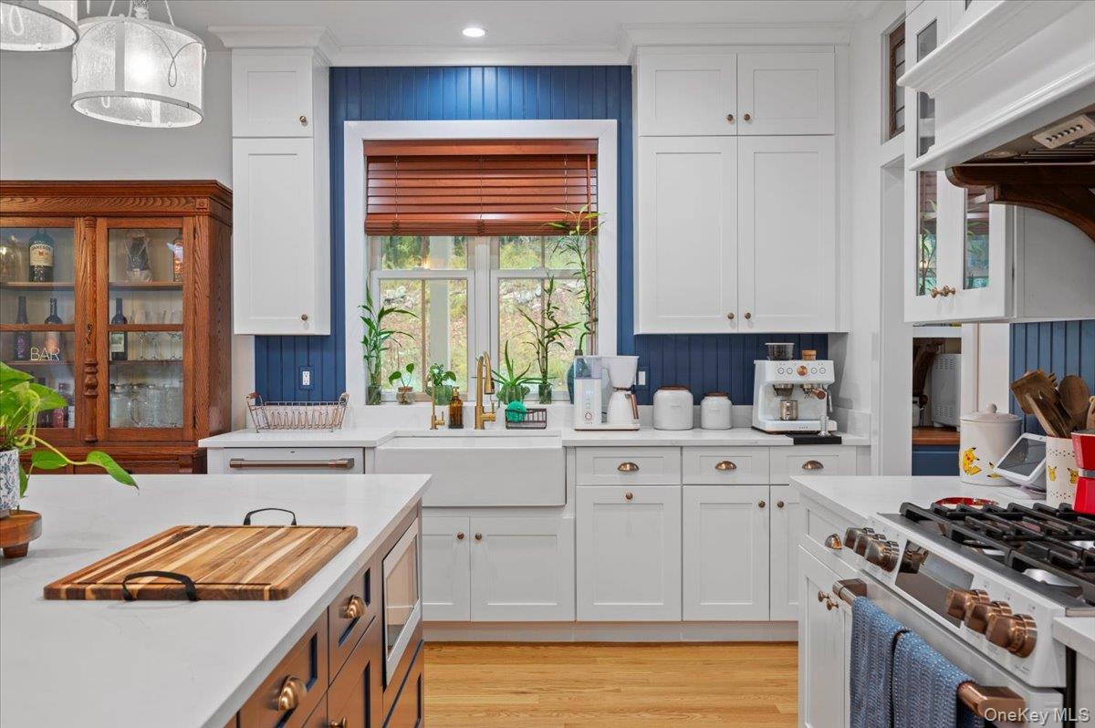 A Timeless Farmhouse Retreat with Modern Elegance. Step into refined country living with this brand-new, bespoke farmhouse ranch, where Old World charm meets contemporary craftsmanship. Chic and gracefully set on over five private, serene acres, this four-bedroom, three-and-a-half-bath home invites you to savor a lifestyle of quiet sophistication and natural beauty. A dramatic 20-foot entryway ceiling welcomes you with an antique stained-glass window, setting the tone for a home where curated history and modern comfort intertwine. Wide-plank hardwood floors, soaring 9-foot ceilings, and sun-drenched Anderson windows carry you through a light-filled open floor plan, designed for effortless entertaining and everyday elegance. The heart of the home is a chef’s kitchen, beautifully appointed with quartz countertops, Cafe series appliances, a farmhouse sink, and a custom range hood. An antique hutch and a walk-in pantry with custom cabinetry offer both charm and function, while French doors in the dining area leads to a covered patio—ideal for al fresco gatherings. The living room is anchored by a gas fireplace with a hand-hewn antique wood mantel and exposed beam, creating a warm, inviting ambiance. A refined powder room, mudroom with garage access, and an oversized laundry suite with built-in storage elevate everyday living. The primary suite is a true sanctuary, featuring a vaulted ceiling, private access to the patio, a custom walk-in closet, and a luxurious spa bath with a freestanding soaking tub, walk-in shower, water closet, and heated floors. Two additional bedrooms and a full bath complete the main level. Upstairs, a spacious media room leads to a fourth bedroom with a walk-in closet and a private en-suite bath—ideal for guests or an au pair suite. Thoughtful details abound: Therma-Tru doors, foam insulation, on-demand hot water, and antique accents throughout. The home also features a three-car attached garage and a wide front porch with Douglas Fir decking, perfect for morning coffee or evening sunsets. Ideally located with convenient access to I-84, Taconic State Parkway, and the Metro-North train, this exceptional residence offers country living with seamless connectivity. Brand new Tesla electric car charger installed. Many home essentials are still covered under the new-build warranty.