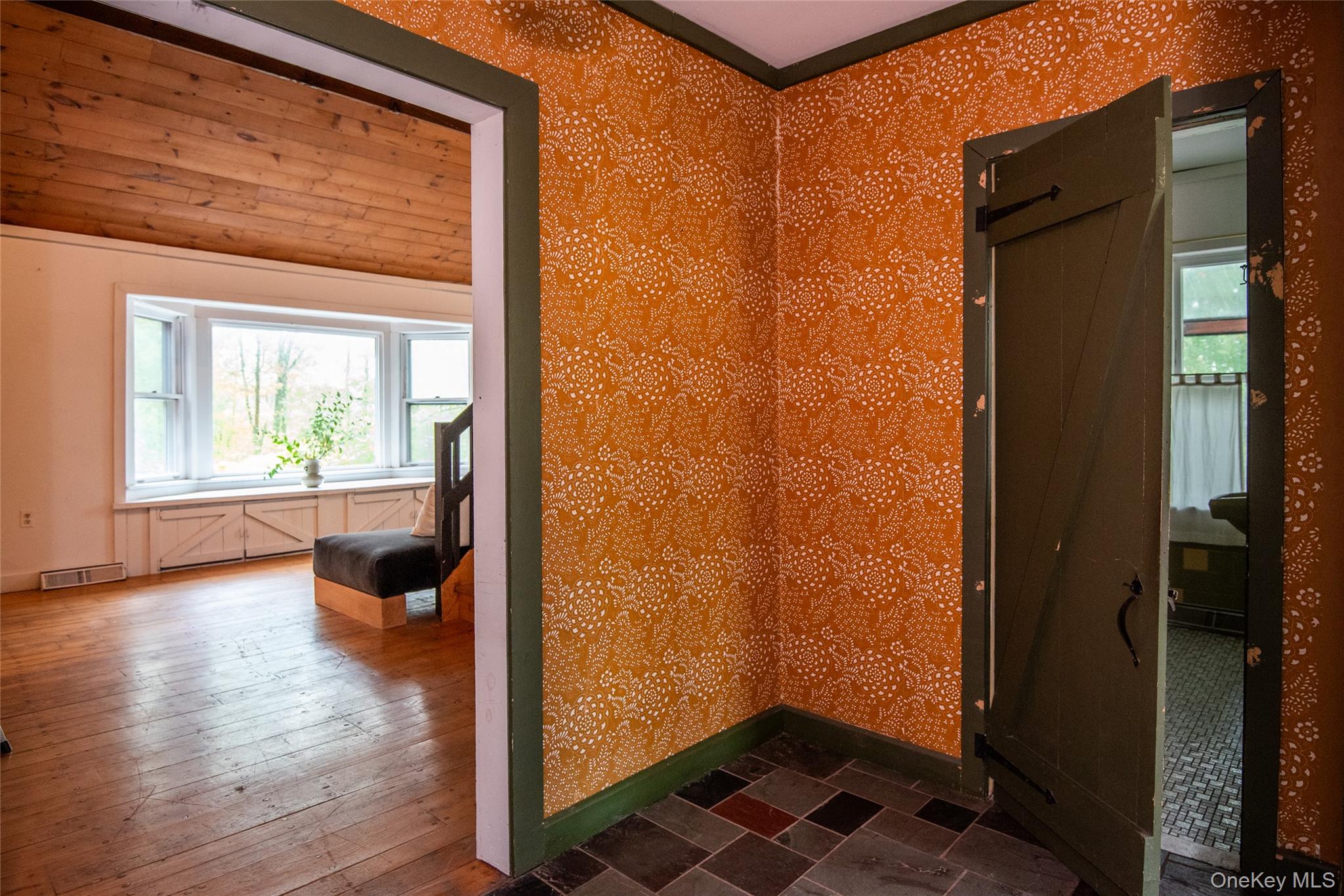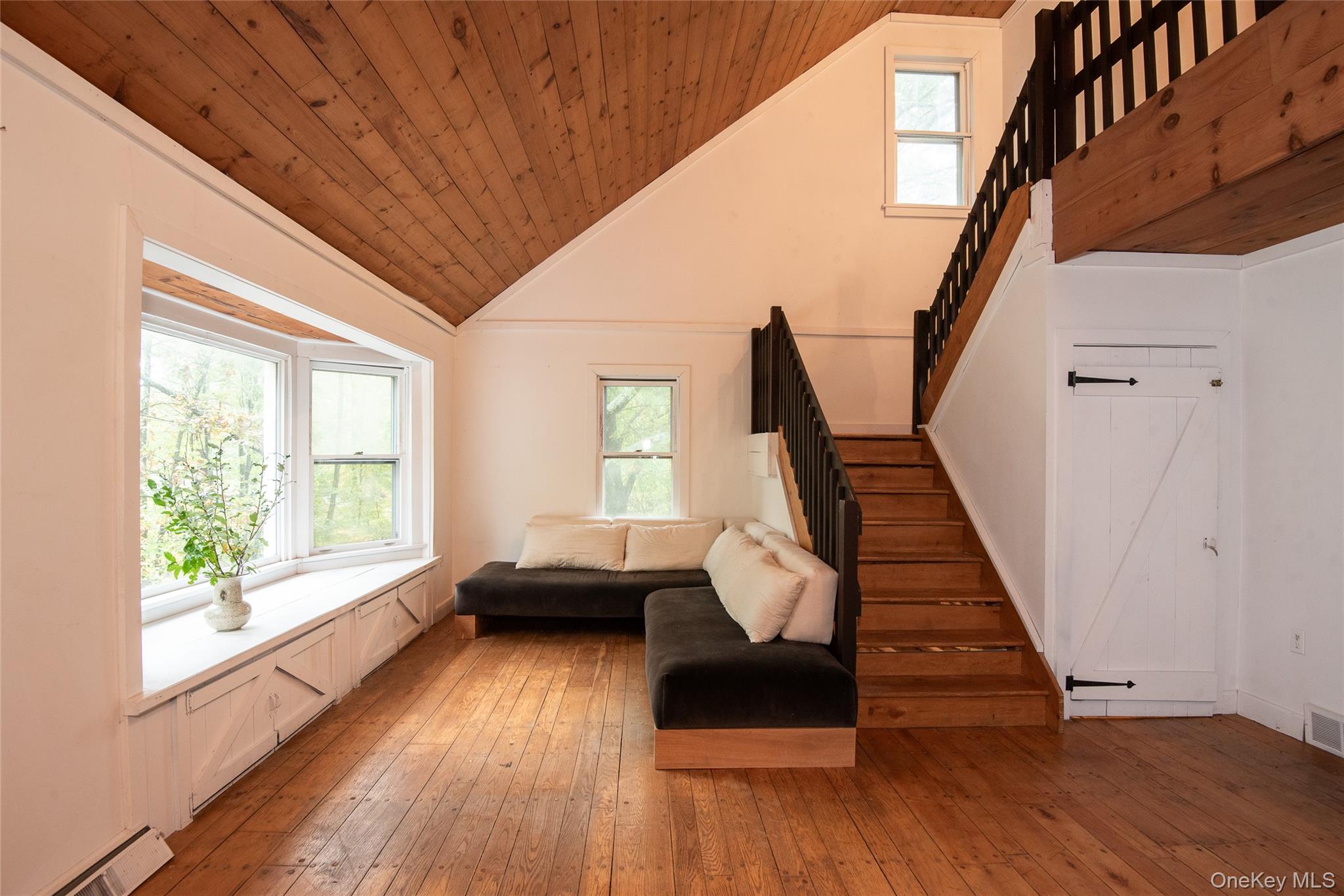 32 Mountain Camp Road, Round Top, NY Catskill Mountain Retreat on 9 Private Acres Set on 9 private acres in desirable Round Top, this 2, 546 sq. ft. is the perfect place to get away or entertain. The dramatic great room features 18-foot ceilings, wide plank hardwood floors, and a stunning triple-sided fireplace that connects the foyer, great room, and kitchen. A 5-foot stone hearth with a built-in bread oven adds a touch of craftsmanship and warmth. The spacious open kitchen with island is perfect for entertaining, complemented by a convenient first-floor bedroom and two large upstairs bedrooms with a loft overlooking the great room. Additional highlights include a greenhouse room, beautifully landscaped gardens, a bluestone patio, and monolithic front stairs. With frontage on both Mountain Camp Road and Bald Hills Road, a 1, 500 sq. ft. walk-out basement ready to finish, and peaceful views of the surrounding Catskill landscape, this property offers space, privacy, and timeless appeal.