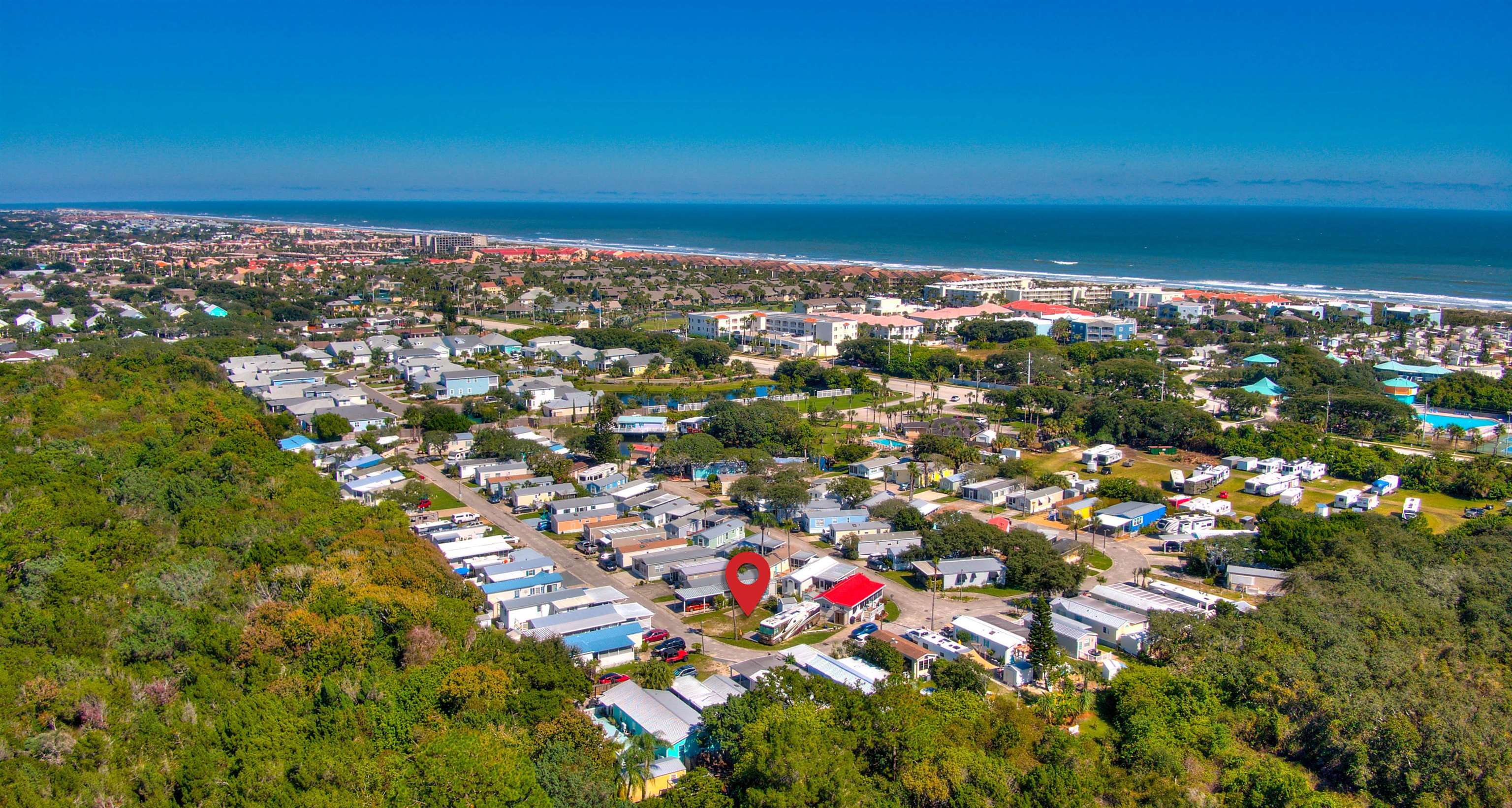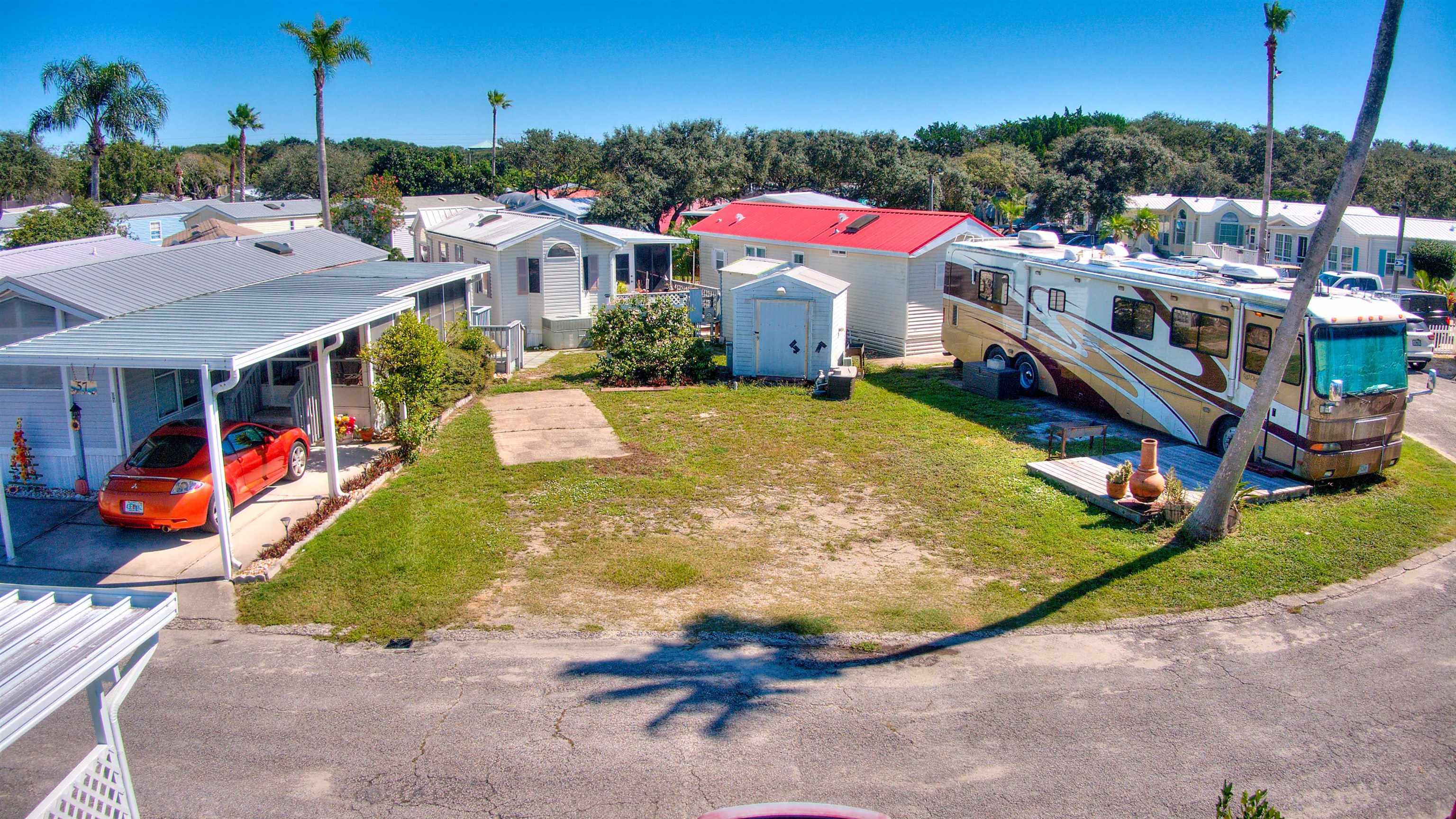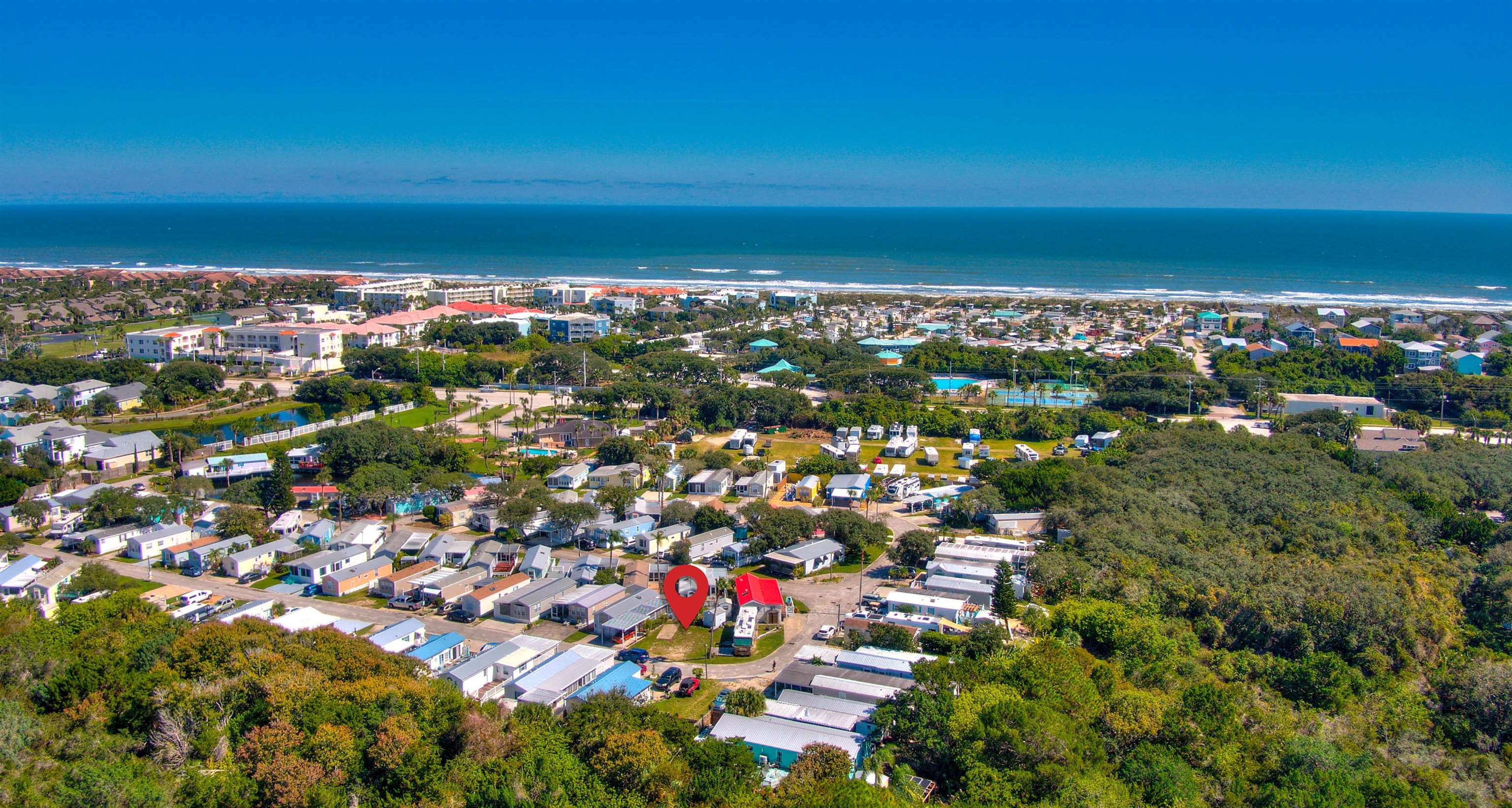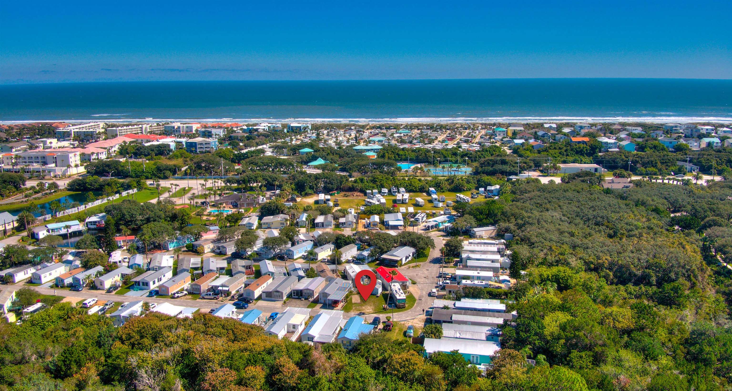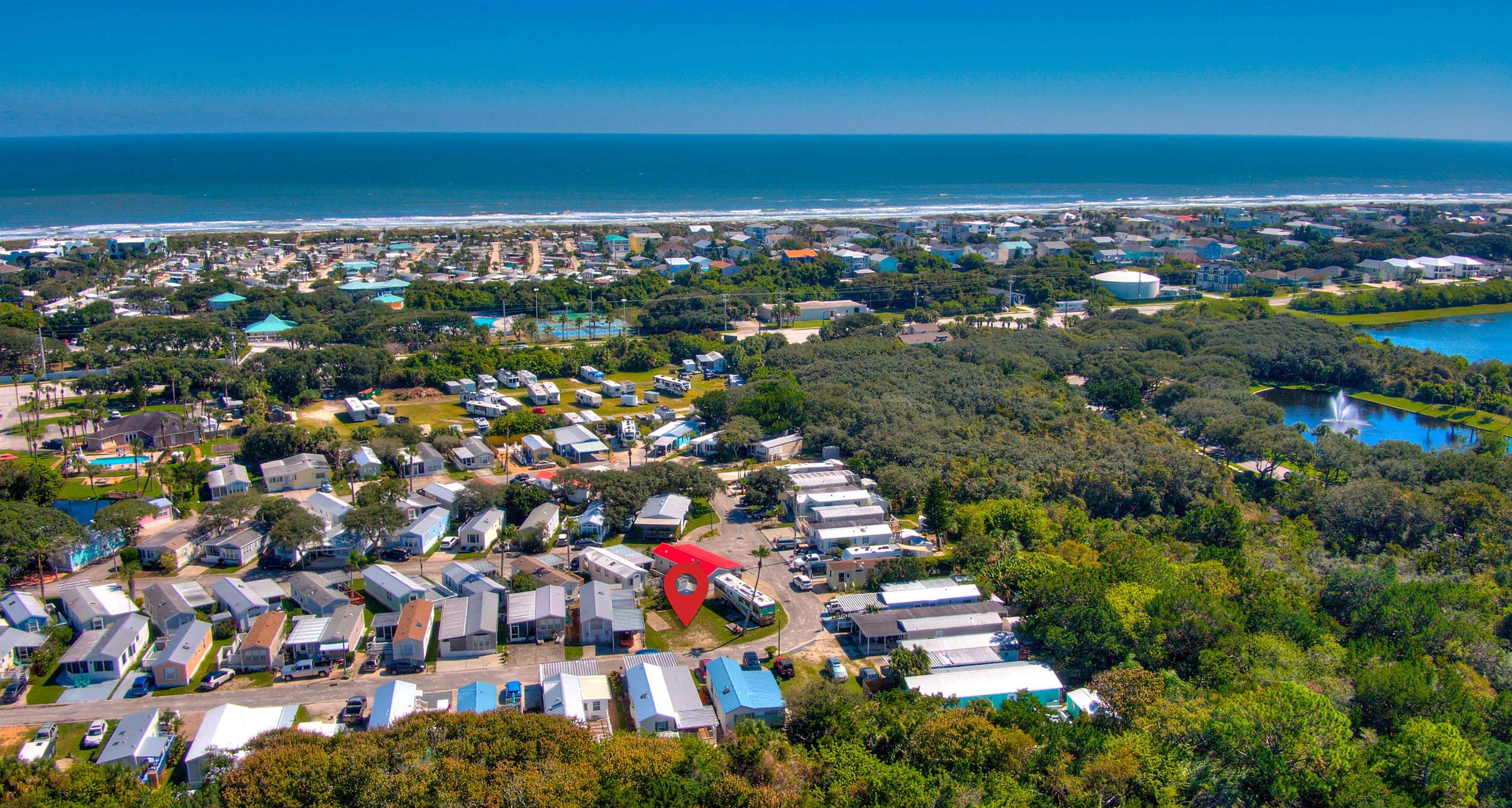 OVERSIZED LOT ON ANASTASIA ISLAND!! Great Corner lot that offers affordable Beach Living. 99 year lease with 70 years remaining. Three minutes to white sand on Butler Beach, 15 minutes to downtown Historic St. Augustine and the Castillo de San Marcos National Monument, close to grocery stores and restaurants. Stroll the beach everyday or relax in the pool. This could be your home away from home or your permanent residence. You will love the quaint atmosphere and surroundings, on site laundry, fishing pond, basketball court, showers, and club house. Beautiful weather year-round and only minutes to the world famous St. Augustine Night of Lights in December. monthly maintenance fee includes lawn maintenance, so you can spend your time relaxing! Pets allowed. Lot lines shown in photos are approximate.