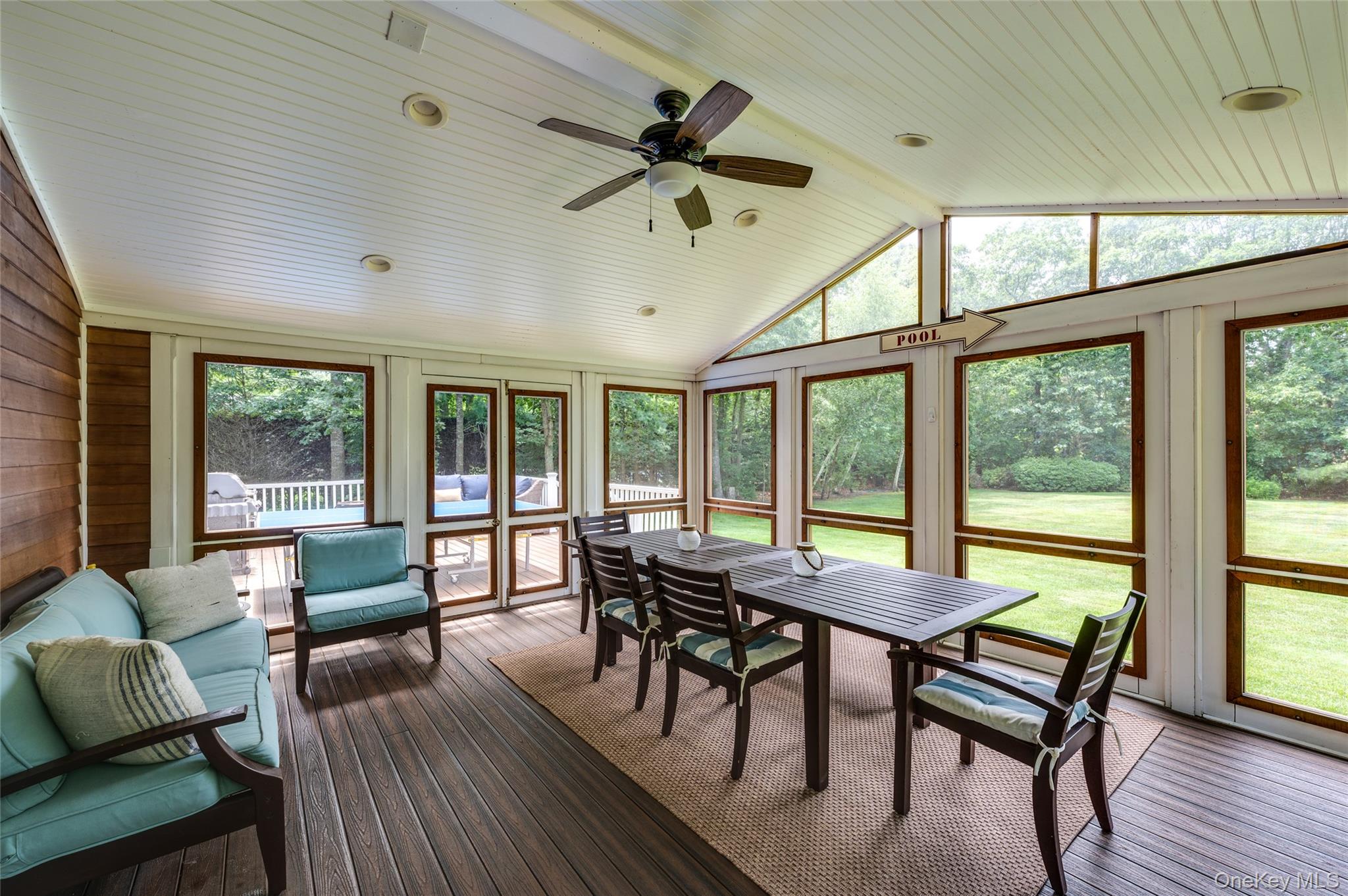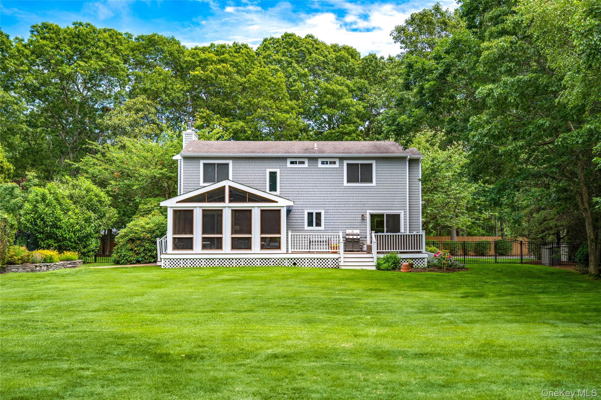 Explore the ultimate in privacy at 9 North Quarter Road, located down a long, hedge-lined driveway in Westhampton. This beachy rental is close to all, clocking in at 3 short miles to Westhampton Beach's Main Street & 4 miles to Rogers Beach. The first-floor features an open living room, formal dining area, updated eat-in kitchen, and powder bathroom. The kitchen is equipped with stainless steel appliances, granite countertops, and a center island. From sliding glass doors, access the back deck with BBQ as well as a spacious screened-in sunroom with dining space for 6. Completing the home is the second level, offering a tranquil primary suite with an ensuite bath, and two guest bedrooms with a shared full bath. Enjoy additional living space in the finished lower level. Outside, the spacious backyard boasts ample lawn space and separate, fenced patio area with a 20x40 pool, outdoor dining & lounge chairs. Available August - LD (6 weeks this year!) $32, 000. Schedule your private tour today! [[Rental Registration #RP220533]].