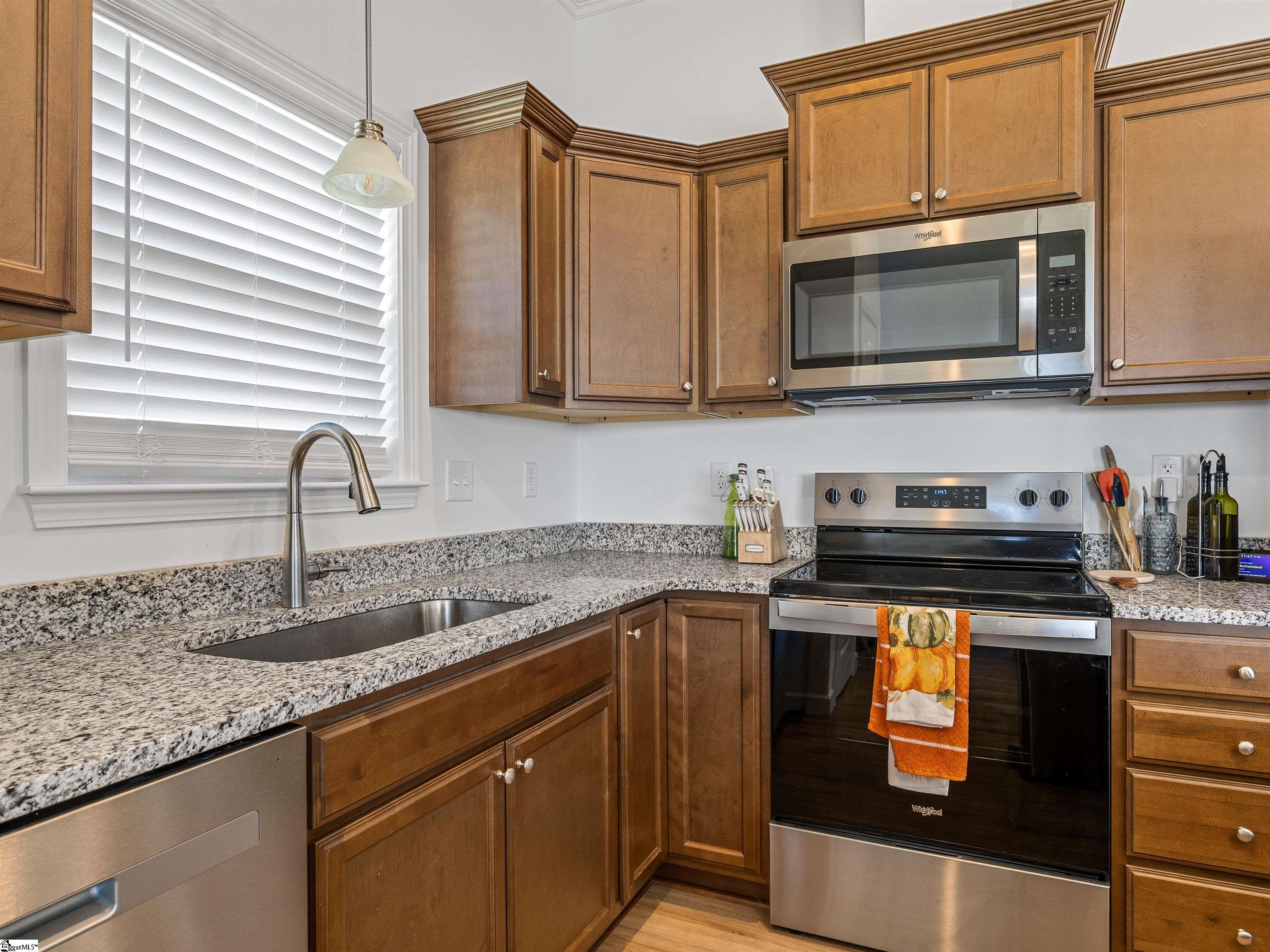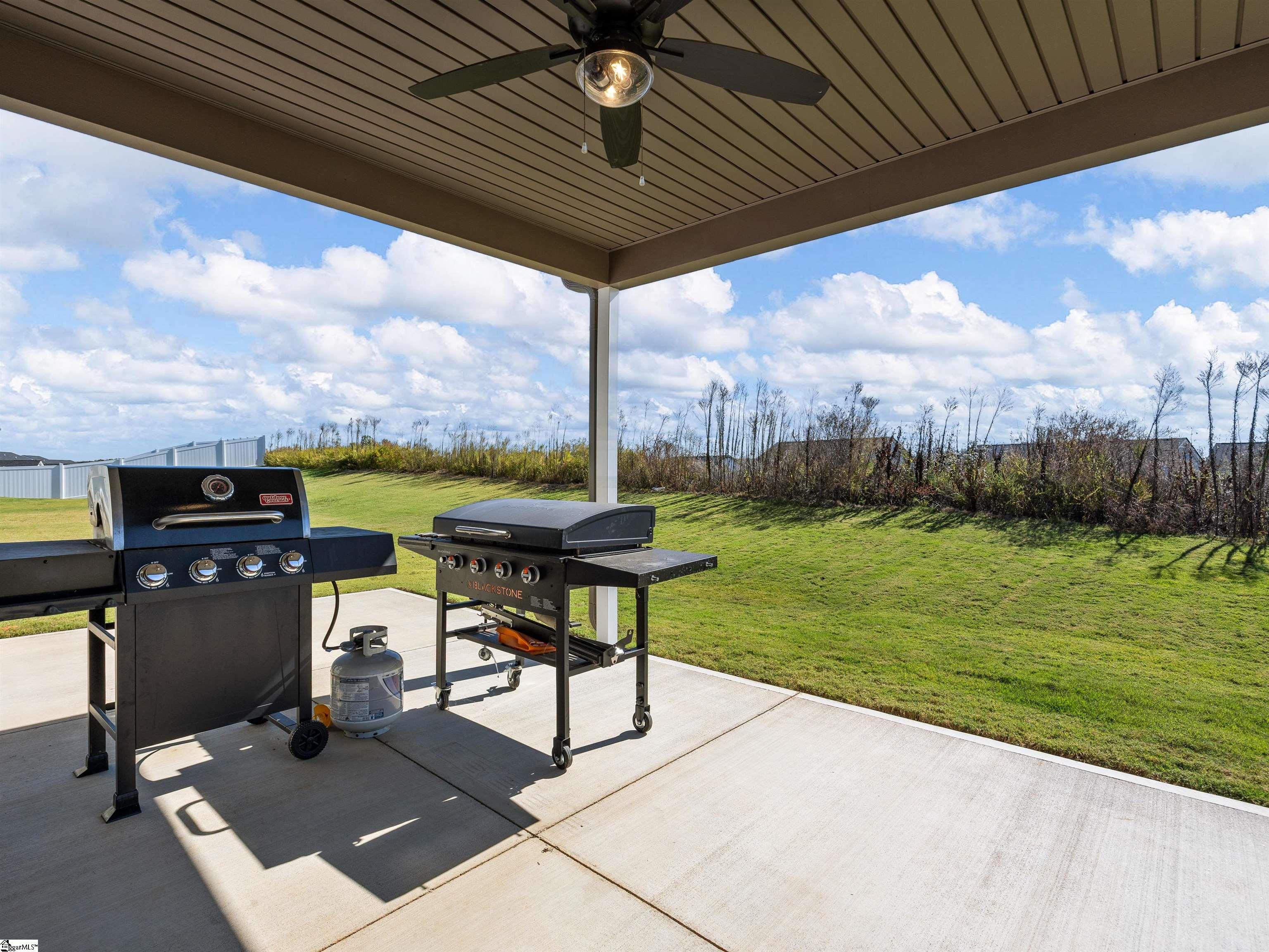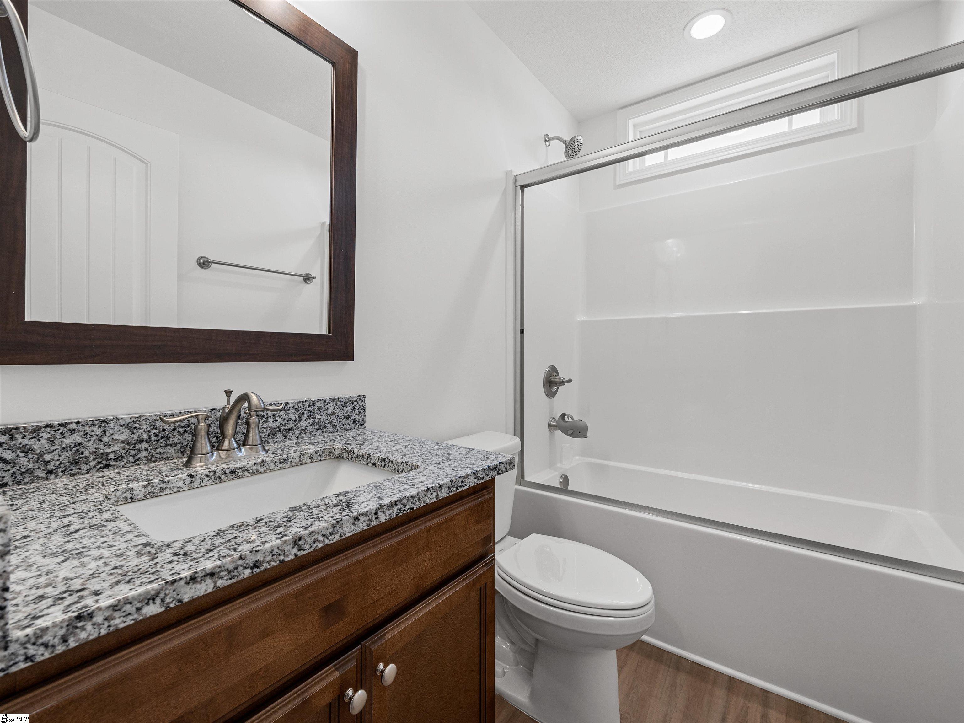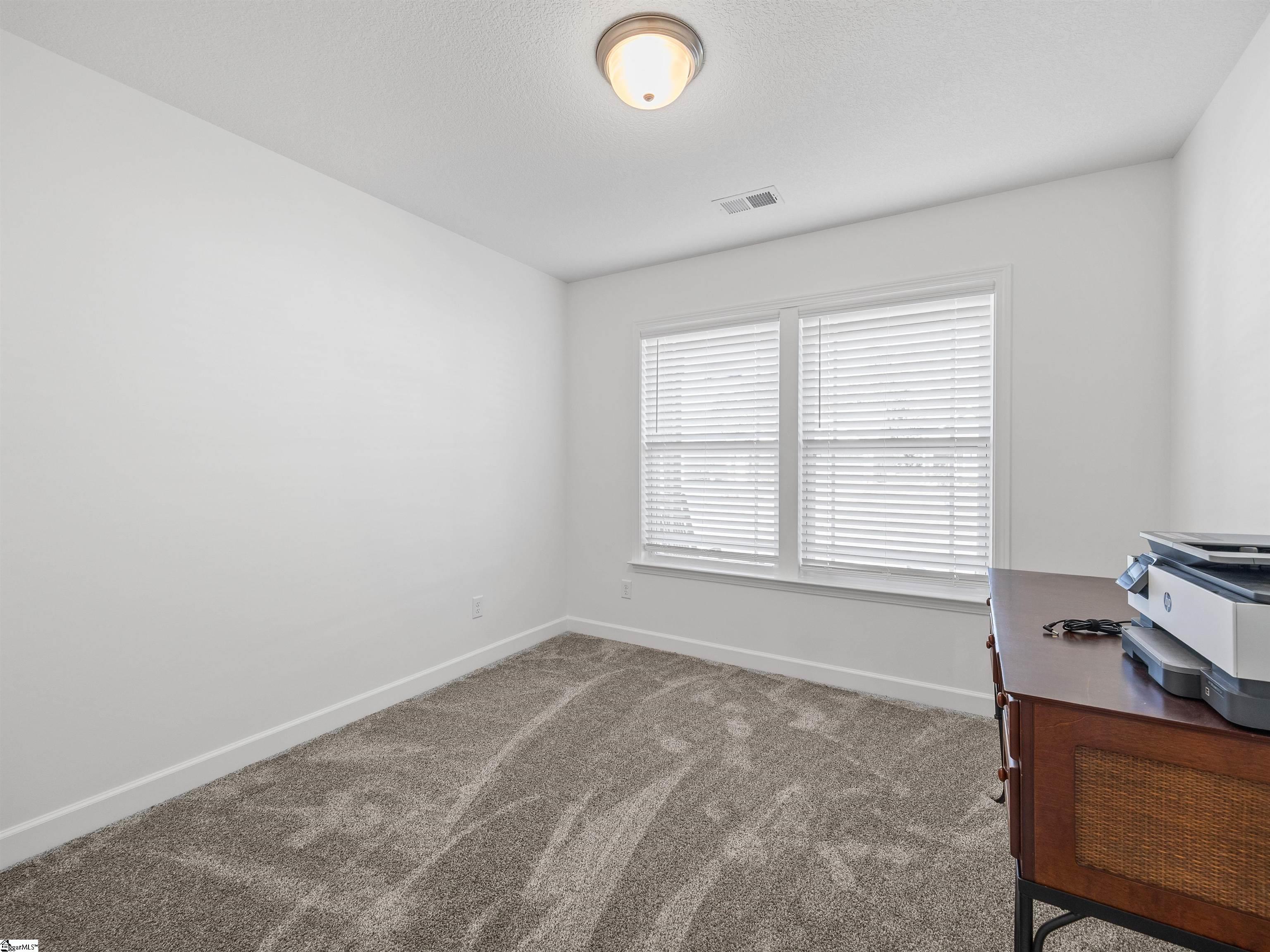 This home is the Bishop plan plus, meaning 3 bedrooms and 2 full baths down and 1 bedroom and 1 full bath up as well as a flex room up. On the main level in addition to the great room is a 9x6 area for office work or smaller sitting area. The floor plan is open with a gas log fireplace perfectly situated in the great room. Off of the dining area is a covered patio as well as an 12x10 uncovered patio. The solid surface counter tops and counter space are part of a well designed kitchen area that overlooks the great room. The location is very convenient to most of your everyday needs. Set up a viewing today.