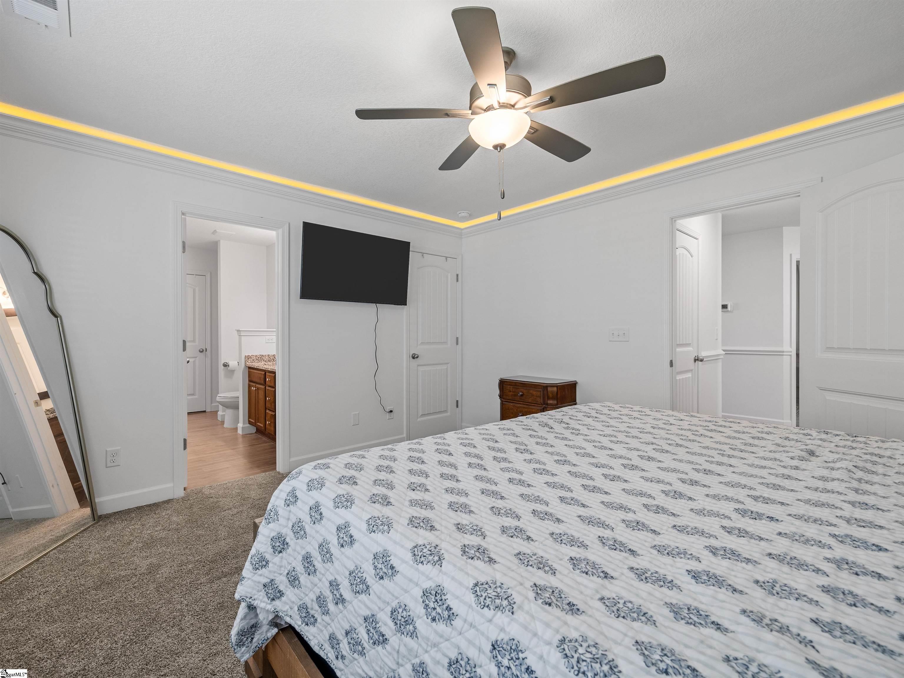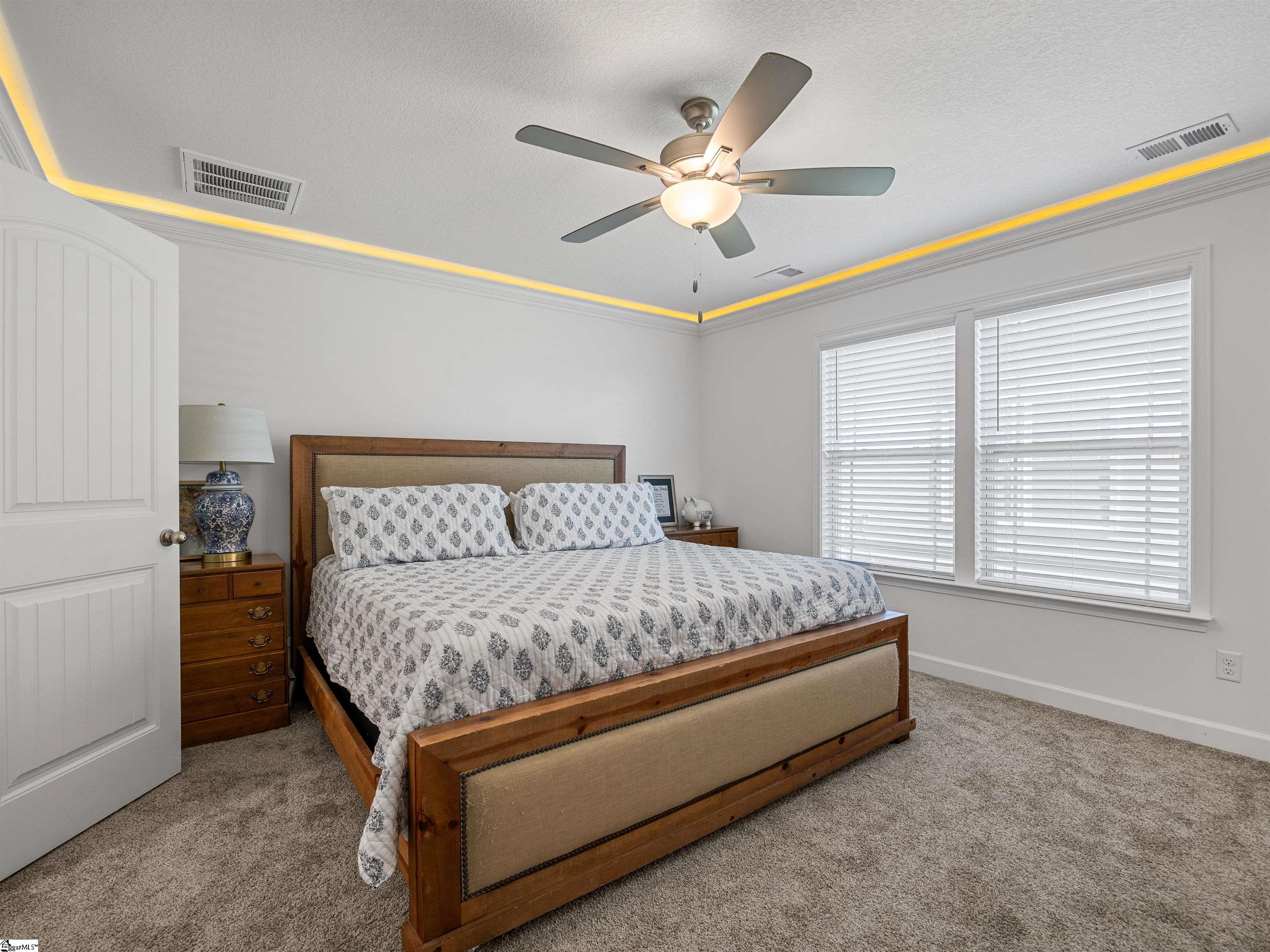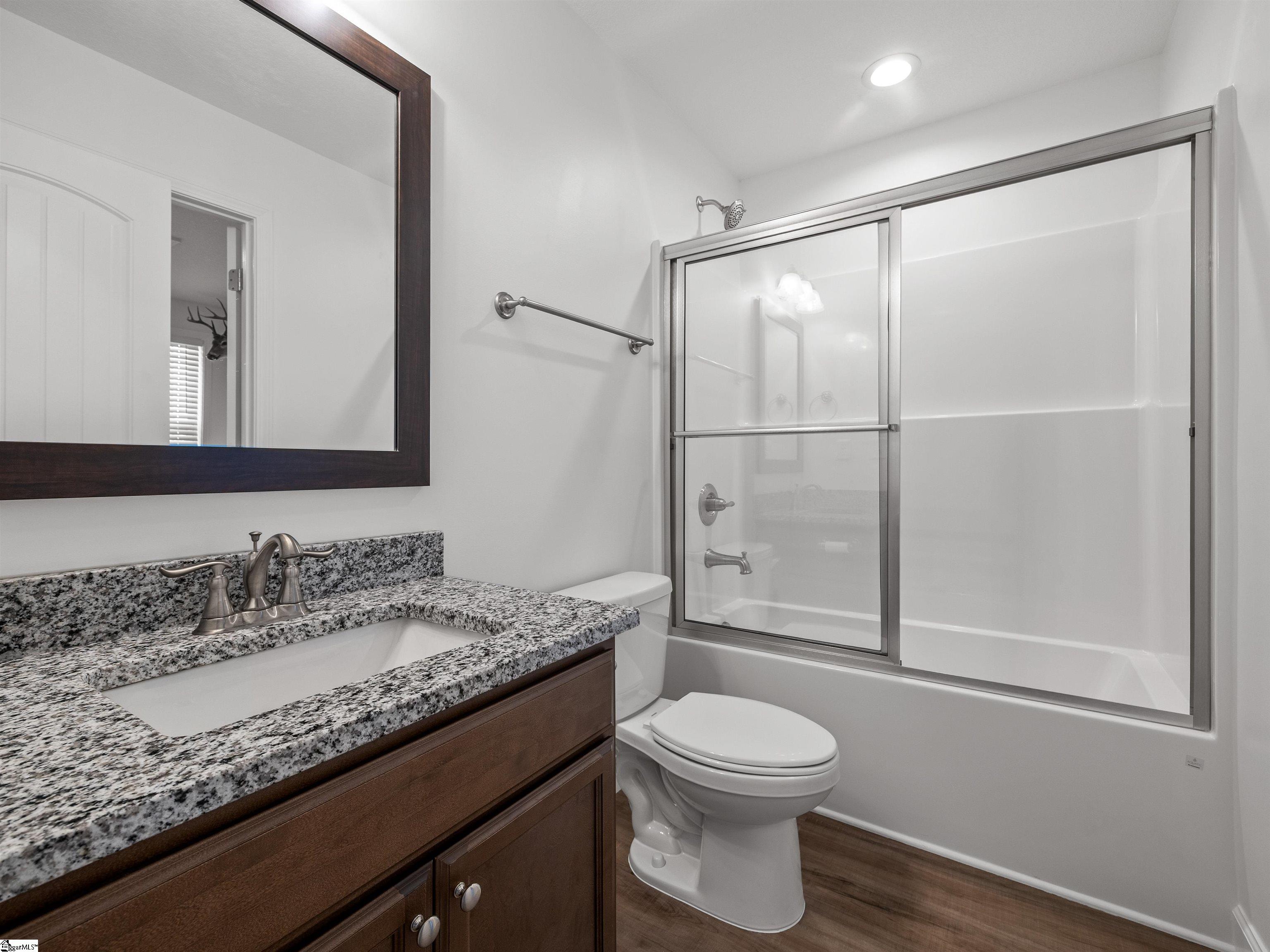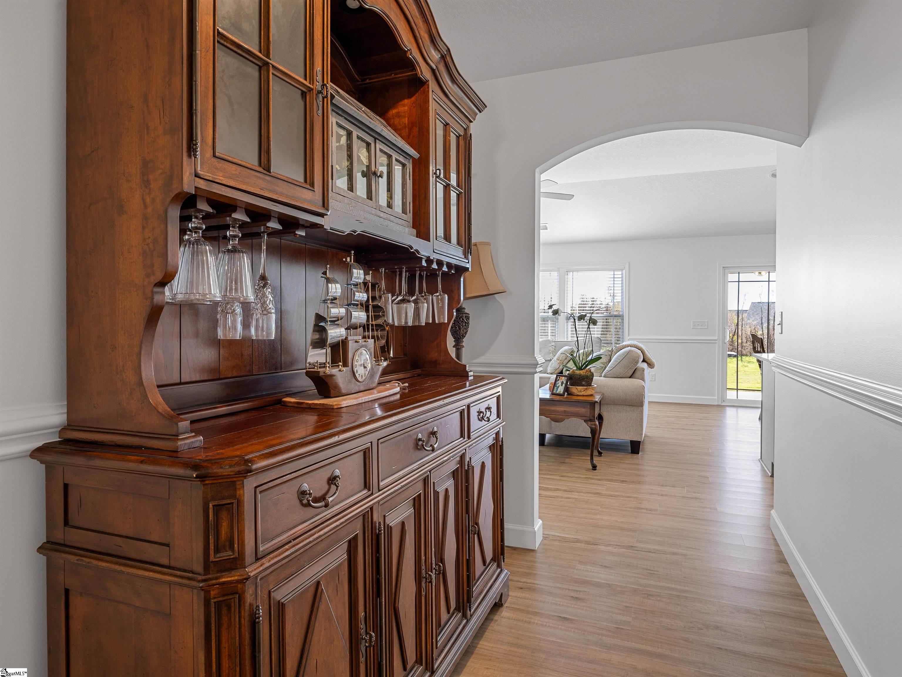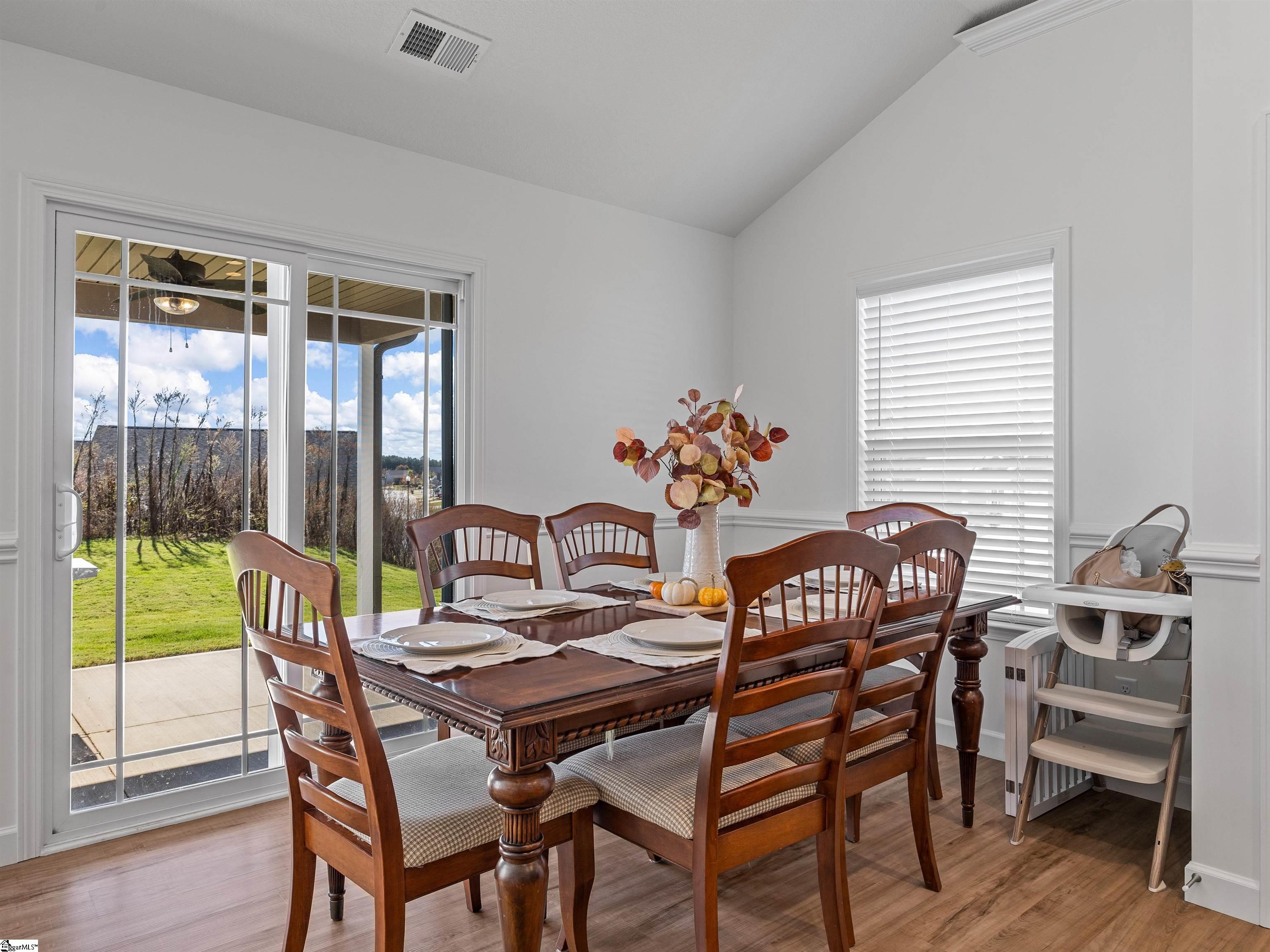 This home is the Bishop plan plus, meaning 3 bedrooms and 2 full baths down and 1 bedroom and 1 full bath up as well as a flex room up. On the main level in addition to the great room is a 9x6 area for office work or smaller sitting area. The floor plan is open with a gas log fireplace perfectly situated in the great room. Off of the dining area is a covered patio as well as an 12x10 uncovered patio. The solid surface counter tops and counter space are part of a well designed kitchen area that overlooks the great room. The location is very convenient to most of your everyday needs. Set up a viewing today.