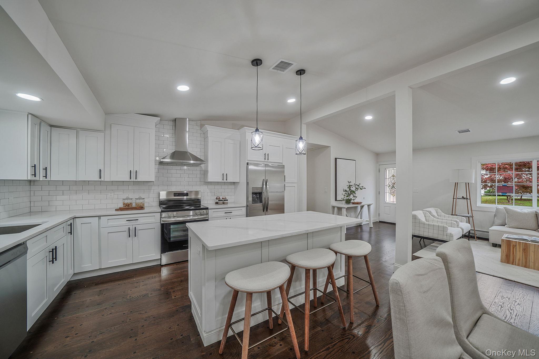 Completely renovated in October 2025, this stunning home blends timeless charm with modern luxury. Step inside to find a brand-new kitchen featuring sleek stainless-steel appliances, quartz countertops, and stylish finishes. The home offers gleaming hardwood floors throughout, a sunken den with a cozy fireplace, and three brand-new bathrooms designed with today’s trends in mind. The full finished basement provides endless possibilities—perfect for recreation, a home office, or extended living space. Set on a ½-acre property with plenty of room for outdoor entertaining, this home delivers comfort, space, and convenience in one of Smithtown’s most desirable neighborhoods. Move right in—everything has been done!