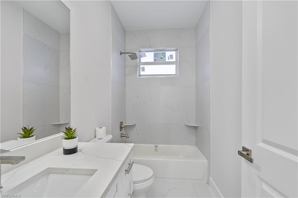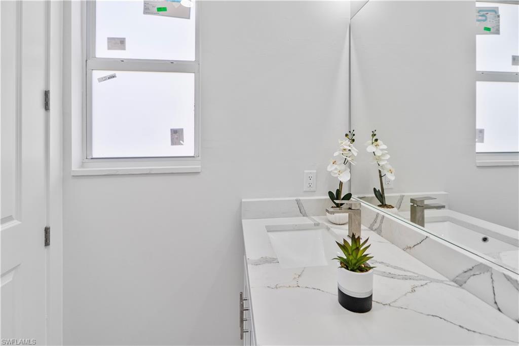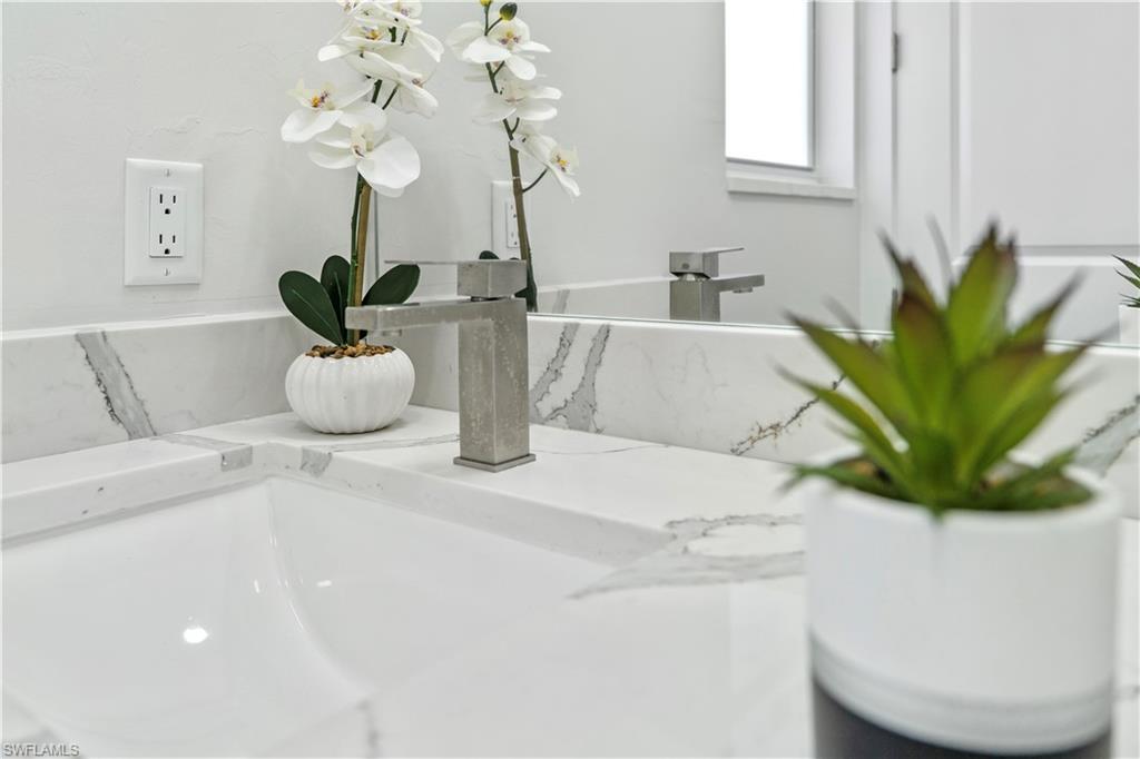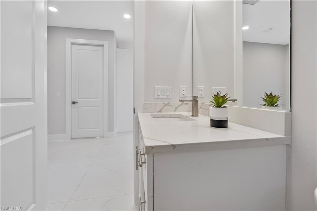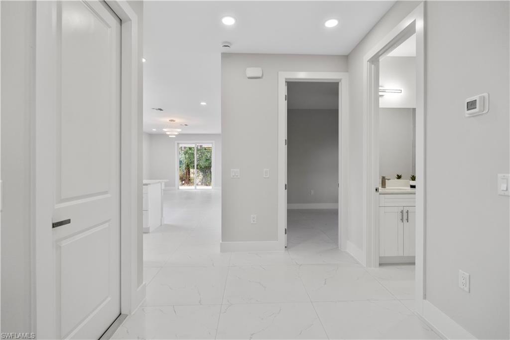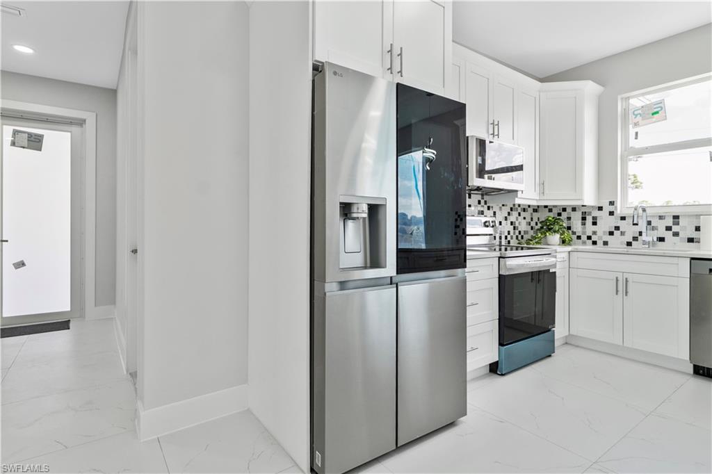 Enjoy elegant porcelain tile flooring throughout, stylish baseboards, and textured walls with crisp white ceilings. The gourmet kitchen offers wood cabinets, quartz countertops, stainless-steel appliances (fridge, range, microwave, dishwasher), and a premium stainless steel undermount sink. Bathrooms are finished with quartz vanities, modern cabinetry, and designer tile—highlighted by a frameless glass shower in the master suite and a tub/shower combo in the guest bath.