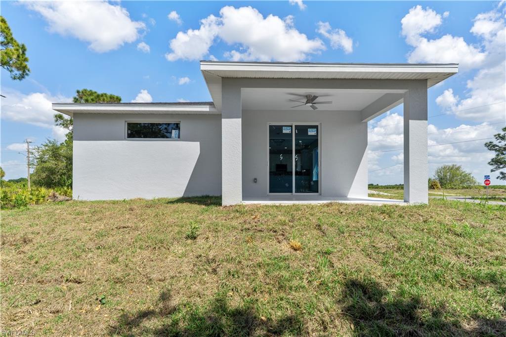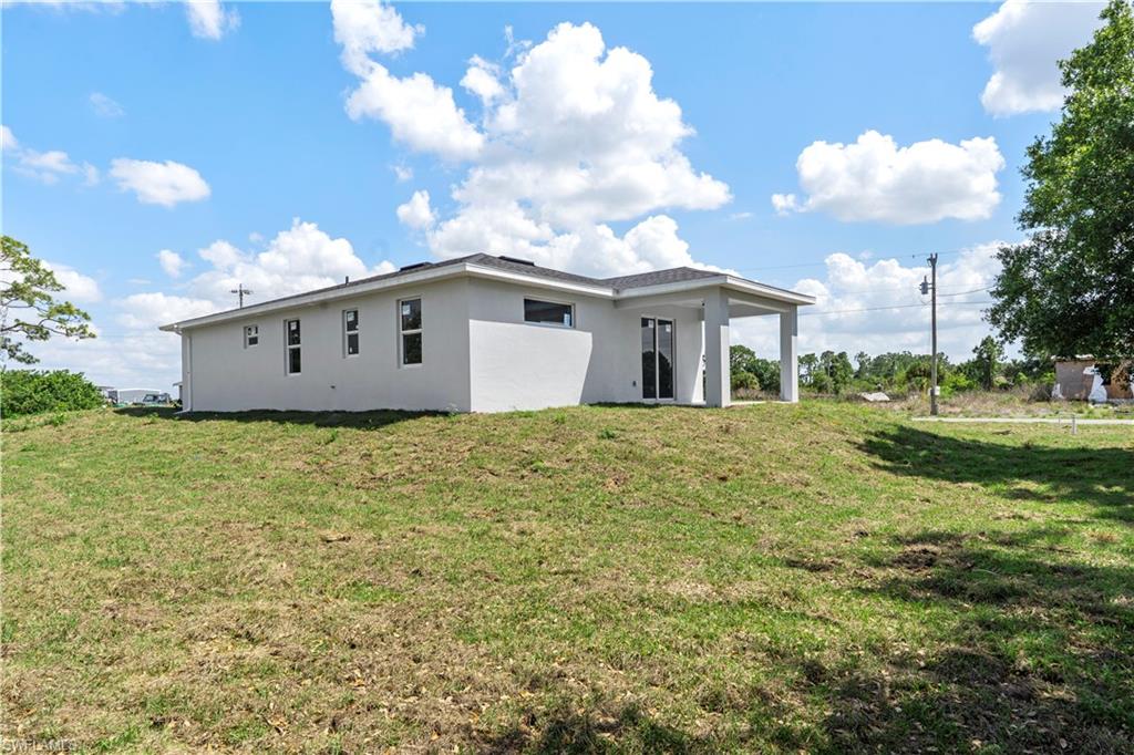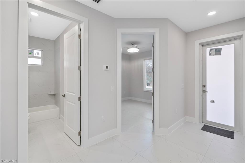 Covered lanai and tiled front entry