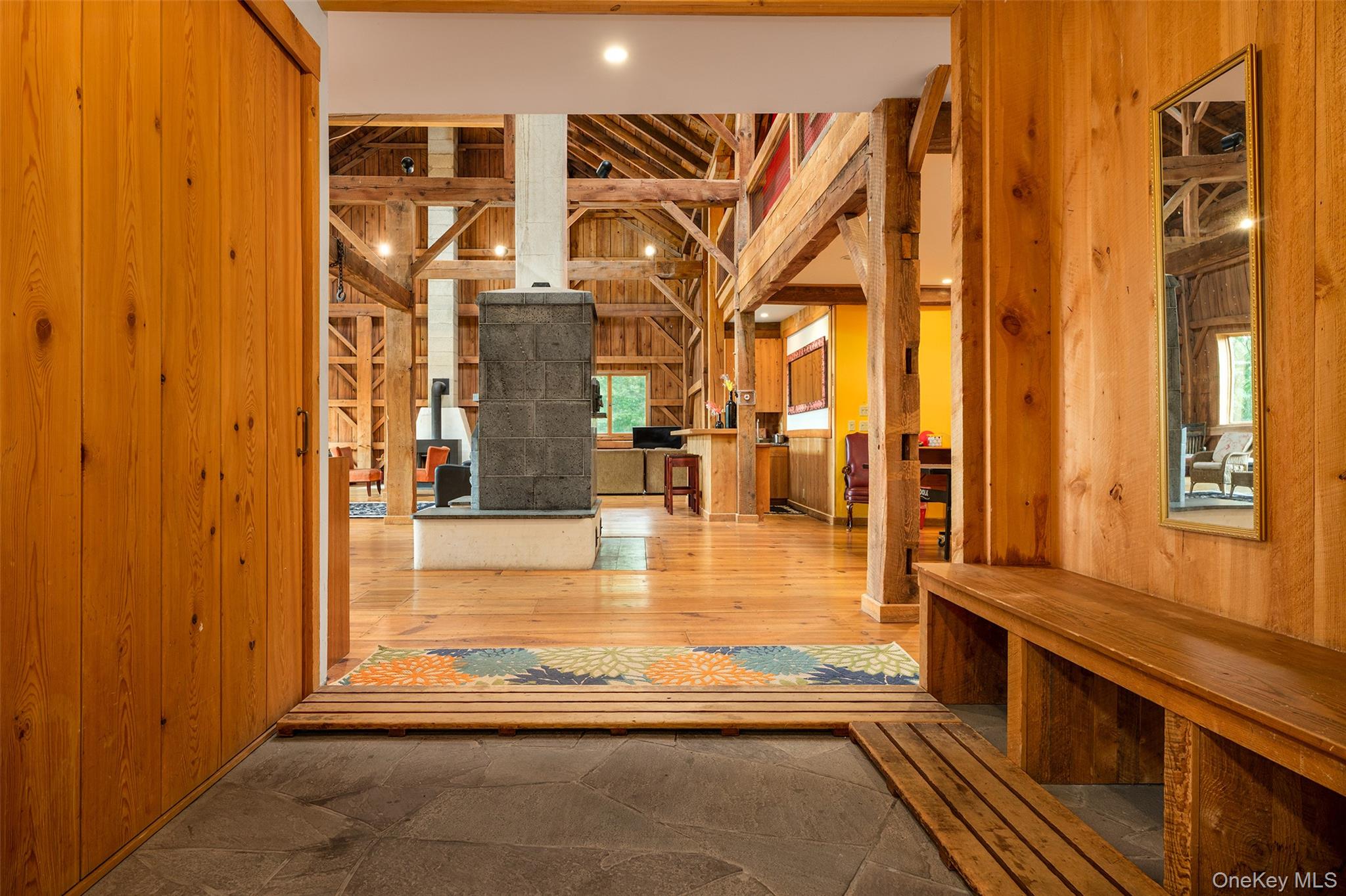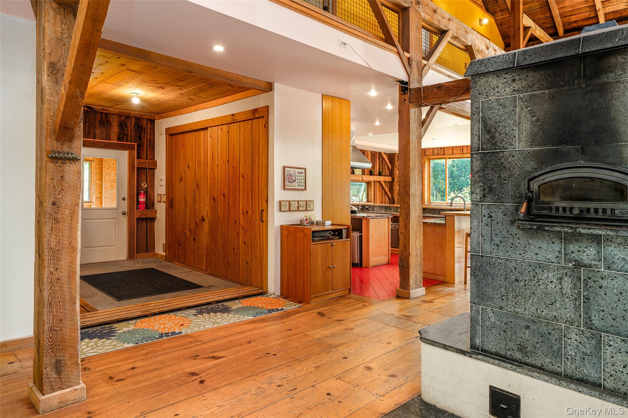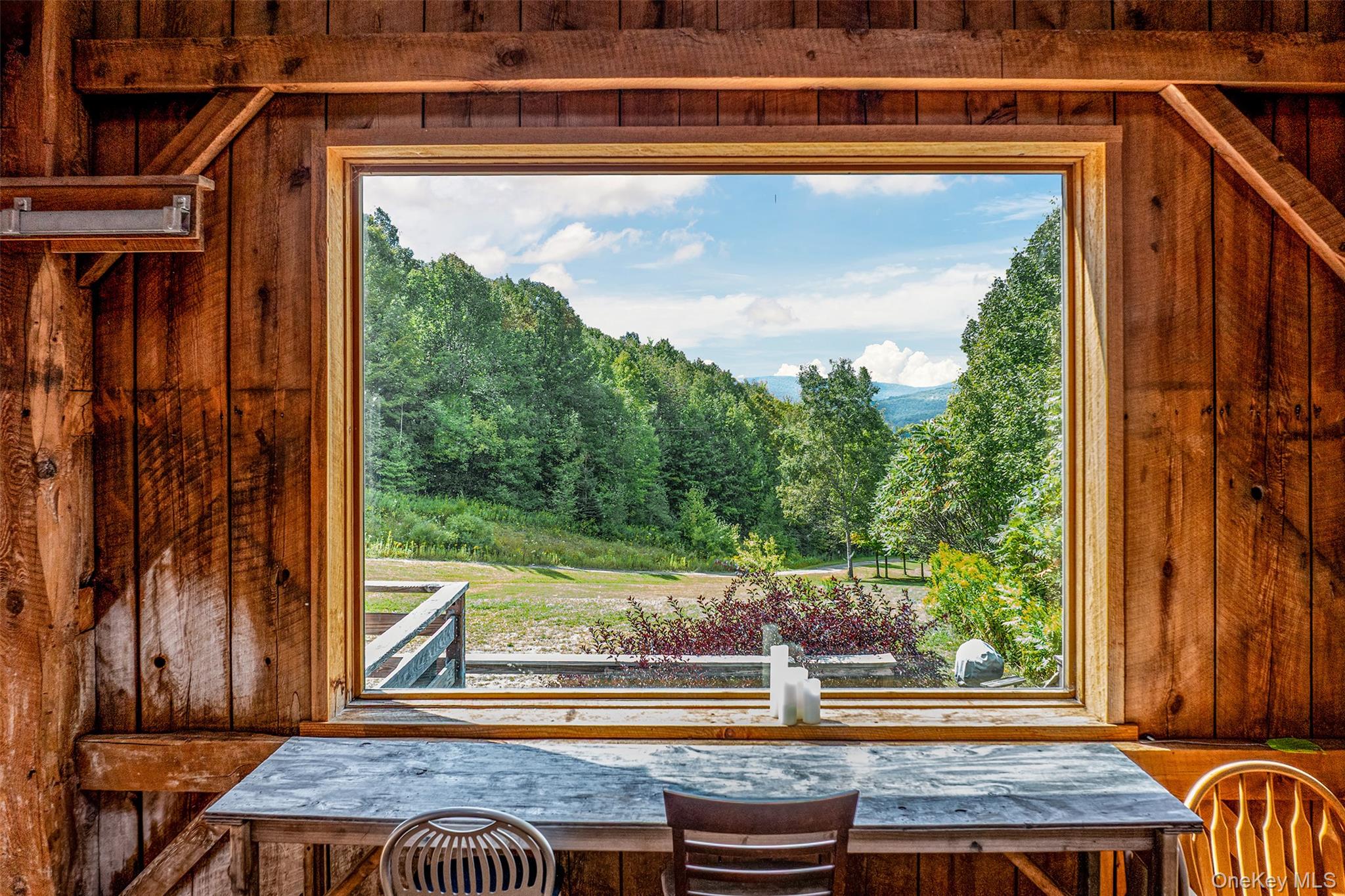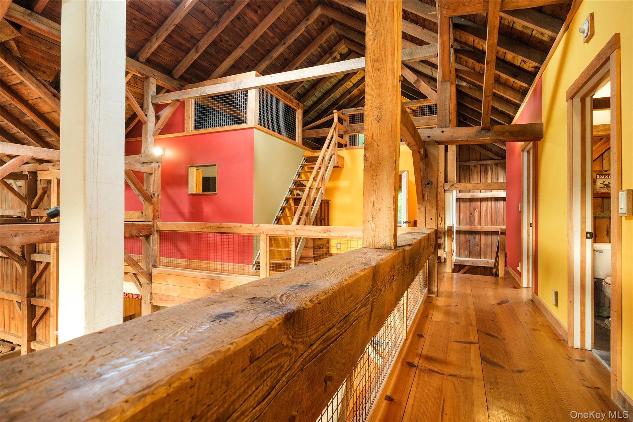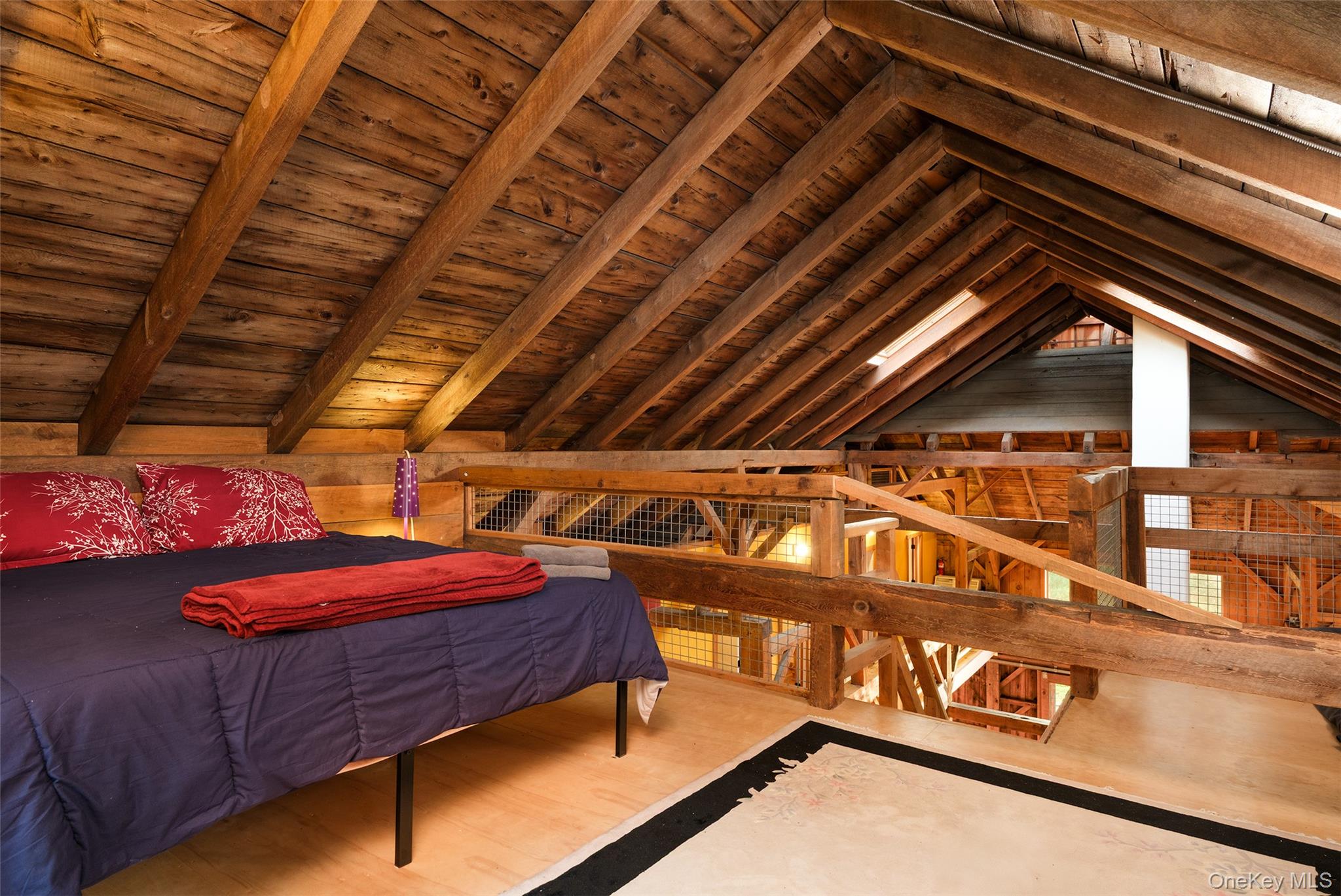 When the world becomes all too much, and the day's burdens have taken their toll on your soul, the drive to your private mountain retreat will cleanse you and reframe your perspective to a more peaceful view. Set within a breathtaking mountain bowl in the Vega Valley of Roxbury, NY, the spectacular setting of this 4+-bedroom, 3-bath residence combines historic character with modern luxury. Beginning life as part of the Stewart family farm more than a half mile lower on the mountain, this classic dairy barn, was built by hand in 1886. Through a feat of unprecedented engineering, the 80-ton barn was hauled, along with the 40 tons of steel beams holding it up, through the forest and up the mountain to its present site in 1990. (Read more about the move below. ) Preserving its architectural heritage and cathedral-like grandeur, the open-concept floorplan leaves massive original beams, traditional charm and expert craftsmanship exposed in the 30 foot high central great room. Modern amenities throughout the home turn a rustic frame into a truly luxurious experience. Highlights include spa-like bathrooms framed in local bluestone (including two Japanese-style soaking tubs), a chef's dream kitchen with center island cook station, multiple sinks, dishwashers and enormous granite counter space, and an inspired tatami seating area. Stunning picture windows and high-end wood stoves—one with a built-in pizza oven -- add warmth and personality to the magic of this incredible room. The second level has a fenced railing guiding guests to one of the 4 bedrooms on the floor, while creative ships ladders, climb to two crows-nest loft rooms even higher above. Set on 140 acres of private land, the property offers exclusive hiking trails, unmatched seclusion, and a deep connection to nature—an increasingly rarity in this region. The flexible layout suits a range of lifestyles, from full-time residence to wellness retreat, corporate escape, or short-term rental income. Just minutes from the towns of Margaretville, Roxbury, Andes, Bovina, Delhi and Phoenicia, the home provides easy access to dining, shopping, and cultural experiences. Plattekill Ski ( 9 miles), Belleayre Ski ( 13 miles), as well as Windham and Hunter Mountain ski resorts are all frequent attractions. Albany is an hour away and the GWB is under 2. 5 hours. This property is more than a home—it's a living legacy, inviting you to experience the timeless beauty and enduring spirit of the Catskills.