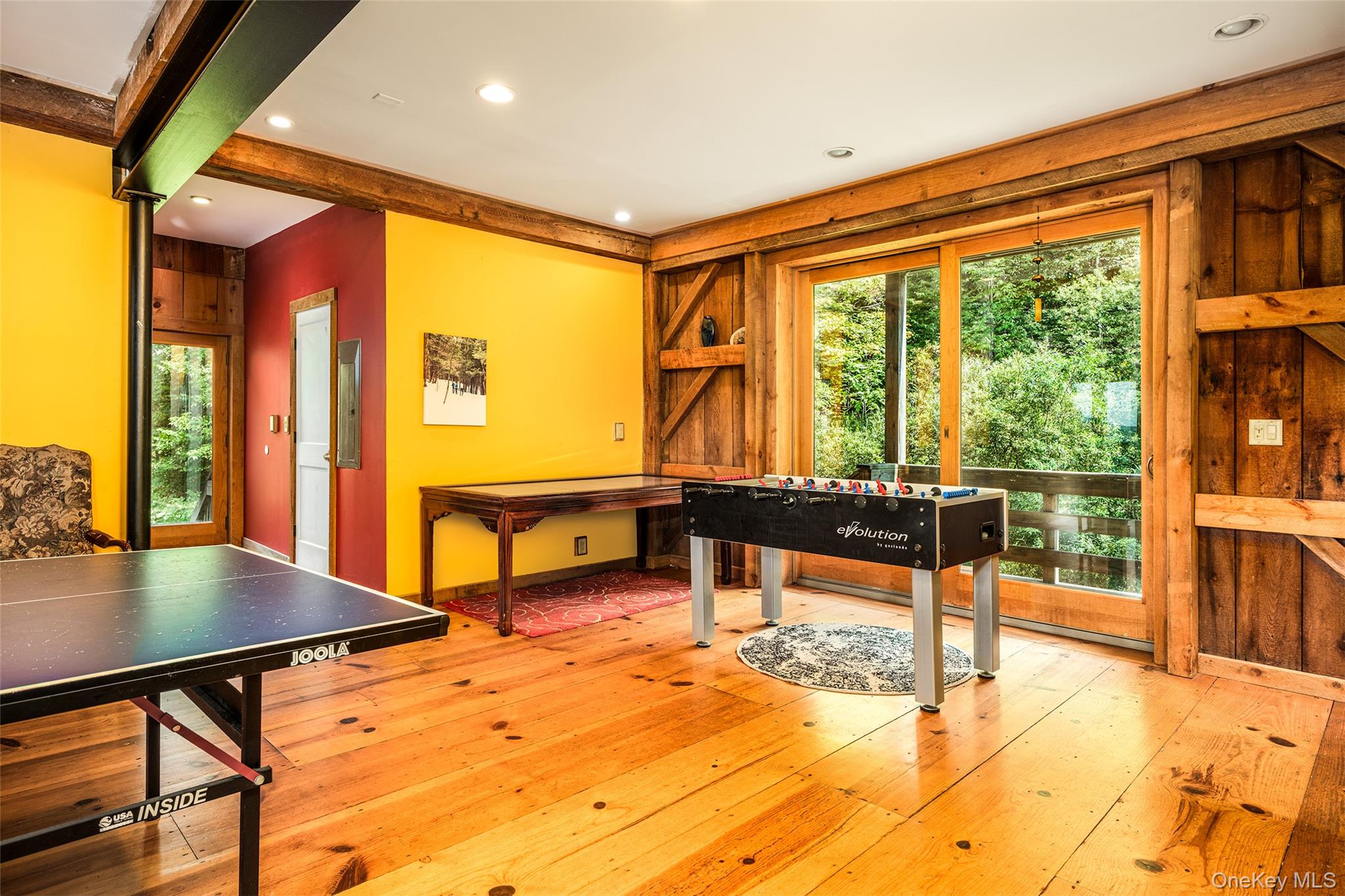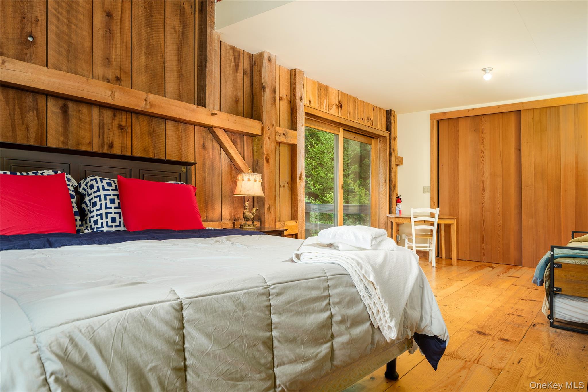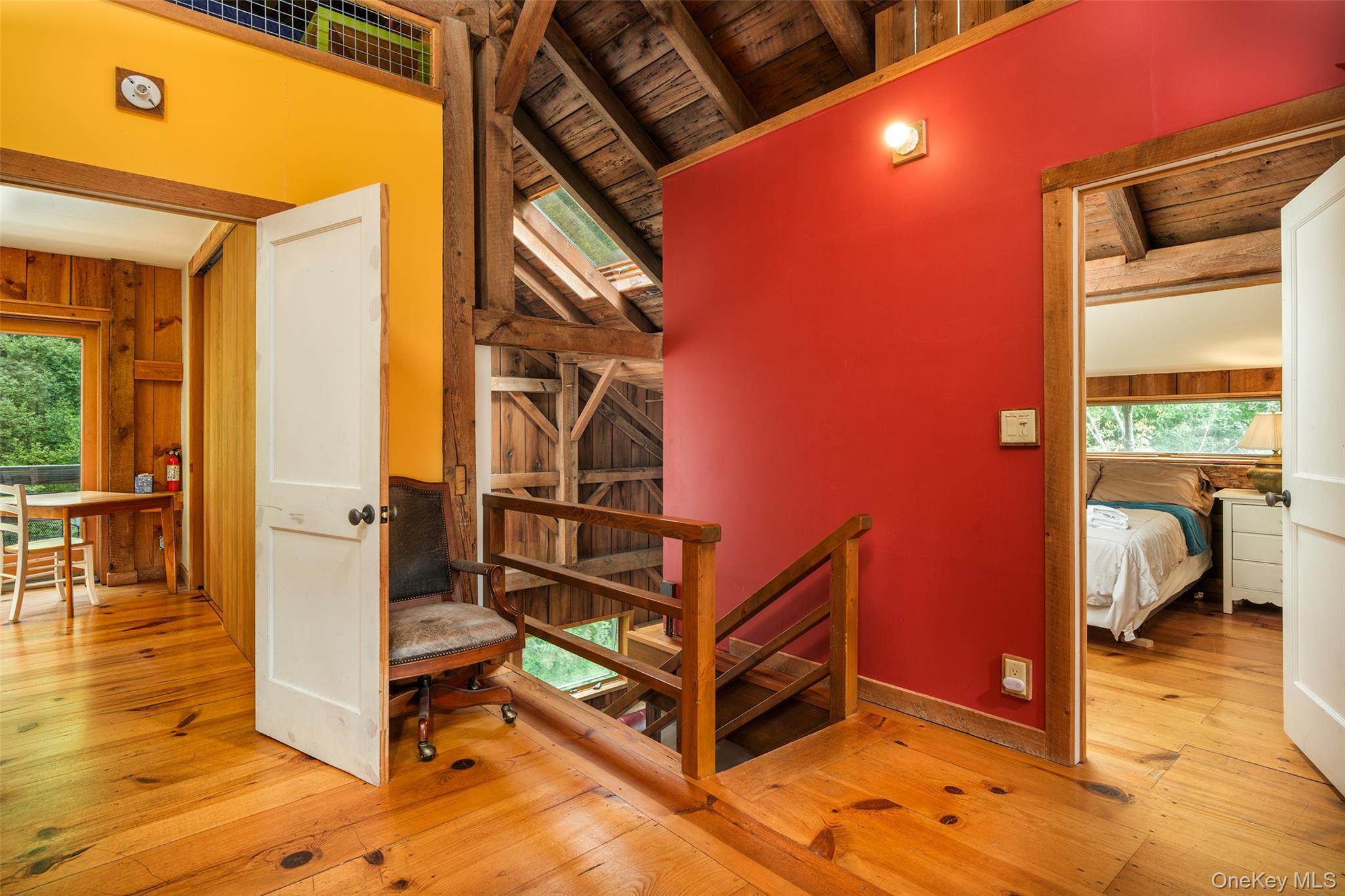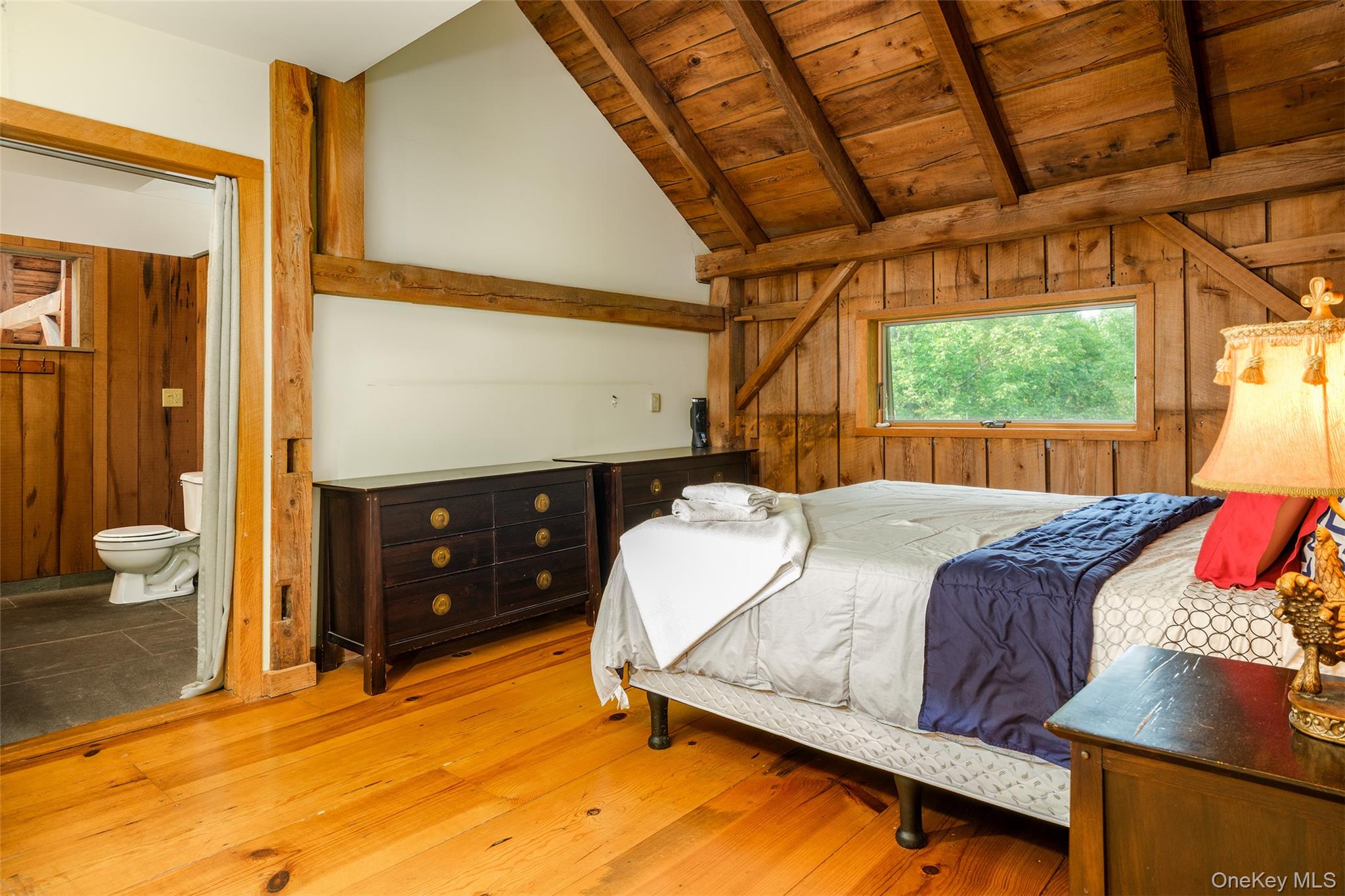 When the world becomes all too much, and the day's burdens have taken their toll on your soul, the drive to your private mountain retreat will cleanse you and reframe your perspective to a more peaceful view. Set within a breathtaking mountain bowl in the Vega Valley of Roxbury, NY, the spectacular setting of this 4+-bedroom, 3-bath residence combines historic character with modern luxury. Beginning life as part of the Stewart family farm more than a half mile lower on the mountain, this classic dairy barn, was built by hand in 1886. Through a feat of unprecedented engineering, the 80-ton barn was hauled, along with the 40 tons of steel beams holding it up, through the forest and up the mountain to its present site in 1990. (Read more about the move below. ) Preserving its architectural heritage and cathedral-like grandeur, the open-concept floorplan leaves massive original beams, traditional charm and expert craftsmanship exposed in the 30 foot high central great room. Modern amenities throughout the home turn a rustic frame into a truly luxurious experience. Highlights include spa-like bathrooms framed in local bluestone (including two Japanese-style soaking tubs), a chef's dream kitchen with center island cook station, multiple sinks, dishwashers and enormous granite counter space, and an inspired tatami seating area. Stunning picture windows and high-end wood stoves—one with a built-in pizza oven -- add warmth and personality to the magic of this incredible room. The second level has a fenced railing guiding guests to one of the 4 bedrooms on the floor, while creative ships ladders, climb to two crows-nest loft rooms even higher above. Set on 140 acres of private land, the property offers exclusive hiking trails, unmatched seclusion, and a deep connection to nature—an increasingly rarity in this region. The flexible layout suits a range of lifestyles, from full-time residence to wellness retreat, corporate escape, or short-term rental income. Just minutes from the towns of Margaretville, Roxbury, Andes, Bovina, Delhi and Phoenicia, the home provides easy access to dining, shopping, and cultural experiences. Plattekill Ski ( 9 miles), Belleayre Ski ( 13 miles), as well as Windham and Hunter Mountain ski resorts are all frequent attractions. Albany is an hour away and the GWB is under 2. 5 hours. This property is more than a home—it's a living legacy, inviting you to experience the timeless beauty and enduring spirit of the Catskills.