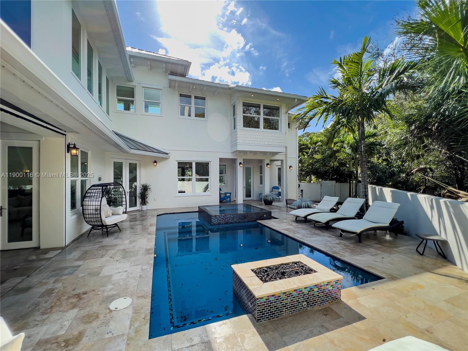 Experience modern luxury at its finest in this stunning 2018-built home located in the heart of Stuart. Every detail reflects sophistication and craftsmanship, from soaring vaulted ceilings to reclaimed 19th-century wood floors. The gourmet kitchen features top-of-the-line finishes and seamlessly connects to bright living spaces ideal for entertaining. Step outside to a beautiful pool area with an integrated fire pit, perfect for relaxing in style. The master suite offers a true retreat with a built-in wine refrigerator, ice maker, and a spa-inspired bathroom. A masterpiece of design and comfort, this home defines refined living.