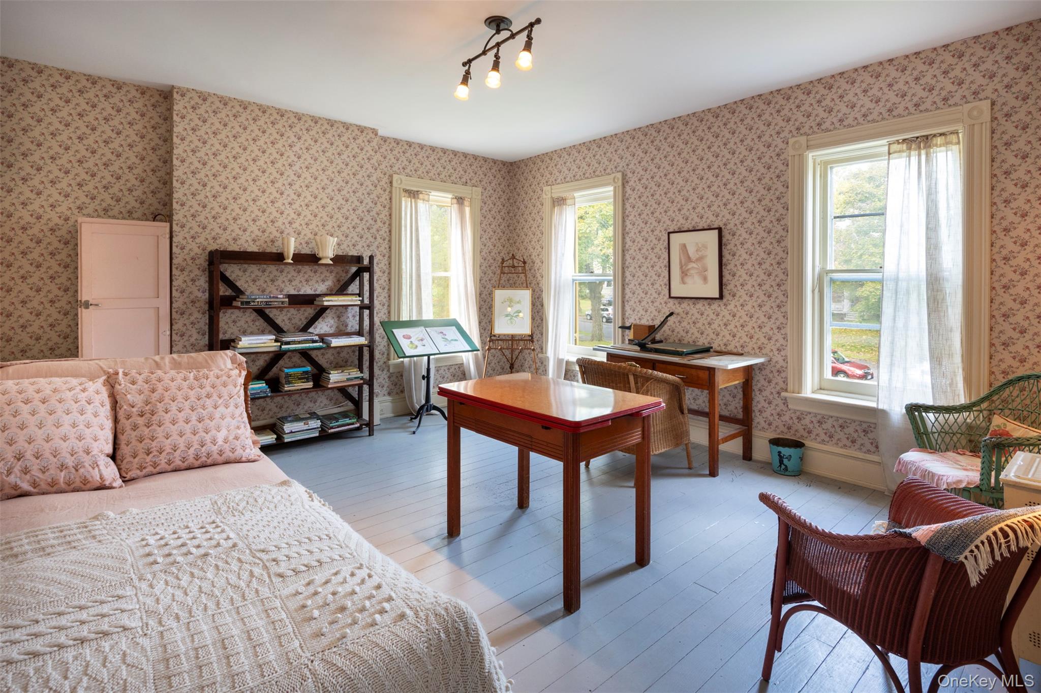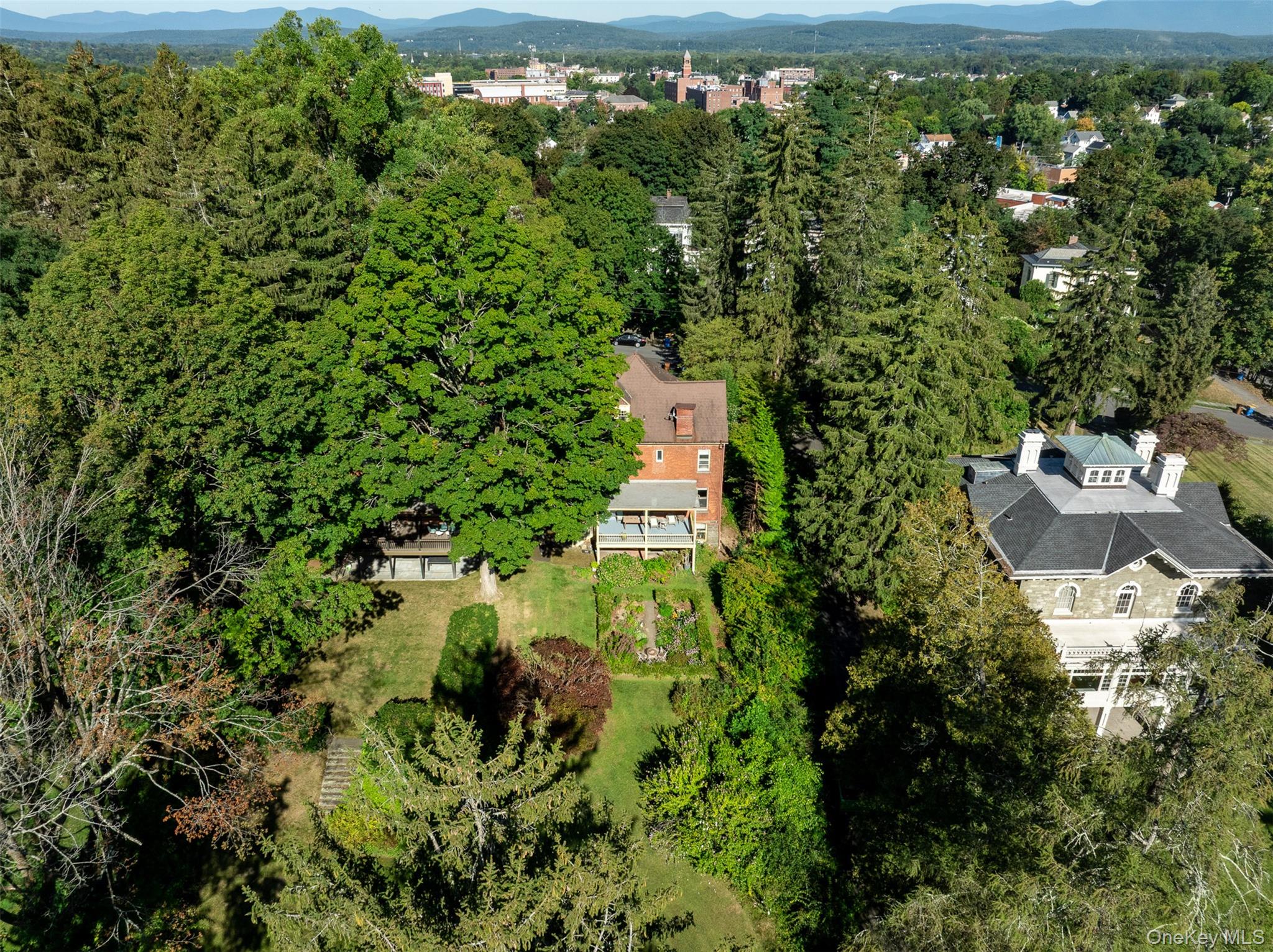 ACCEPTED OFFER AS OF 11/5/25. INSPECTIONS THE WEEK OF 11/10/25. Original charm and character, with a legendary view: This gracious Queen Anne style home, originally built in the 1880s for attorney Charles Cantine on a high perch of Kingston's historic West Chestnut Street, is walkable to all the action on the Rondout waterfront but still evokes an earlier era. Fronted by an old-school vestibule and a Dutch door featuring its original bottle-glass window, the house features symmetrical front and back parlors, with the beamed back parlor opening to a gracious verandah overlooking a park-like sanctuary of a backyard, and, beyond, the Hudson River in all its year-round splendor. On a street built by brick barons, renowned architects and Hudson School landscape artists, the house still affords the dramatic 4-season views of sunrises, sunsets and wildlife, including hawks, that those artists memorialized in their paintings more than a century ago. Inside, that lineage is also evident in the grand three-story staircase, Arts & Craft-style fireplace surrounds, hardwood floors and built-ins. In addition to the grand open parlors, the main floor features a third oversized room, also with its own fireplace and river views, suitable for dining or an expanded kitchen. Upstairs are 3 large bedrooms, all but one with unobstructed views, and a full bathroom. The third floor features 2 additional finished rooms plus separate storage space, and affords a dramatic view not just outward, but downward too, from the apex of the extraordinary 4-sided and windowed staircase. The verandah and front porches have both been extensively restored in recent years. Other improvements include a natural-gas boiler and ducted central air-conditioning. This is a rare opportunity to own a house with vintage character and unique vistas in a much sought-after location, just 2 hours by car or bus from NYC and minutes by foot from the restaurants, galleries and boat launches that have made the Kingston Rondout one of the hottest neighborhoods in the Hudson Valley.