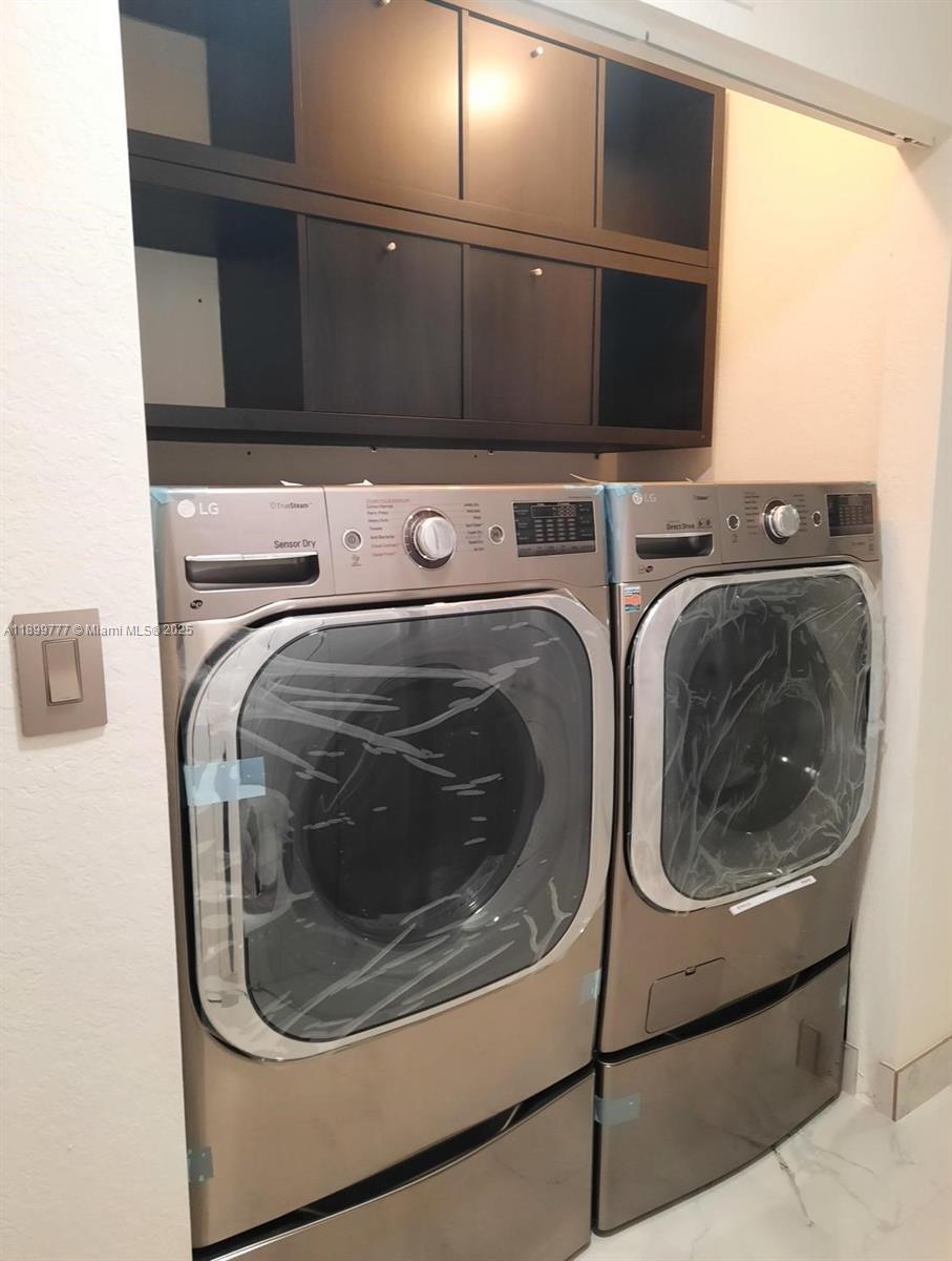 Spectacular and comfortable — no stairs, no carpeted floors, and located near Doral’s top schools. This modern and beautifully remodeled apartment features 3 spacious bedrooms, 2 full luxury bathrooms with walk-in showers and glass doors, a stylish kitchen with high-end appliances, and energy-efficient washer and dryer with drawer pedestals. Bright open living and dining areas with LED lighting throughout and a lovely balcony overlooking lush trees. White porcelain floors, two parking spaces (one assigned), ample guest parking, and condo fee included. Steps from the pool and school.