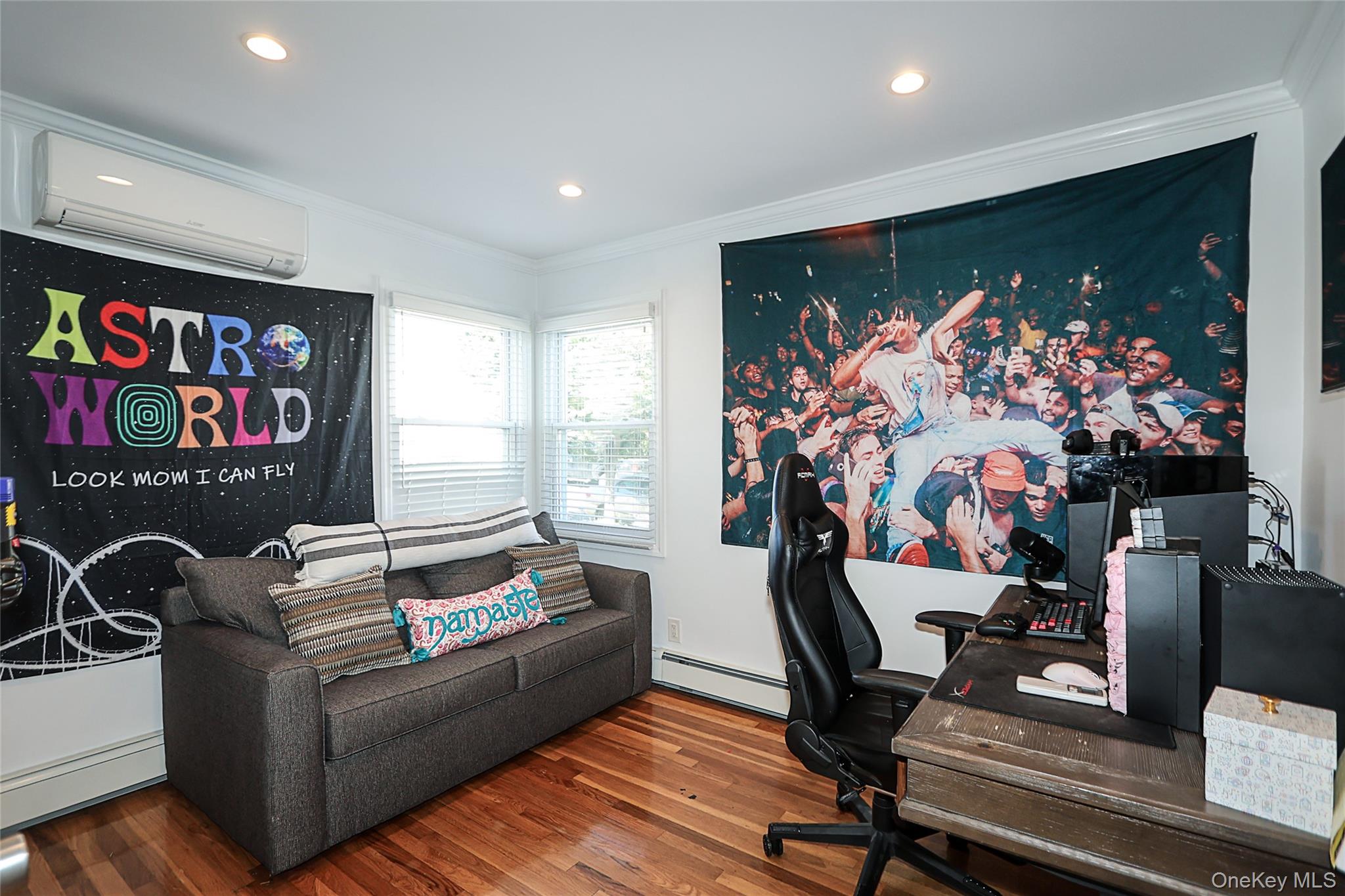 This beautifully renovated home updated in 2023 offers the perfect blend of modern comfort and convenience in a prime Albertson location. Step inside to a bright, open-concept layout featuring a sun-filled living room, formal dining area, and gleaming hardwood floors with recessed lighting throughout. The home is equipped with six energy-efficient mini-split systems for year-round comfort. The first floor includes two spacious bedrooms and a modern full bath, while the second floor offers two generous bedrooms and another updated full bath. A full basement with a separate outside entrance provides ample storage and potential for additional living space. Located close to the LIRR, houses of worship, shopping, and major highways, this home offers unbeatable convenience in an excellent neighborhood , truly move-in ready and close to everything!