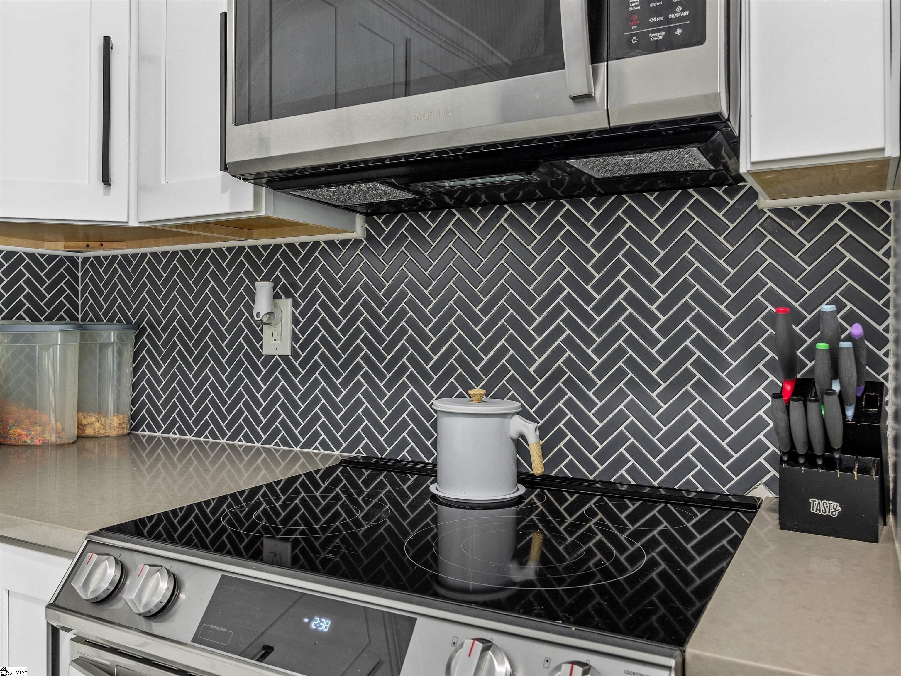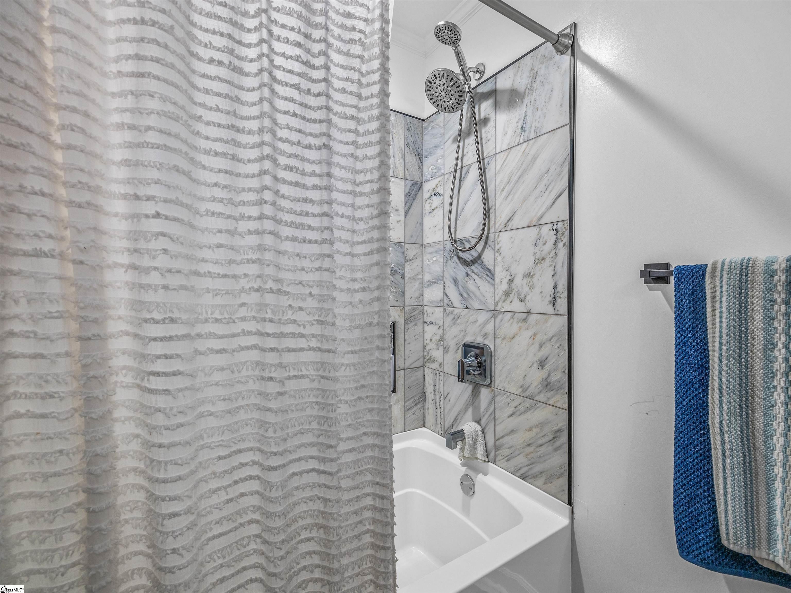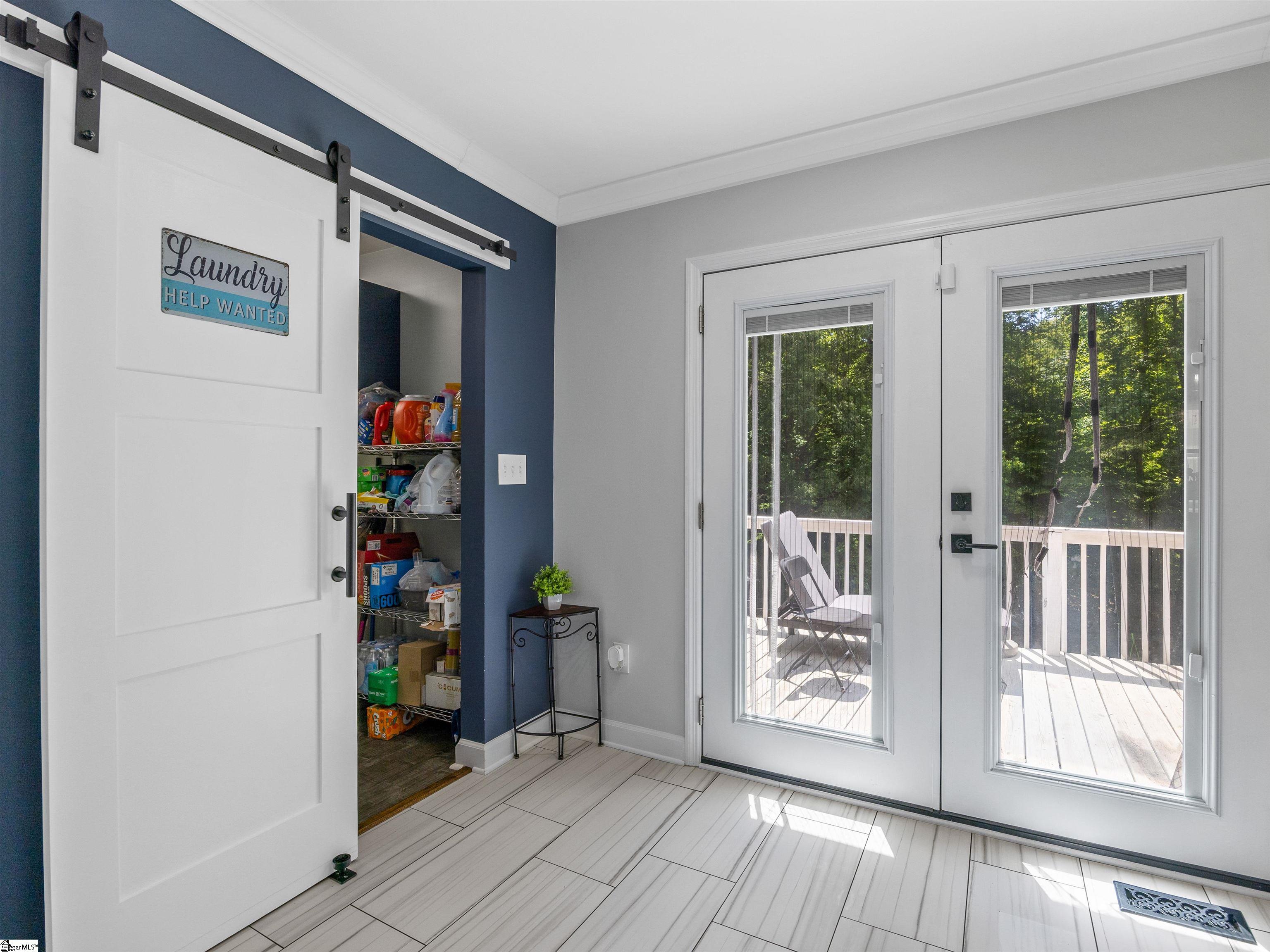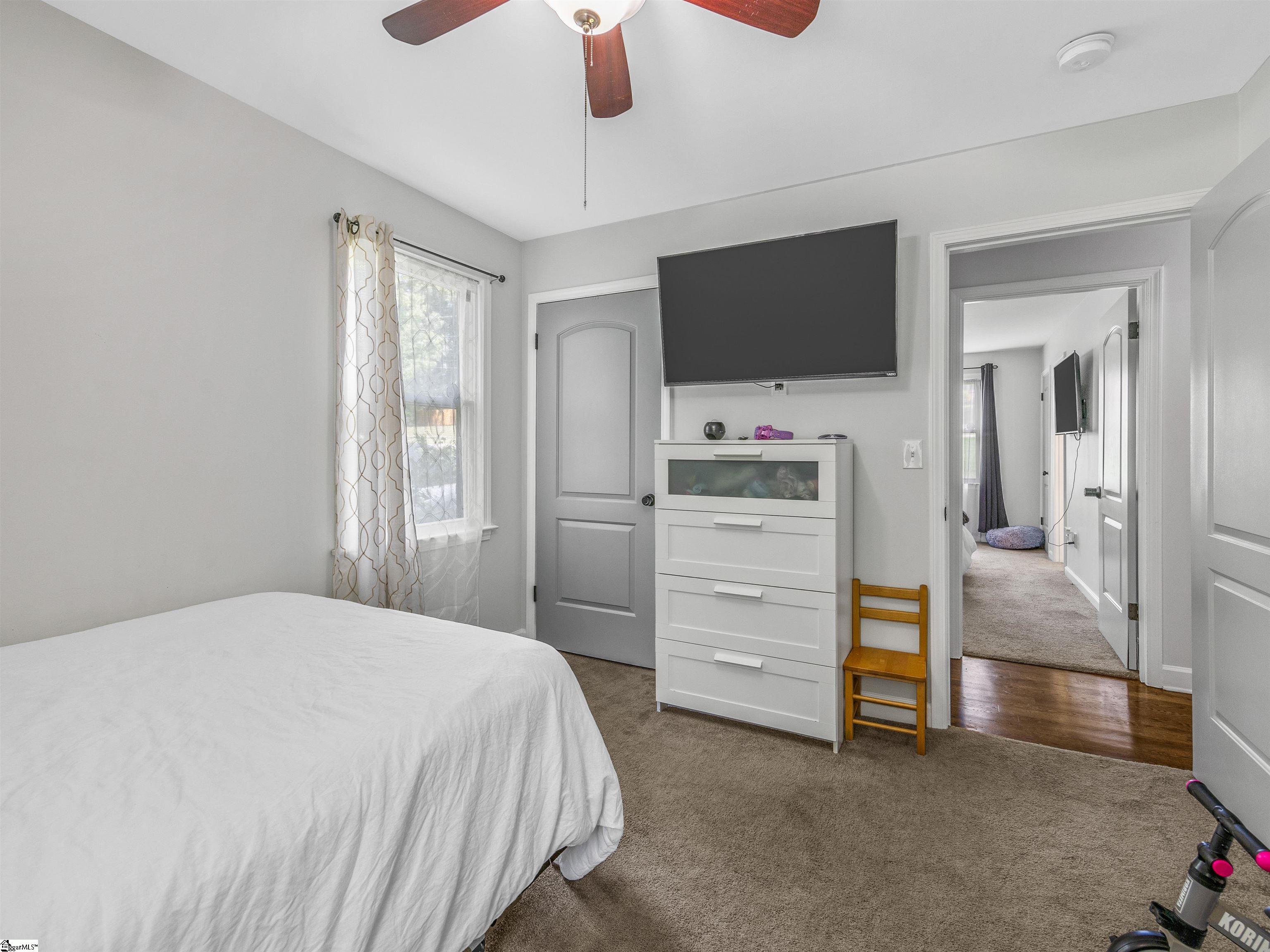 Welcome to this beautifully updated home offering 4 ample bedrooms and 2 stylishly appointed bathrooms, both featuring eye-catching tile work. From the moment you enter, the inviting foyer with coffered wall detailing, rich hardwood floors, and elegant crown molding sets the tone for the upscale finishes found throughout the home. The open-concept living and dining area flows seamlessly into a sleek modern kitchen, complete with a waterfall quartz countertop, large single-basin sink, pendant lighting, and stainless steel stove/oven, microwave, and dishwasher. The expansive bar area offers extra seating, perfect for entertaining or family gatherings. Just off the kitchen, a large laundry room provides space for stackable units, additional storage, and even includes a utility sink, all conveniently located with access to the attached garage. Step outside onto the 25-foot deck, ideal for grilling and relaxing, overlooking a peaceful, fully fenced backyard, perfect for kids, pets, or weekend get-togethers. The secondary bedrooms feature generous closet space and ceiling fans for comfort. The hall bathroom includes a tub/shower combo with dual inserts for soaps and hair products, offering style and function for guests and family alike. Retreat to the spacious primary suite, boasting two closets and a luxurious en-suite bathroom with a large custom-tiled shower and bidet toilet. Enjoy peace of mind with recent updates to HVAC, water heater, electrical, and plumbing. There's nothing to do but move in and enjoy the comfort, storage, and prime location this home offers. Convenient to all that Greenville and the Upstate of South Carolina have to offer.