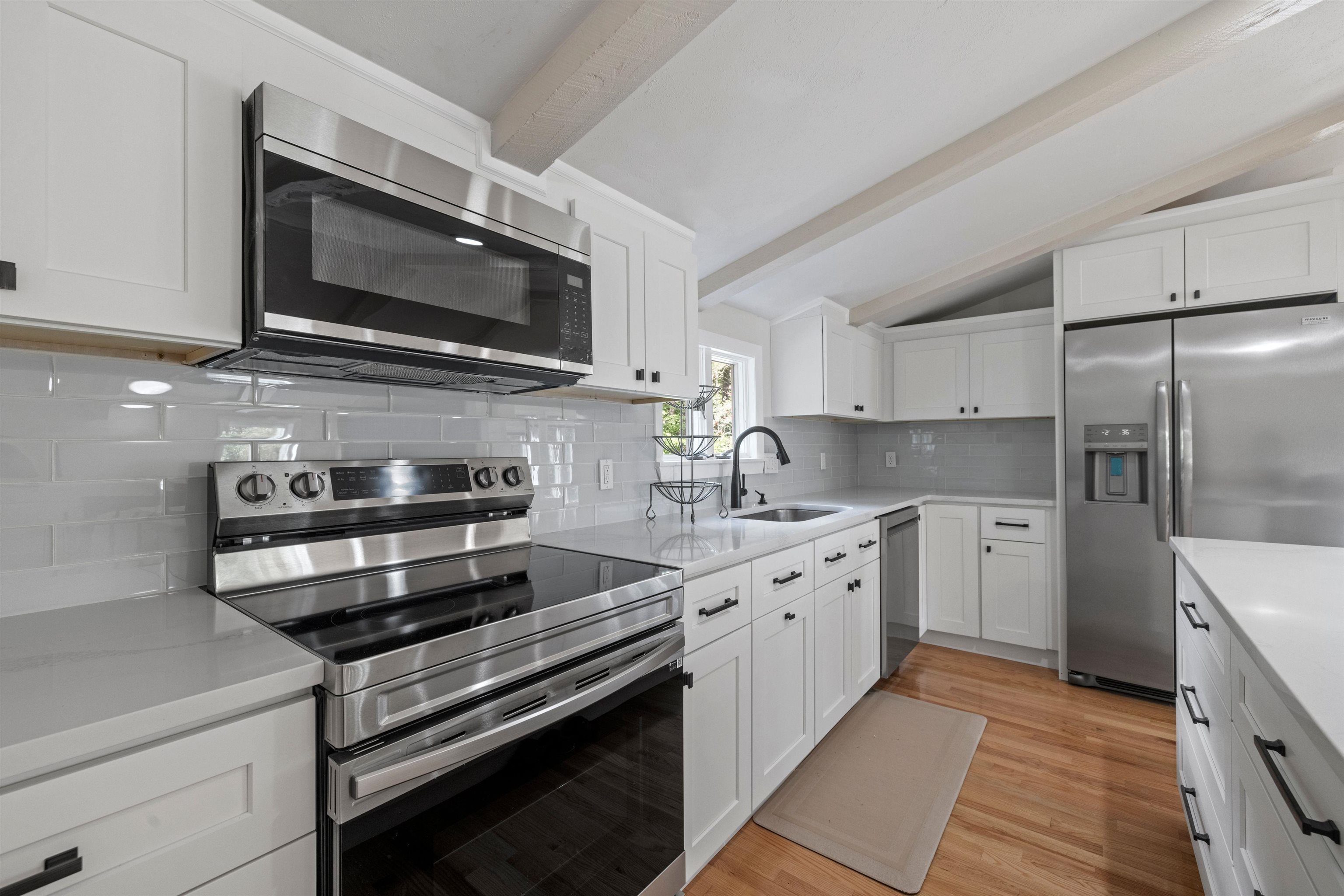This stunning, totally renovated 3 bedroom, 3 full bath private Governor's Island residence is available for a long-term rental. Each of the spacious bedrooms features its own full bath, ensuring comfort and privacy for all occupants. The brand-new kitchen boasts granite counter tops and a central island. The large living room with vaulted ceilings creates an inviting space for relaxation and entertainment. Step outside to the expansive deck, where you can enjoy peekaboo views of the lake and a spacious, private backyard. Access to the island's amenities, including a private beach, clubhouse, tennis and pickleball courts, and a playground. Please note, this home is pet free and smoke free. Property maintenance, landscaping, and snow plowing are included, though tenants are responsible for shoveling walkways and all utilities. Laundry hookups are available. Conveniently located just minutes from Lake Winnipesaukee attractions and area amenities.