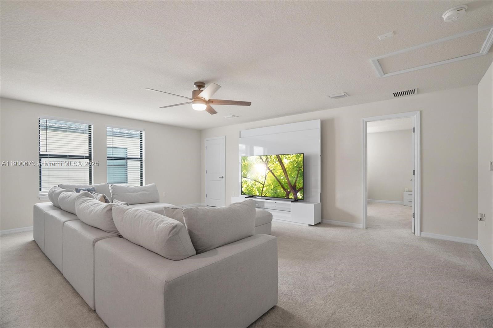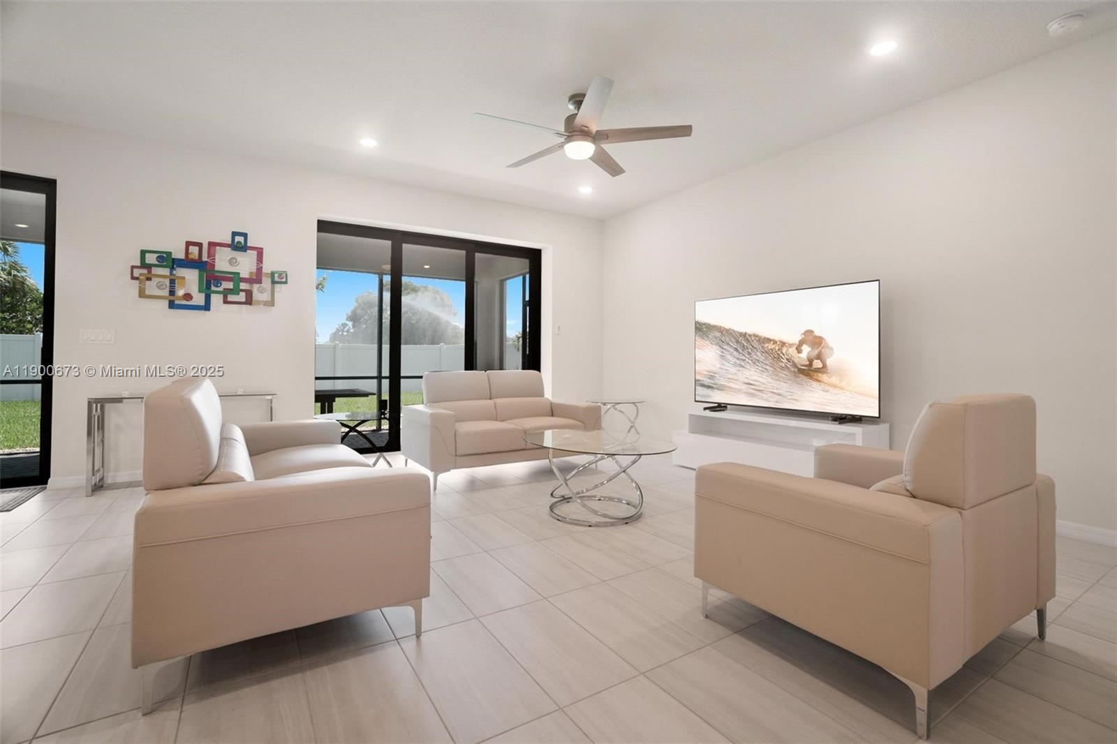 FABULOUS LIKE NEW 2-STORY HOME BUILT IN 2022. BE THE FIRST TO LIVE IN THIS STUNNING 5-BEDROOM, 3 BATHROOMS HOME FEATURING MODERN FINISHES AND A SPACIOUS LAYOUT. UPSTAIRS COMES WITH 3 BEDROOMS, 1 FULL BATHROOM AND AN ADDITIONAL LIVING ROOM. DOWNSTAIRS COMES WITH A BRIGHT KITCHEN WITH STAINLESS STEEL APPLICANCES, FORMAL DININING ROOM & SPACIOUS LIVING ROOM, 2 BEDROOMS WHICH INCLUDES THE PRIMARY SUITE, 2 FULL BATHROOMS AND A LARGE 2 CAR GARAGE. HOME INCLUDES 8 CEILING FANS. ENJOY A LARGE PATIO WITH GOLF COURSE VIEW, A SCREENED-IN PORCH WITH PAVERS. THIS HOME HAS IT ALL!