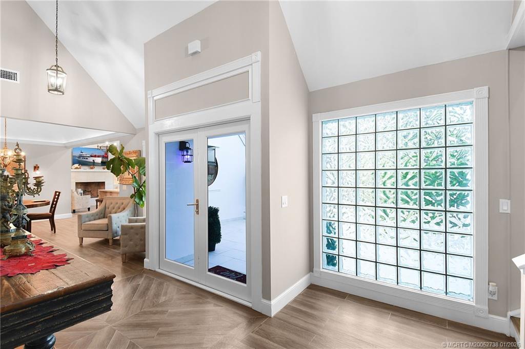 Discover unparalleled luxury in this Sewall’s Point home. Featuring three-bedroom suites and two half bathrooms designed for ultimate comfort and privacy. The first floor main bedroom suite offers convenience, while there are two sets of stairs leading to additional guest suites in the east and west wings. Inside the home impresses with soaring ceilings and abundant natural light, enhanced by strategically placed skylights throughout. Practicality meets elegance with a generous 3-car garage providing ample storage, quartz countertops in the kitchen and baths, and the cozy charm of two wood-burning fireplaces. Peace of mind is assured with impact glass, accordion shutters and hurricane panels. Step outside to a relaxing screened-in pool, covered patio and lush landscape. Desirable location, just moments from the beach, restaurants, shopping and more.