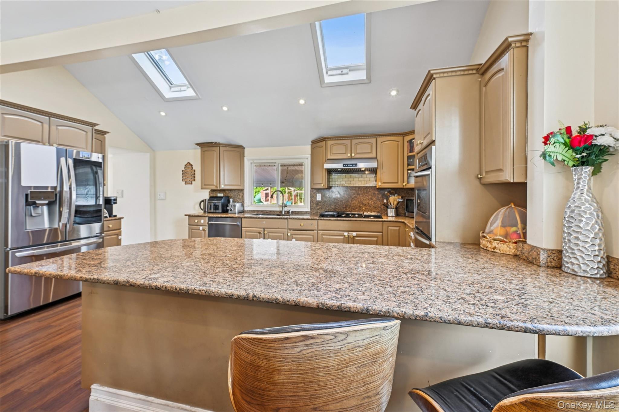 Bright and spacious Colonial on a quiet Merrick block. Five comfortable bedrooms and two full baths give you the space you need. The main level features a sunlit living room, dining room, and an eat-in kitchen that opens through sliders to an incredible backyard. Enjoy an oversized deck with a covered lounge, grill area, and a wide, private lawn that is perfect for gatherings and play. Charming front porch for morning coffee. Close to the LIRR, parks, shopping, Sunrise Hwy, and Meadowbrook Pkwy. A move-in-ready Merrick home with room to live, work, and entertain.