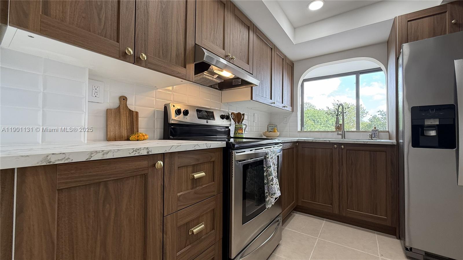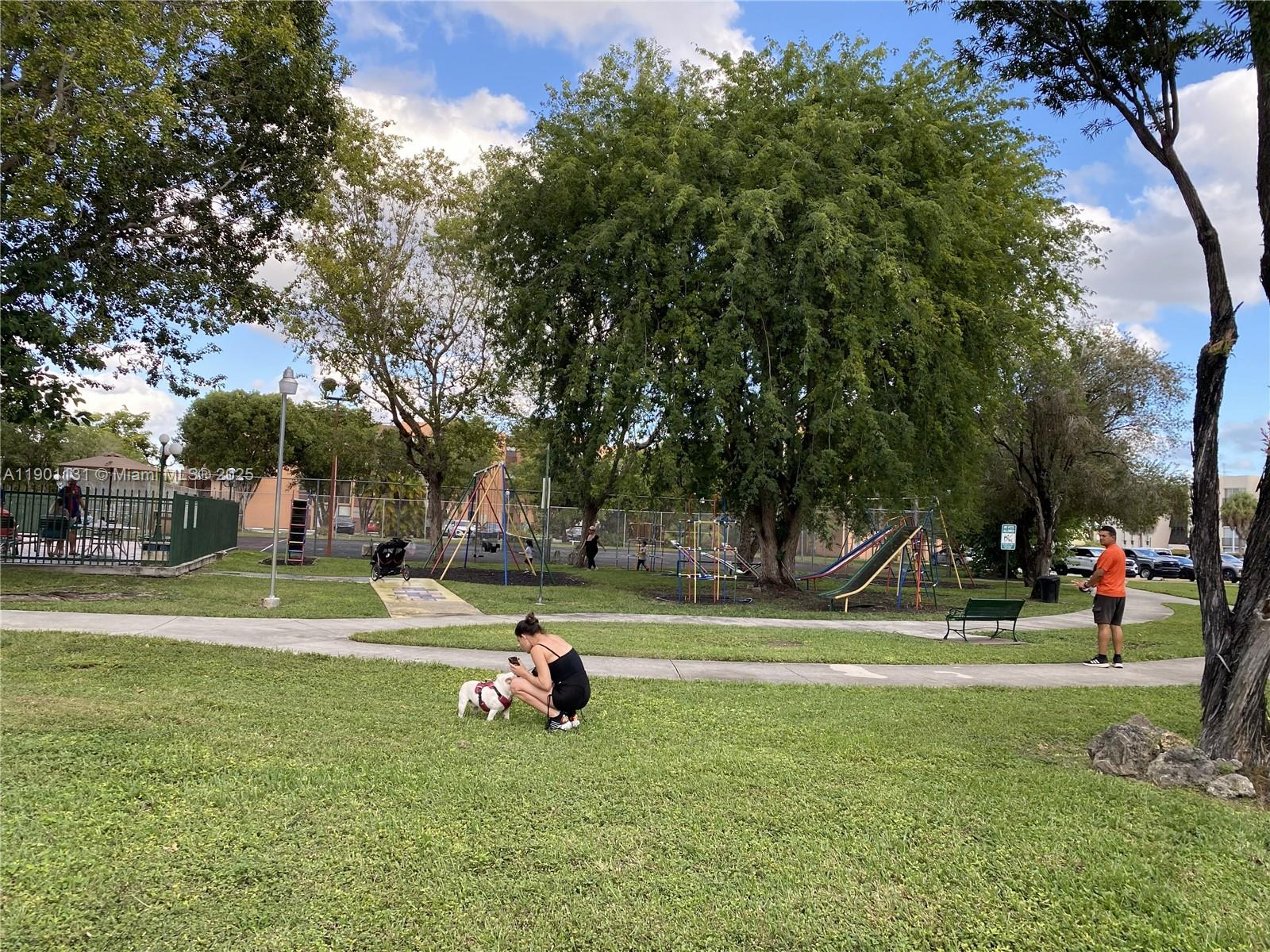 Newly renovated condo with 2 brand new bathrooms, new kitchen with recessed lighting, NO popcorn ceiling, and large windows overlooking trees, pool and club area. Condo has 2 spacious rooms with large closets, linen closet, a closet off of the living room, as well as convenient laundry area. It also has a den that can be used as an office or exercise area. Located in a gated community filled with trees and including a pool, a clubhouse with a gym area, a children's playground, lighted tennis courts, and basketball courts. Condo has passed its 40-year recertification. Central location across the street from Walmart, LA Fitness, and Chick-fil-A; close to FIU, Target, Marshalls, Ross, and many restaurants. Dolphin Mall, Midway Mall and International Mall are a short drive away.