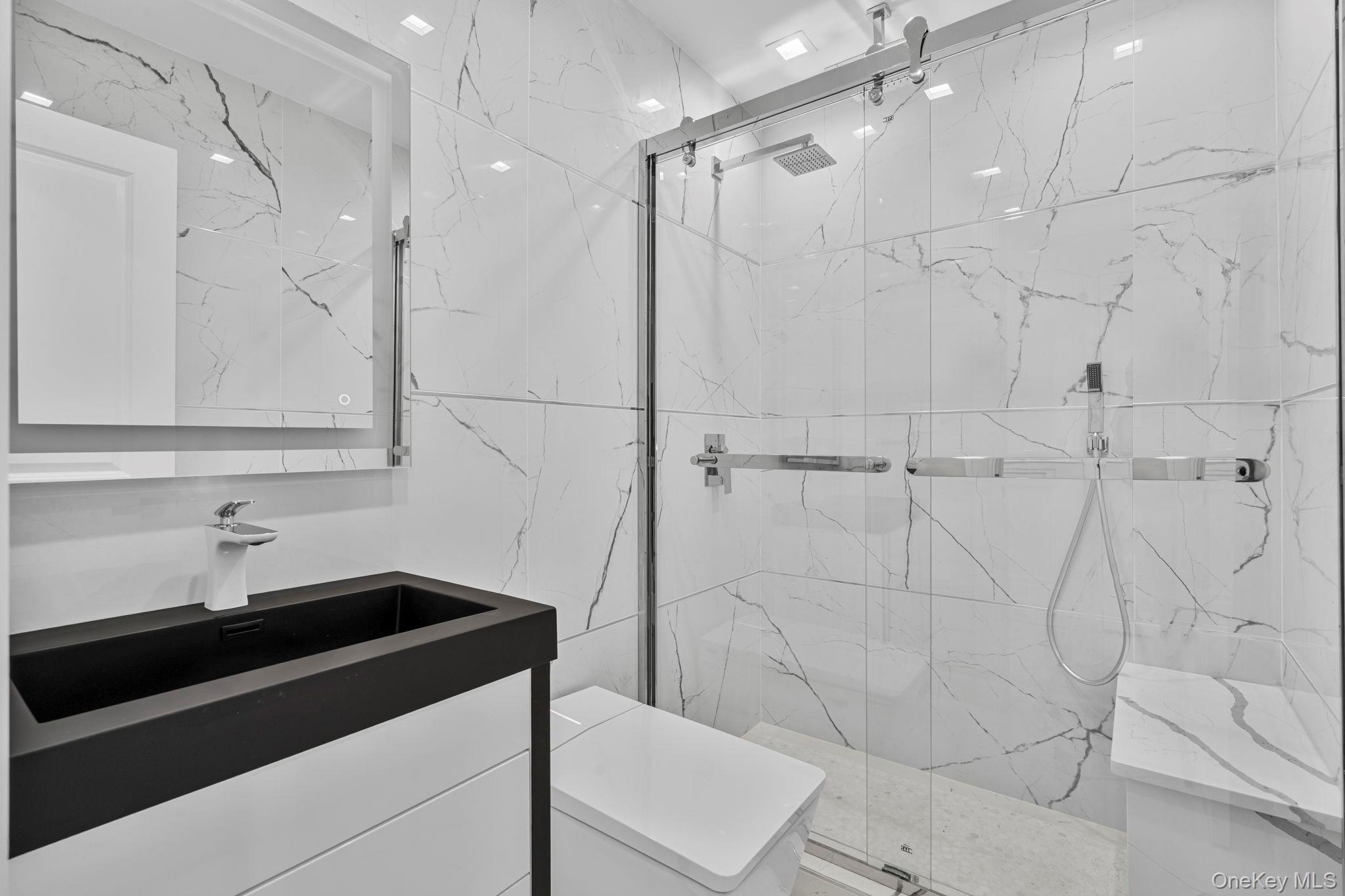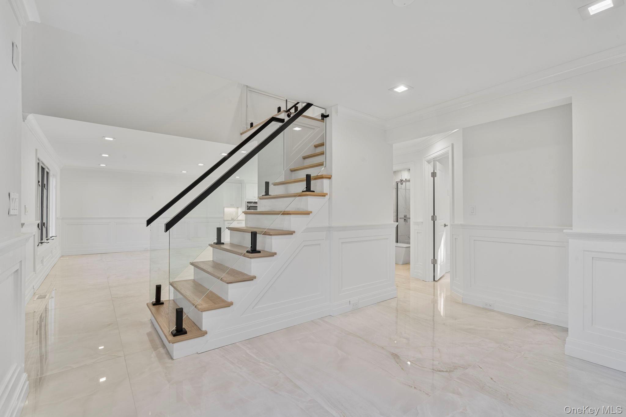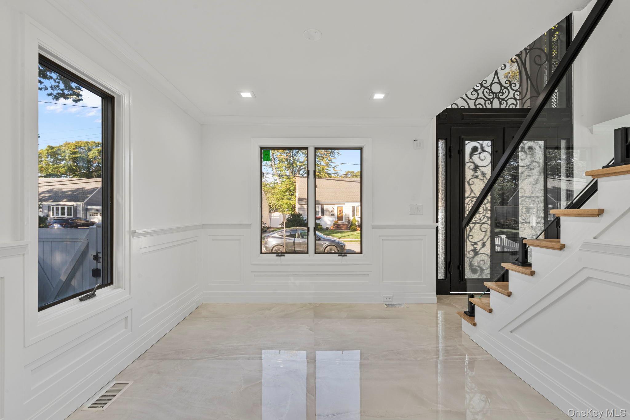Welcome to this spectacular, fully renovated 5 bedrooms, 5 bathrooms Colonial Style in the desirable Massapequa Park Village. This exquisite home offers a perfect blend of modern luxury and classic charm. As you step inside, you'll be captivated by the open concept layout, which seamlessly connects the living areas. The stunning kitchen features a premium 5-burner stove, a wall oven - microwave combo and pristine quartzite countertops. The oversized waterfall island not only provides ample prep space but also houses a wine fridge and extra storage, making it perfect for entertaining family and friends. The luxurious first floor is adorned with radiant heated floors, ensuring year around comfort. Each of the 5 beautiful bathrooms is equipped with smart toilets and heated floors. With elegant wainscoting and custom millwork throughout, this house exudes sophistication. Enjoy modern frameless glass railings that enhance its contemporary feel. The exterior features one car garage, paving stones, a eight-foot-tall wrought iron double doors. 2-zone air conditioning system. Finished basement (entertaining room) with egress window, full bath and laundry room. Beautiful Backyard with a new sprinkler system and all fenced in. Schedule your private tours 24/7
