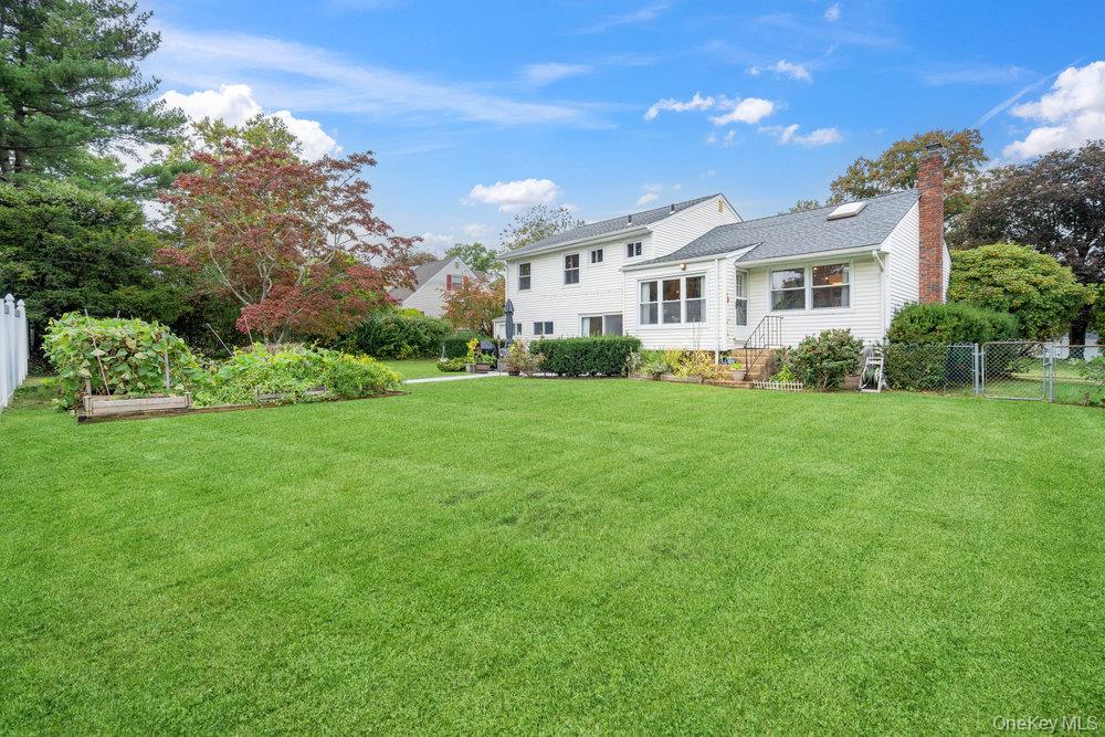 Move right into this stunning 4-bedroom, 3-bath split ranch perfectly situated in a prime mid-block location. An inviting marble floor entry welcomes you to an open and spacious layout with soaring ceilings that fill the home with natural light. The updated eat-in kitchen offers gas cooking, granite countertops, and abundant storage, along with the living room and cozy den — ideal for everyday living and entertaining. The first floor offers a convenient bedroom with a full bath, perfect for guests or extended family. Upstairs, you’ll find three additional bedrooms, including a generous primary suite featuring a luxurious full bath with both a shower and jacuzzi tub. The beautifully landscaped, fenced-in backyard is a private retreat — complete with a paver patio, a thriving vegetable garden, and ample space for a pool. Additional highlights include a full finished basement, updated systems, 200-amp electric, and in-ground sprinklers. This home truly has it all — comfort, space, and an exceptional location. Don’t miss it — won’t last!