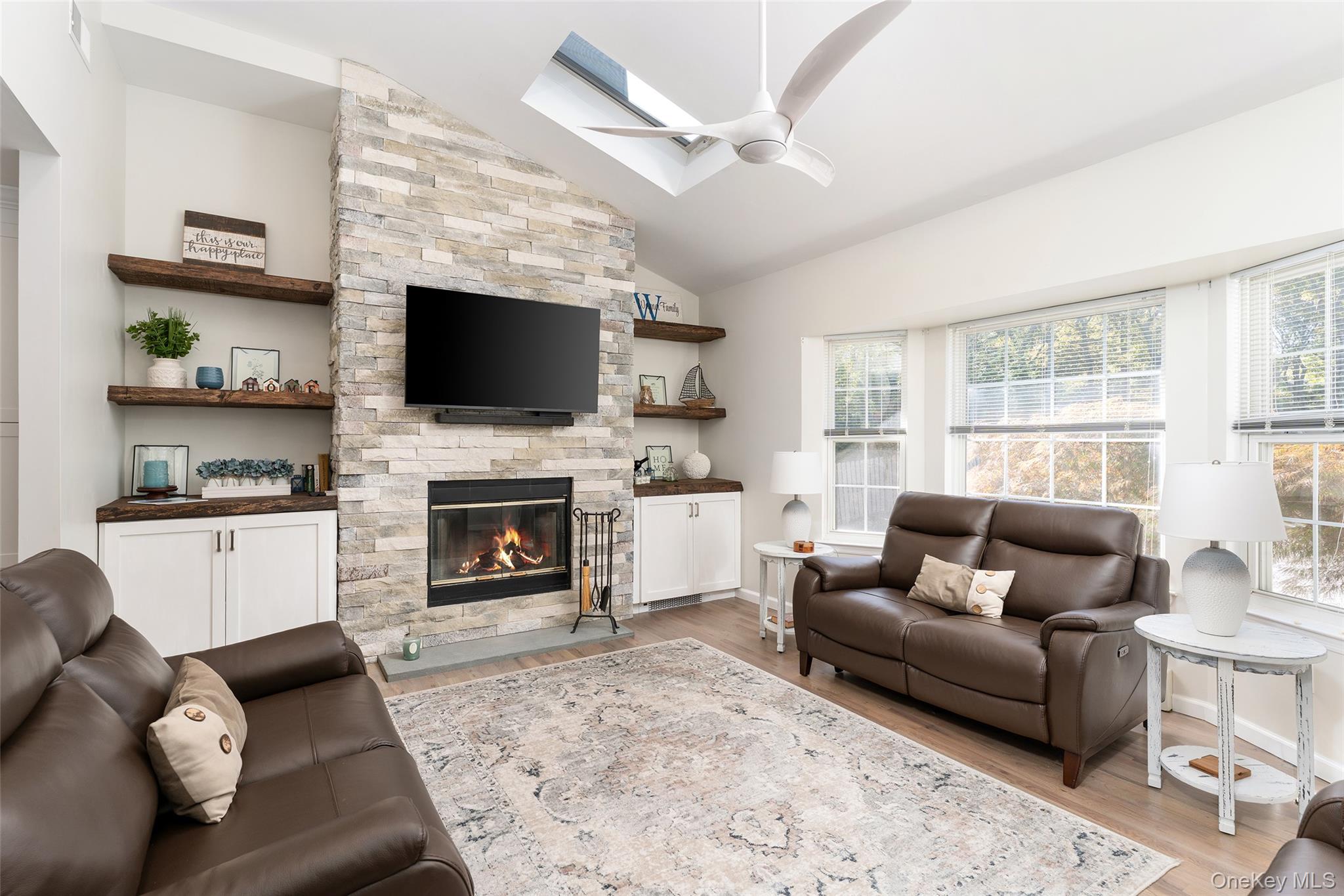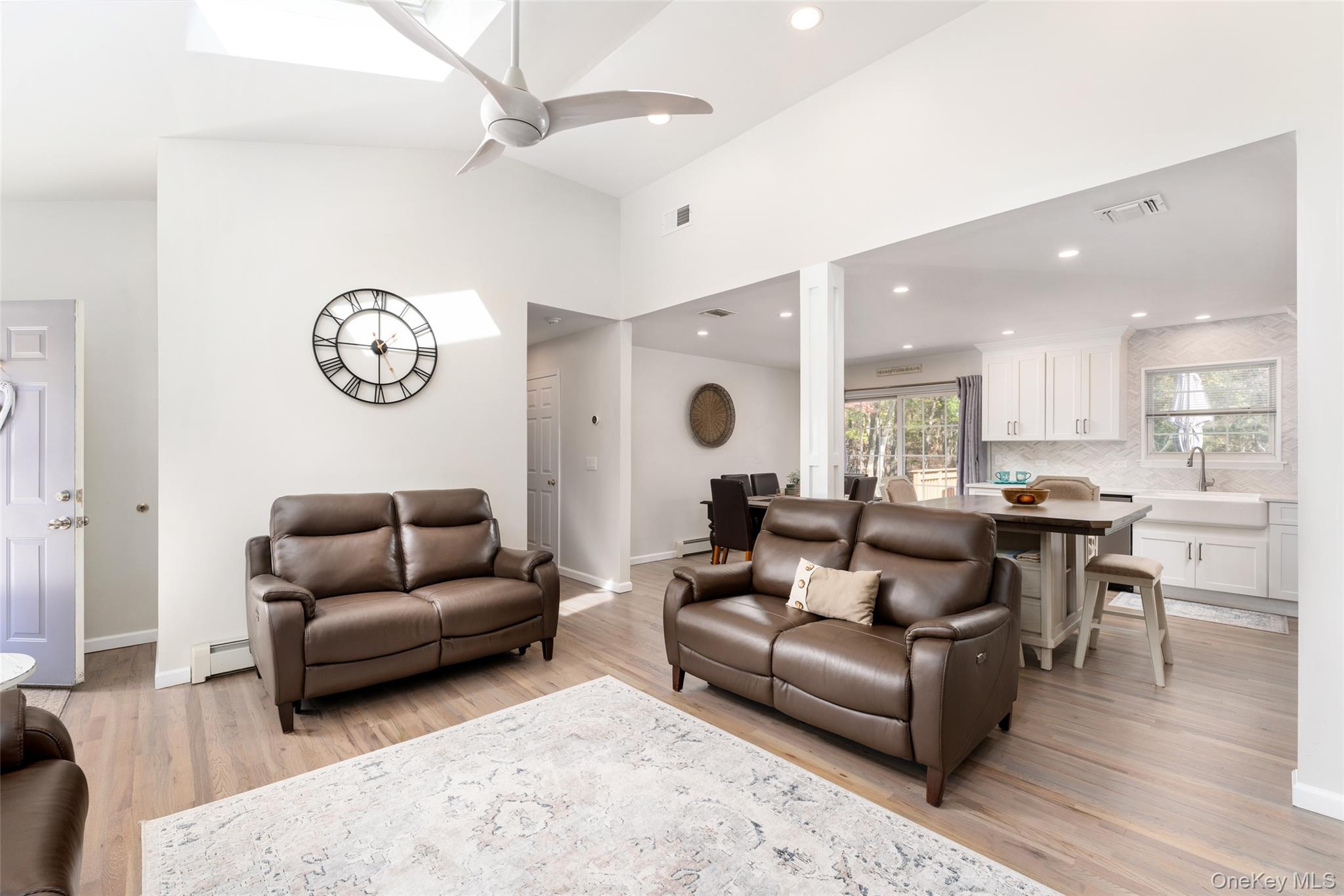 Ideally situated in the heart of Hampton Bays, just one block from the sandy shores of East Landing Lane Beach, this impeccably maintained residence offers the quintessential Hamptons lifestyle. Recently renovated throughout, the home features an open and airy floor plan with vaulted ceilings and a chef’s kitchen outfitted with premium stainless steel appliances. The newly designed great room centers around a resurfaced fireplace, framed by custom built-in cabinetry and shelving—perfect for cozy evenings or stylish entertaining. The primary suite includes a beautifully updated en-suite bath, while two additional bedrooms share a second fully renovated bathroom, ideal for family and guests. The finished lower level offers a spacious recreation room, a large office, and a convenient kitchenette, providing ample space for work and play. Step outside to an expansive deck surrounded by lush landscaping, including specimen trees and curated plantings. After a day at the beach, enjoy the convenience of a private outdoor shower. Centrally located near renowned Hamptons restaurants, bay and ocean beaches, this exceptional property is a rare find—and it won’t last long.