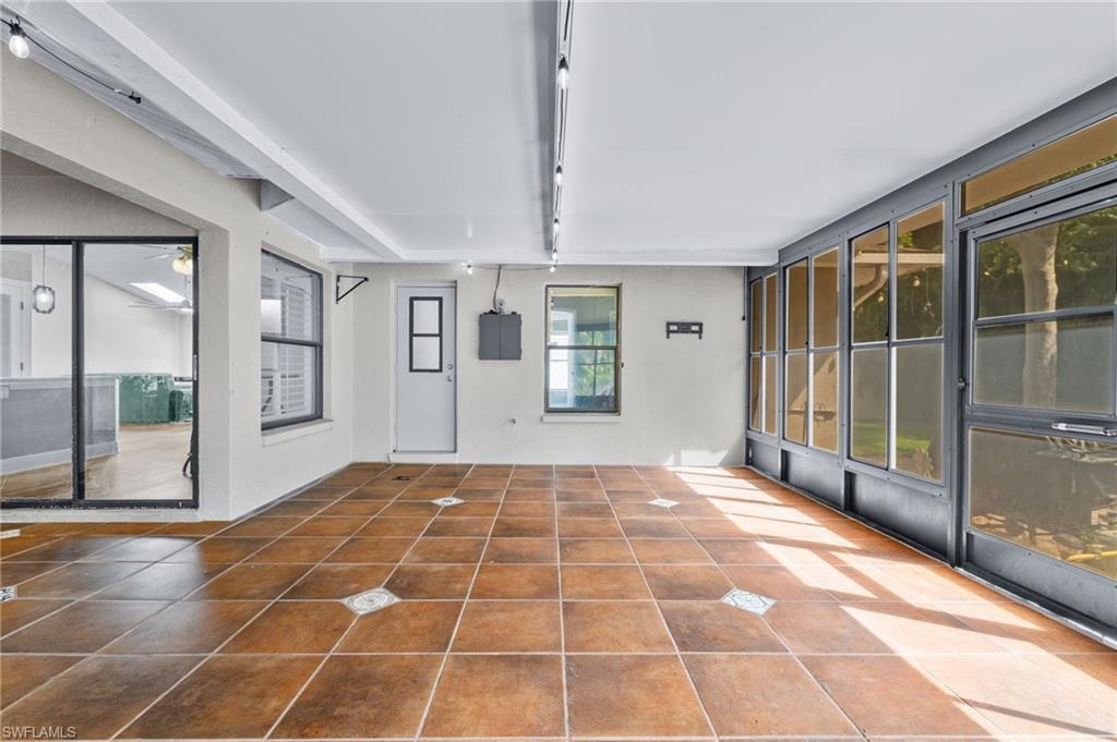 SWIM SPA – ENCLOSED LANAI – REMODELED HOME! This beautifully updated 4-bedroom, 2-bathroom home in Southwest Cape Coral combines style, comfort, and function, featuring a transformative swim spa, large enclosed lanai, and high-end stained knotty wood–accented ceilings. With 2, 196 square feet of living space and a spacious fenced yard, there’s plenty of room for entertaining, relaxing, or enjoying outdoor activities. Step inside to find a thoughtfully remodeled interior that includes a totally updated kitchen with shaker-style cabinets, quartz countertops and backsplash, new stainless steel appliances, and a pass-through window to the lanai—perfect for gatherings and family meals. The primary bathroom is beautifully designed and wheelchair accessible, featuring a large tiled shower with a built-in seat. Gorgeous luxury vinyl plank, tile, and wood flooring run throughout the home, enhancing its warm, modern appeal. The swim spa turns your backyard into a private oasis—ideal for both relaxation and fitness, offering the benefits of a pool and a hot tub in one. With a massive enclosed lanai, this home is built for year-round Florida living. Located in the desirable Southwest Cape Coral community, you’ll enjoy easy access to shopping, dining, parks, marinas, and top-rated schools, all just minutes away. Known for its beautiful canals, peaceful neighborhoods, and growing local amenities, this area offers the perfect balance of convenience and coastal charm. Best of all, this home was not affected by Hurricane Ian and had no flooding or wind damage. Schedule your showing today and experience the best of Southwest Cape Coral living! THIS PROPERTY QUALIFIES FOR A 1% LENDER INCENTIVE IF USING PREFERRED LENDER, INQUIRE FOR MORE DETAILS** Renderings that showcase furniture have been virtually staged