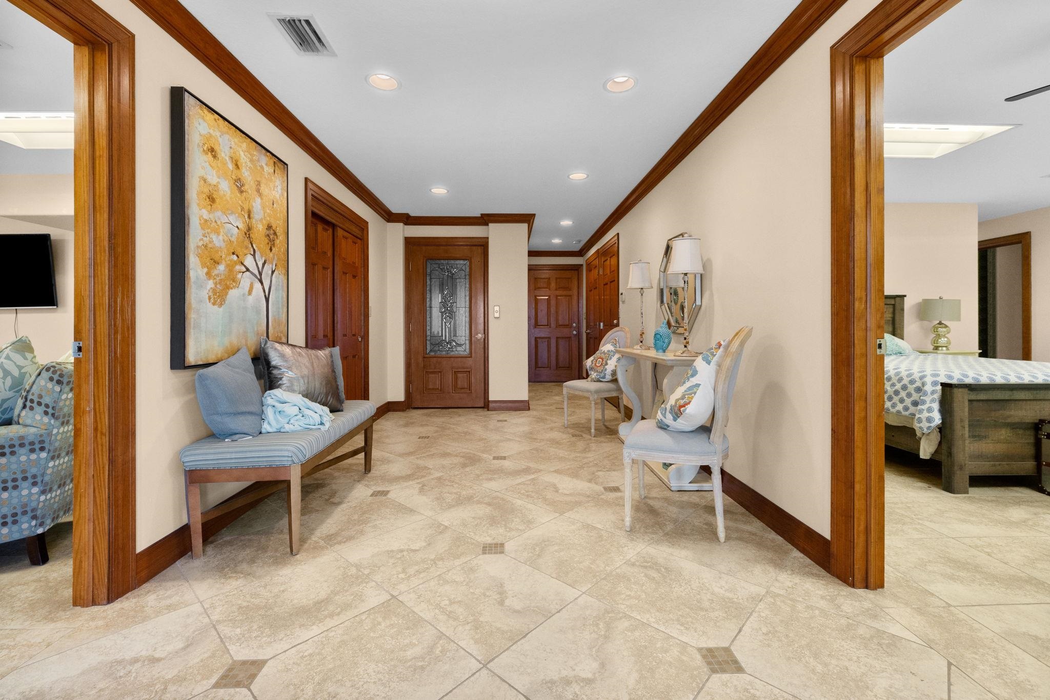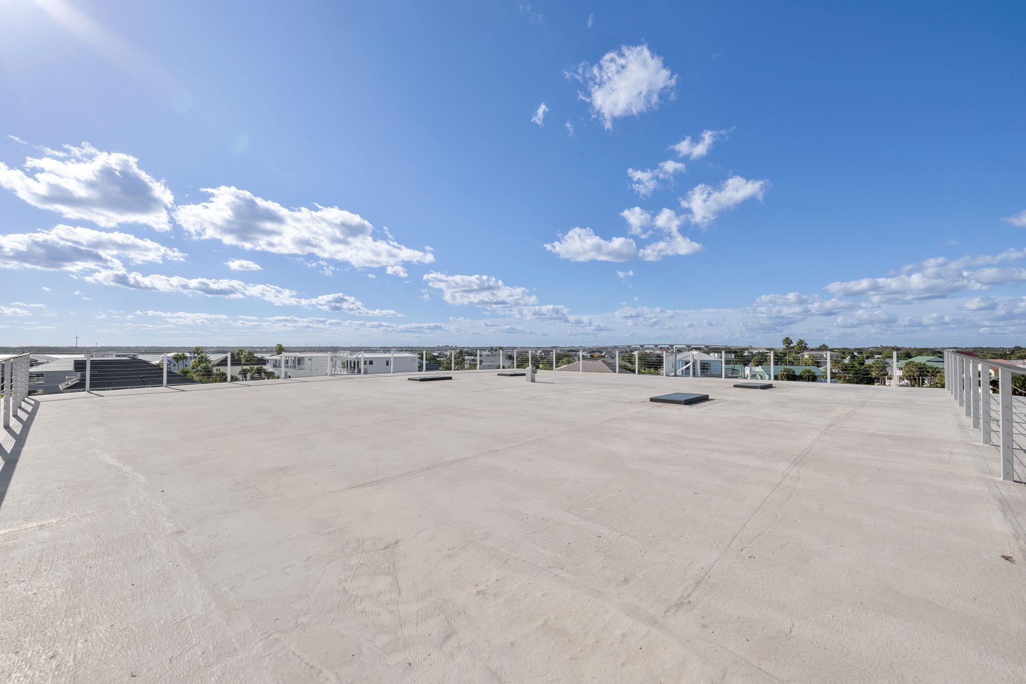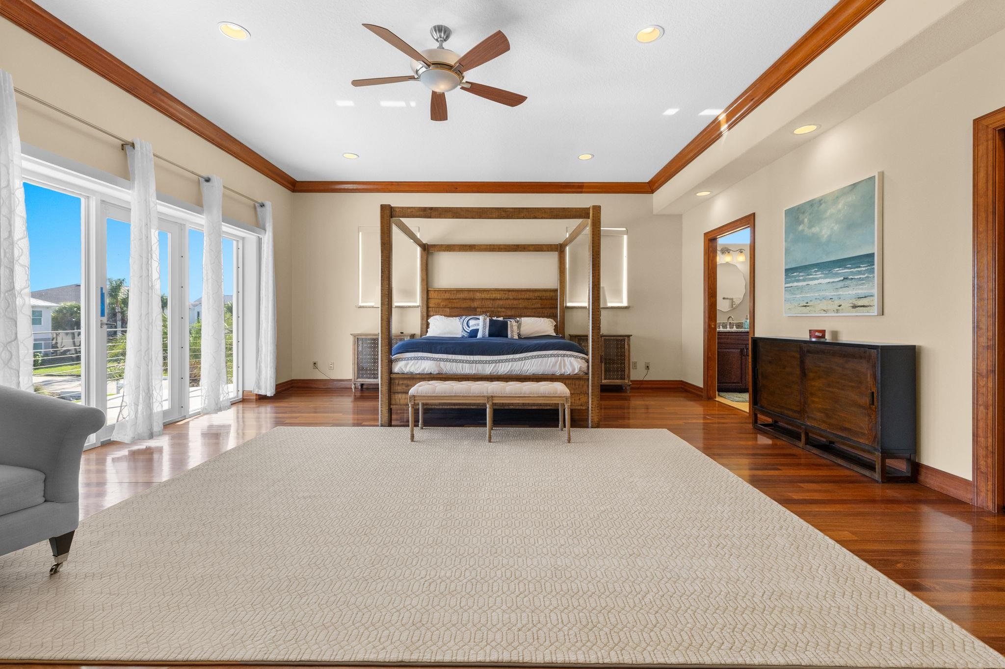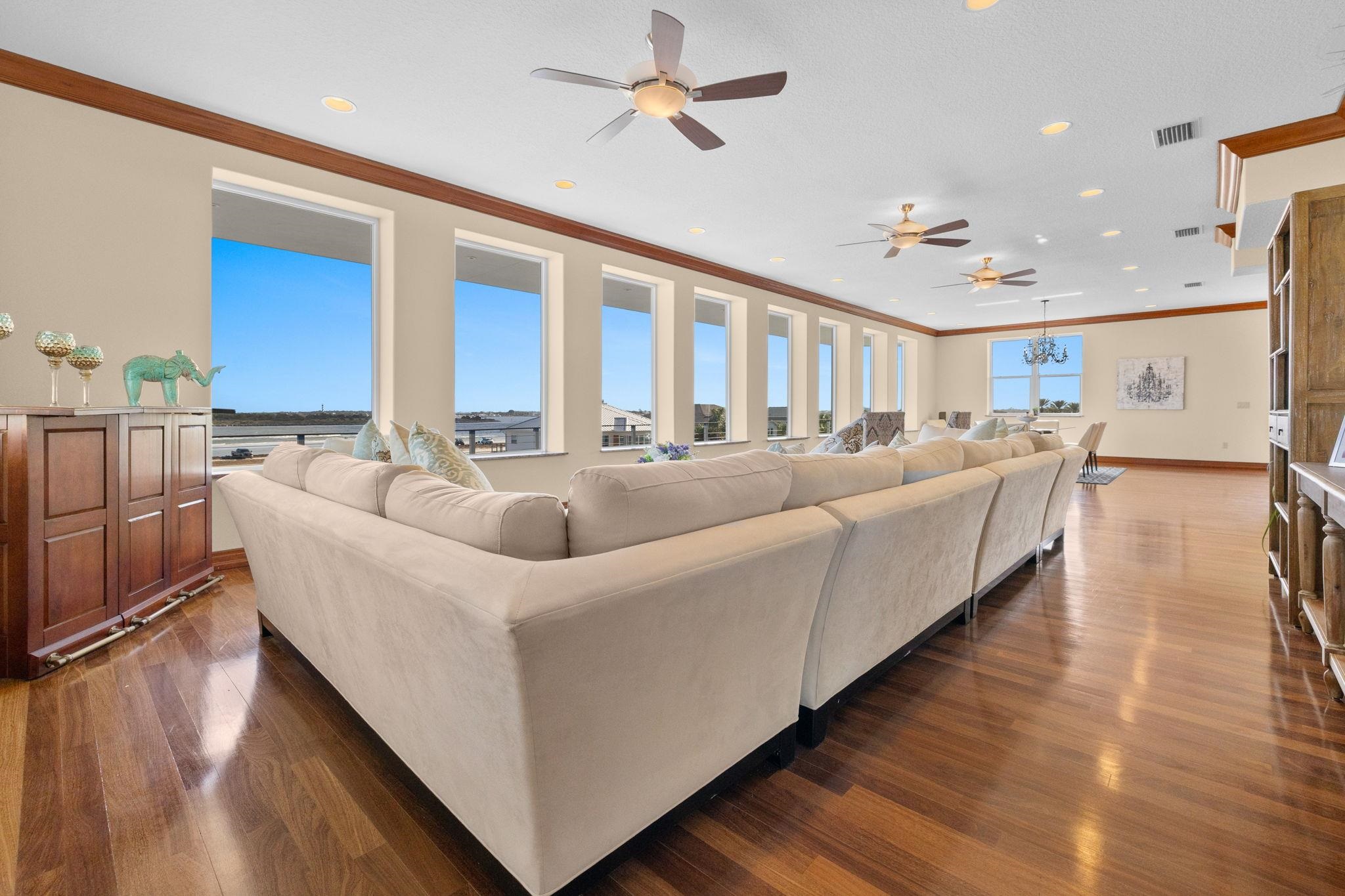 Beach front living at it's finest! 360 views of the ocean, intracoastal waterway and historic downtown views. This home stands as a testament to elegance. Stone façade and wood overhang greet you as you enter the winding paver stone wrap around driveway with 4 car tandem garage. Mahogany wood leaded glass door welcomes guests with the inviting embrace of a sunlit entry foyer. Tiled floors stretch out beneath your feet, leading the way into a spacious guest suite complete with attached bathroom and full kitchen. A second room on the first floor ideal for a home office or theater off the foyer finishes the first level. The hardwood stairs and wrought iron bannisters take you to the second story and four additional suites. Four bedrooms with en-suite bathrooms and new energy efficent doors with full side windows for easy access to the wrap around balcony from anywhere on the second floor, allowing copious amounts of sunlight to embrace the rooms. The guest suites include two closets each and the two oceanfront primary suites include massive room size walk in closets. Jetted bath tubs, showers with river rock floors with double vanities compliment the ocean view twin suites. Central vacuum system and intercom in every room of the home. Full size elevator makes traversing the different levels effortless. Heading up to the third floor you are welcomed to the main living area with oversized custom windows that flood the space with direct light framing picturesque views of the surrounding ocean and beach. A full library with built-ins and high end surround sound system make the perfect theatre room or just to project music throughout the entire home. A chefs dream kitchen features two Maytag refrigerators, 2 dishwashers, 2 ranges, 3 ovens, a bread warmer and trash compactor. a 26 foot long wet bar or butlers service area. 30 foot Walk in Pantry with wall to wall cabinets for storage and two additional full size freezers sit directly behind the kitchen and extended wet bar. A spiral stair case leads to an additional 1500sq ft. rooftop perfect for enjoying the scenic views of historic Saint Augustine, intracoastal waterway and ocean. Electric already on the rooftop to turn this outdoor area into the perfect entertaining space on the highest lot and tallest home in Porpoise Point!
