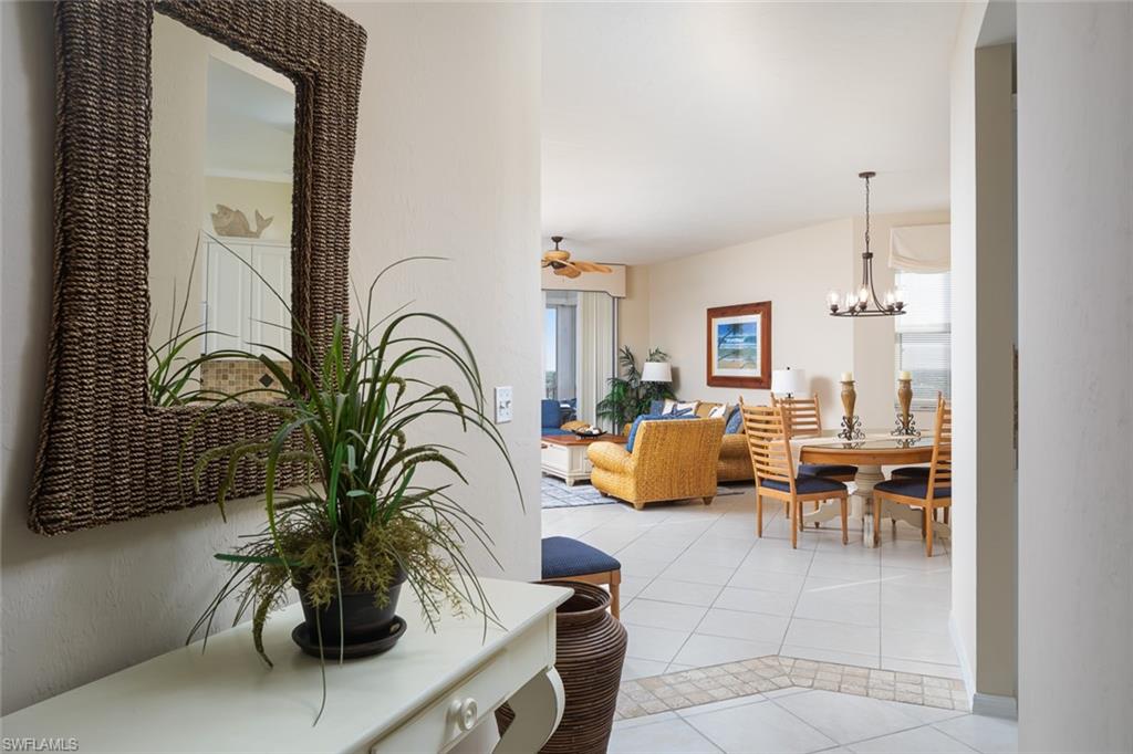 This expansive 8th-floor end-unit condominium offers breathtaking Gulf and Bay views and nearly 2, 000 square feet of beautifully designed living space. Featuring three bedrooms and two-and-a-half baths, the open, airy layout includes an additional sitting area off the kitchen and a generously sized lanai—perfect for relaxing after a day at the beach and soaking in spectacular sunsets. The main living areas have been freshly painted, enhancing the natural light that pours in from the extra side windows unique to this end unit. Tile flooring runs throughout, and the tropical island-style furnishings create a relaxing coastal ambiance. The primary bathroom shower has been updated with new decorative tile, adding a stylish, modern touch. Interior finishes reflect the colors of the ocean and sand, with crisp blue accents and beachy décor that make you feel instantly at home. This residence has been meticulously maintained and comes fully furnished—just bring your suitcase and flip-flops. Whether you're looking for a vacation escape or a rental-ready investment, this condo offers flexibility, comfort, and undeniable charm. It also includes a prime second-level parking space (G-220) and a private, secure storage room. Regatta offers some of the best value along Vanderbilt Beach and is notably one of the rare pet-friendly condominiums, welcoming your furry companions into this upscale abode. For part-time residents, the flexible rental policy helps ease expenses, and the property has a long history of consistent rental income. Residents enjoy a host of amenities, including a tropical waterfall pool, relaxation pool, boat docks, fitness rooms, grilling areas, and more. Located just 500 steps from Vanderbilt Beach and steps away from the renowned Ritz Carlton, this residence is close to upscale attractions such as Mercato, Pavilion, and Waterside Shops. Indulge in designer boutiques, art galleries, diverse dining options, a cinema, and more. Tennis and pickleball courts are planned for the community park just up the street, enhancing the recreational offerings of this coastal retreat. Regatta is a true waterfront haven—pet-friendly, secure, well maintained, steps from the beach, and part of a thriving boating community. RELAX AND ENJOY THE GOOD LIFE!