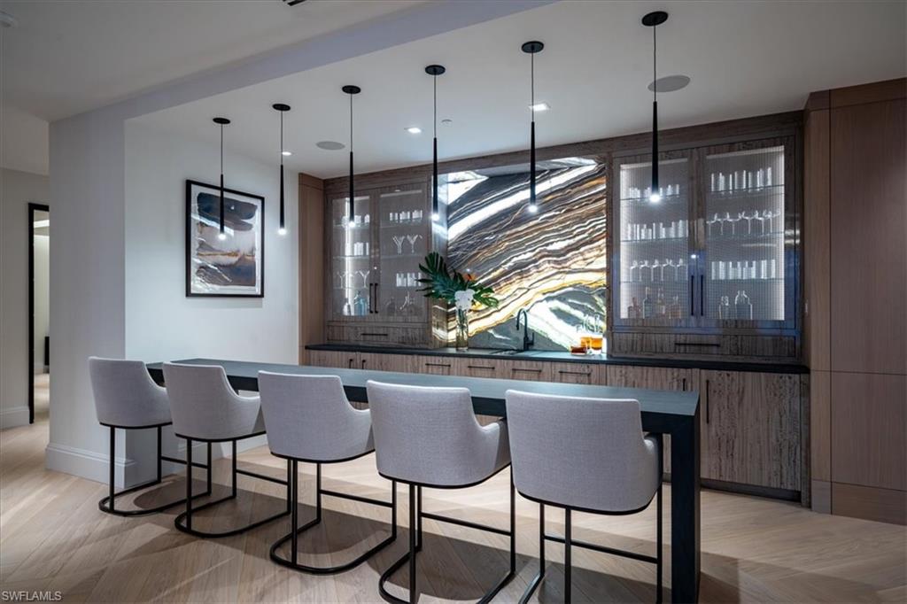 with unique features such as back-lit onyx entertainment and wine bars, a temperature-controlled wine display room, herringbone oak flooring,