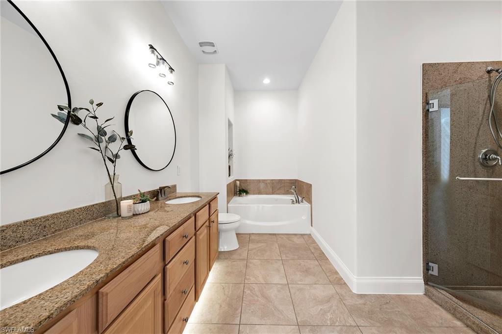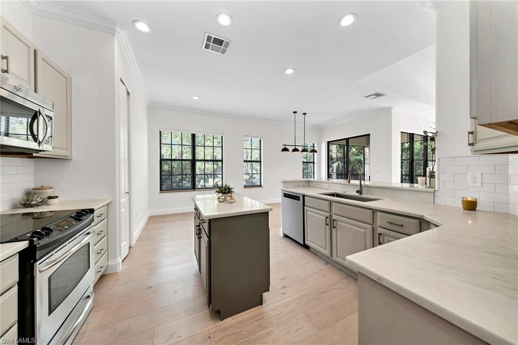 Welcome to Gusto Bella Vita, a beautiful community that combines luxury and convenience in a serene setting. This sought-after second-floor unit is a true gem, featuring vaulted ceilings and an open-concept layout that invites natural light throughout. Freshly painted and adorned with stylish new lighting and ceiling fans, this three-bedroom, two-bathroom residence is designed for comfortable living. The state-of-the-art kitchen boasts top-of-the-line stainless steel appliances and elegant granite countertops, seamlessly connecting to the spacious living and dining areas with 10' ceilings. Enjoy tranquil mornings from the screened lanai, where you can take in breathtaking preserve views through large picture windows facing Northeast. The master bedroom is a sanctuary, featuring generous walk-in closets and a large bathroom equipped with a tub and a walk-in shower. The two additional bedrooms, conveniently located near the entry, offer ample space for family or guests. Additional home highlights include exquisite wood flooring, crown molding, and an attached one-car garage for extra storage. As a resident of Bella Vita, you'll also have access to exceptional community amenities, including a clubhouse with a kitchen, an outdoor pool, a spa, and a fitness center. Ideally located off Pine Ridge Road, this community is just a few minutes away from various restaurants, shopping options, Hospitals, Publix, I-75, and Naples' pristine white sand beaches. Take your chance to experience upscale living in this stunning property in the heart of Naples.