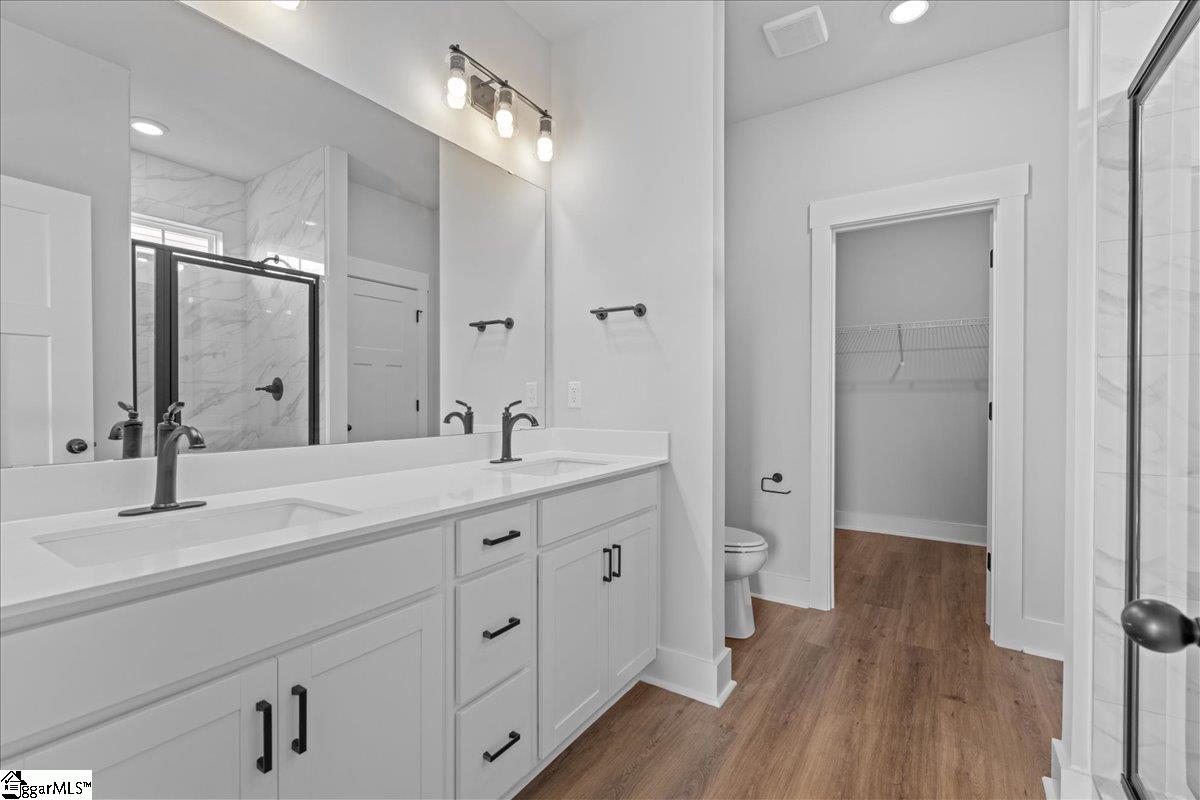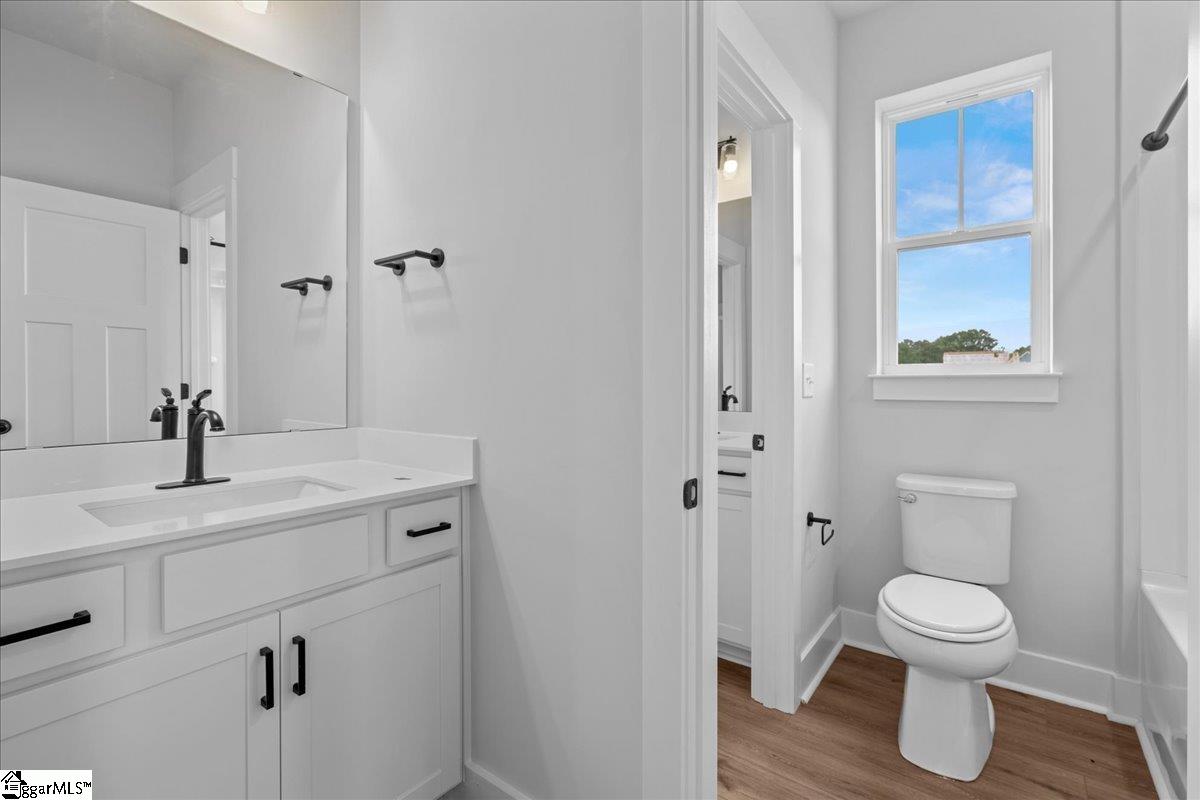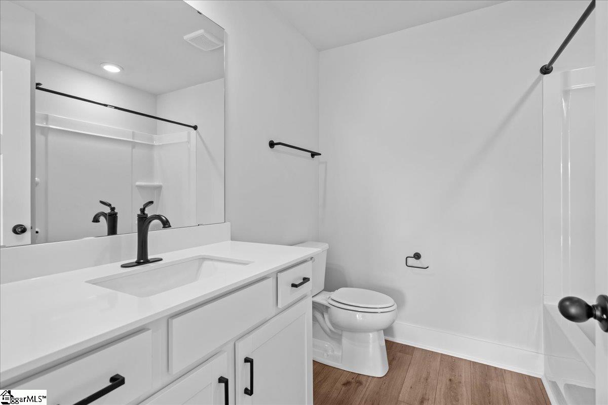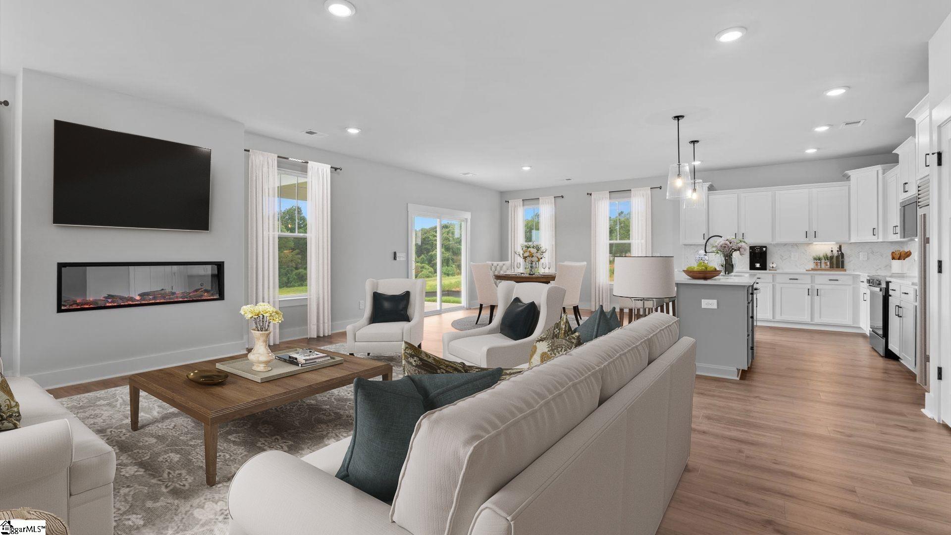Home is Move in Ready! Welcome to Pinebrook! THE ONLY HOMES ON HALF ACRE PLUS HOMESITES IN WOODRUFF, SC WITH PRIME FEATURES AND BASEMENT OPTIONS. This Craftsman style Wakefield home with over 2500 square feet of living space is perfect for those wanting main floor living. Upon entering the home from your front porch there is a spacious entry hall with two bedrooms and a full bath with two separate vanities that is adjacent to the foyer. Continuing down the hall you enter your open concept kitchen and living room. Features of the kitchen include beautiful white cabinetry with grey accent cabinetry on the island, white Quartz countertops, large center island with sink for additional prep space and seating, tiled backsplash, under cabinet lighting, and stainless steel electric appliances. The living room with its high ceilings and tall windows give the area lots of natural light and there is even a cozy electric fireplace. The Primary Suite is situated off the living room and features double sinks, an expansive walk in closet and beautiful tiled shower with built in seat. The laundry room and a powder room complete the main level. Upstairs there is a fourth bedroom with walk in closet and full bath. Smart home technology, energy-efficient design, and a dedicated local warranty team ensure long-term comfort and convenience. Premier living at Pinebrook, a captivating new home community centrally located between Spartanburg, SC and Woodruff, SC. Our thoughtfully designed single-family homes cater to diverse lifestyles with both main-level and second-level primary suites, offering flexibility and convenience. Experience the charm of classic architecture with our stunning craftsman-style exteriors featuring James Hardie ColorPlus Siding. Settled in a serene location, these estate homes sit on private half acre plus homesites. Offering select basement homesites and three car garages. Located near Three Pines Country Club, Interstate 85, and Interstate 26, Pinebrook offers the perfect blend of tranquility and accessibility. Pinebrook is a great opportunity in a premier location. Come by today for your personal tour and make Pinebrook your new home. See Sales Agent for additional pricing information.