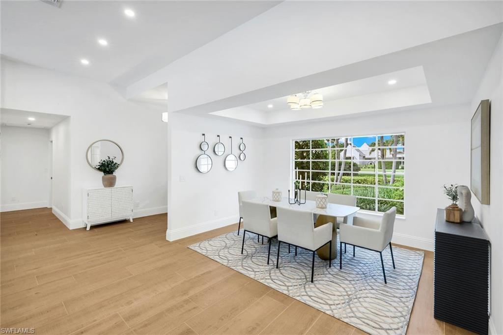 Meticulously renovated and reimagined over the past 18 months, this Quail Creek estate home greets you with a spectacular open floorplan overlooking stunning lake and golf course views of the Creek Course’s 11th hole. The completely reengineered layout centers around an expansive great room with ceilings raised by three feet and what can only be described as the ultimate chef’s kitchen, boasting the latest and most cutting edge commercial grade appliances, including an oversized 48” wide refrigerator and freezer and an impressive six burner double oven range powered by newly installed natural gas. An 11-foot waterfall edge Quartz island, also integrated into the backsplash, serves as the centerpiece for everyday living and entertainment. Luxurious 60” x 12” natural wood look tile flows throughout the home, uniting living spaces with warmth and elegance. Three spacious en suite bedrooms plus a fourth bedroom with an adjacent full bath provide private and comfortable accommodations while a converted flex space overlooking the pool, lake, and backyard is perfect for a home office or conversation room. Outside, the home continues to impress with dueling covered lanai spaces, swimming pool, spa, and a recently replaced screen enclosure. The deep and versatile garage with a new Epoxy floor is thoughtfully designed for two cars, two golf carts, storage cabinets, and a full workstation. Freshly painted inside and out and complemented by two brand new A/C units and a new front door, the home exudes modern elegance at every turn. Buy into one of the most coveted communities in Naples, where property values continue to rise and optional social and golf memberships to Quail Creek Country Club are available with NO WAITLIST.