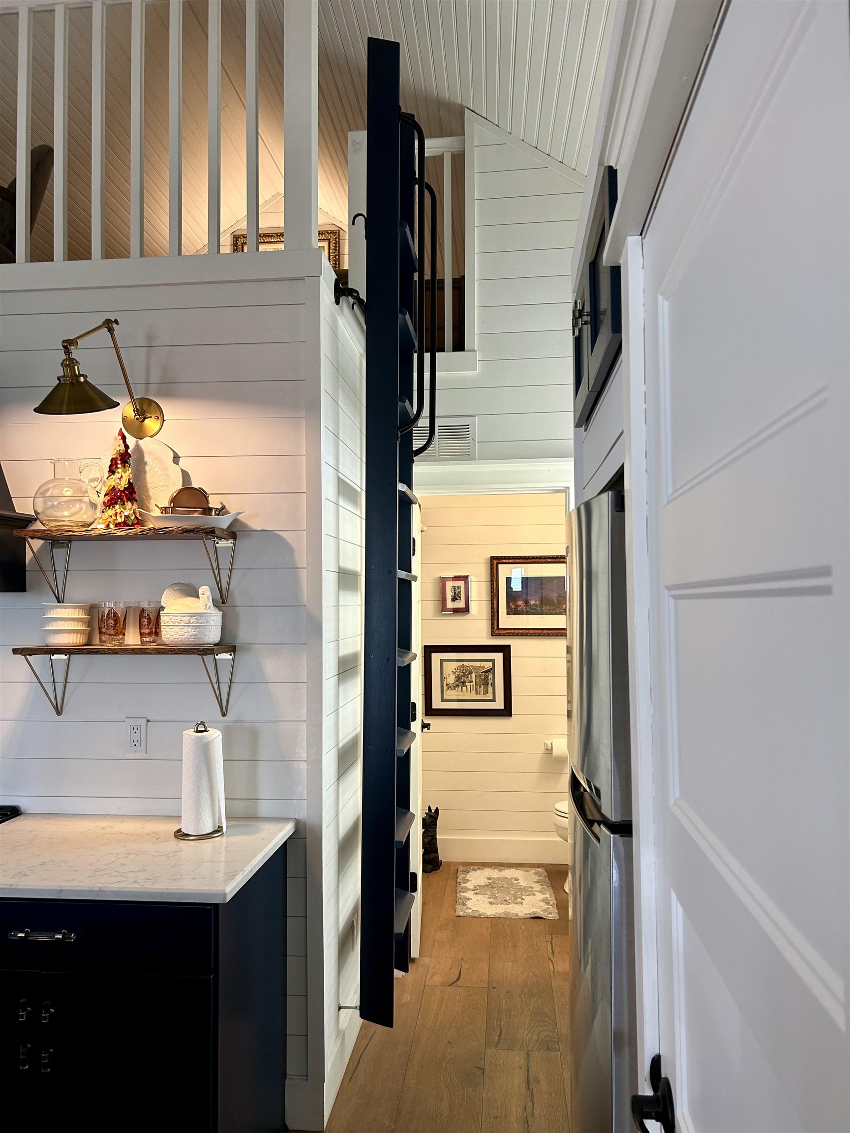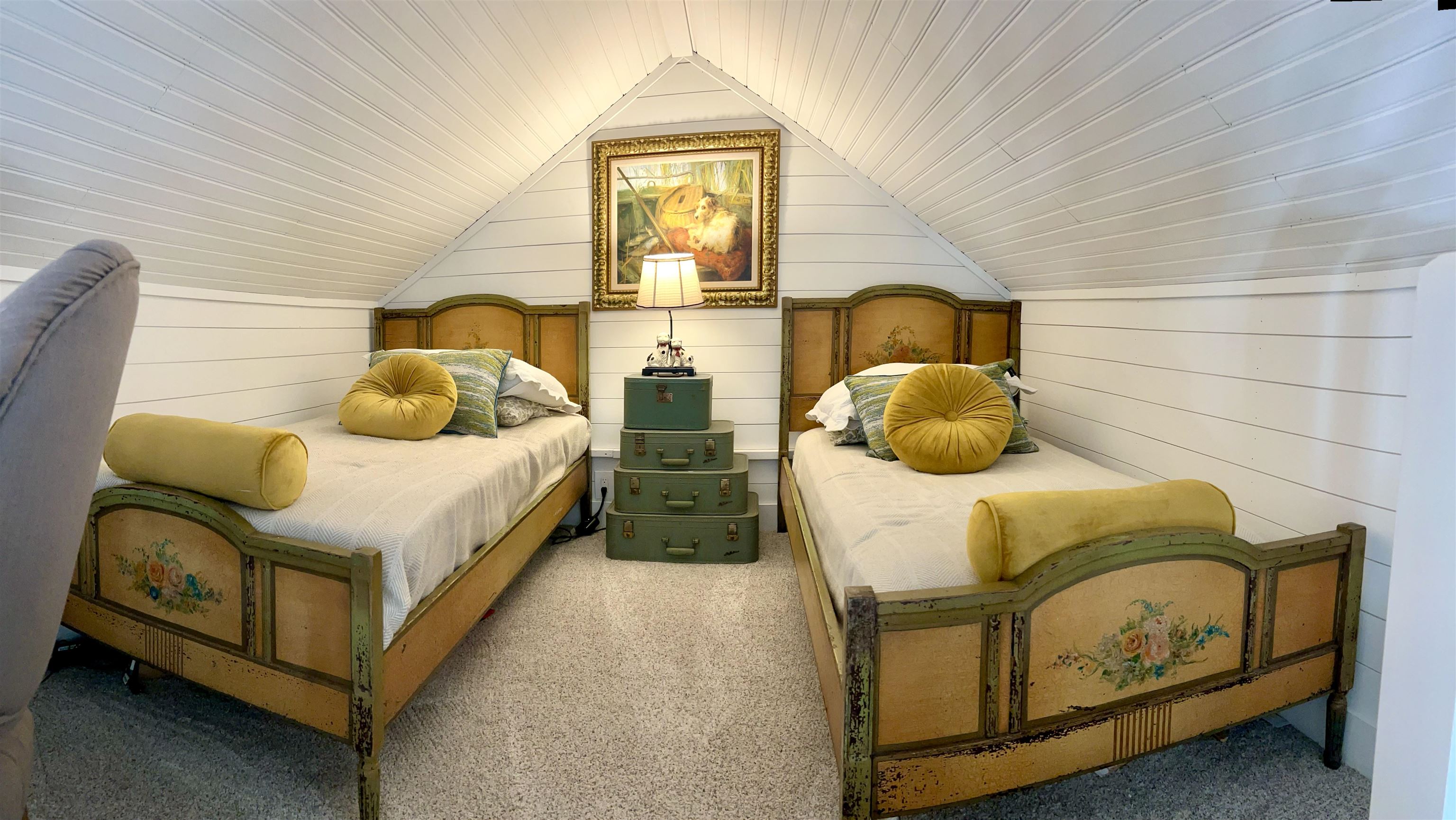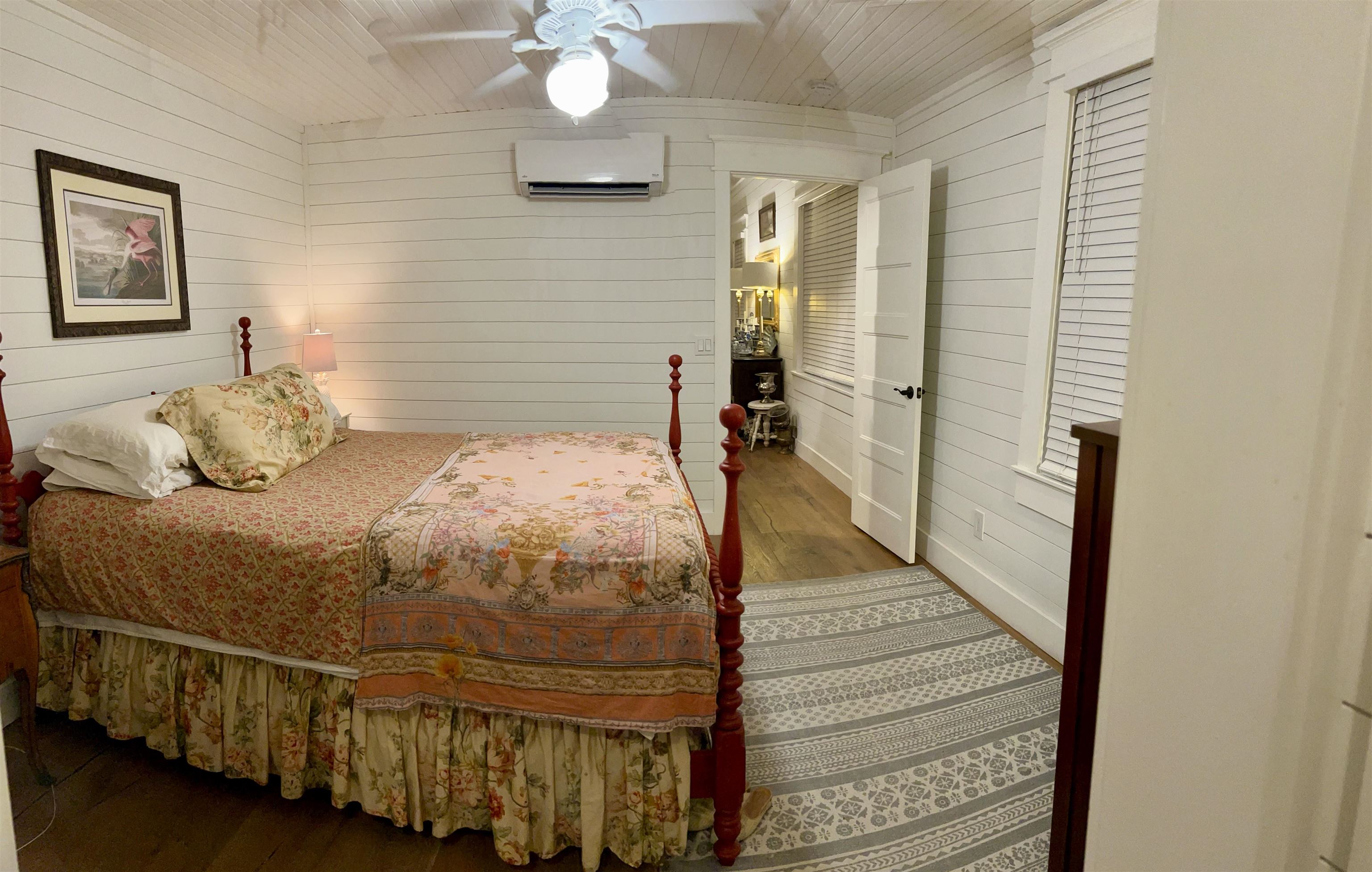 Zoning permits week long short term rental. Furnishings available. Step back in time with all the comforts of today in this beautifully restored 1890s “Olde Florida” bungalow, perfectly situated in the heart of historic downtown St Augustine. Completely rebuilt and reimagined, this home captures timeless charm while offering modern luxury. The thoughtfully designed floor plan highlights the best of both worlds - classic craftsmanship and contemporary sophistication. The chef’s kitchen sits at the heart of the home, featuring custom blue cabinetry, quartz countertops, glass hardware, and a spacious island ideal for entertaining. Warm wood floors flow seamlessly throughout, complementing, vaulted ceilings, exposed original beams, and abundant natural light enhanced by custom fixtures. The second floor, accessed via a custom crafted ladder, serves as a versatile guest suite or private office, providing a cozy retreat with architectural character. Bathrooms showcase pedestal sinks, Hinkley lighting, marble flooring, and imported stained glass windows from London, creating a spa like experience with a touch of Old World elegance. Every wall is finished in shiplap, accented by craftsman style trim around doors and windows. Meticulously rebuilt in 2019, the home boasts modern efficiency throughout: a mini split HVAC system, spray foam insulation, fully rewired electrical (including a new panel with generator compatibility ), all new plumbing, and a secondary bath edition. Exterior highlights include a new metal roof, Trex Transcend materials on the front porch with swing, and concrete hardy siding at the rear for lasting durability. Outdoor, the private patio garden invite you to relax amid a vintage brick courtyard and artisan fencing. -a peaceful escape within the city’s historic core. From the front porch, you can sip your morning coffee while admiring views of both the Mission Nombre de Dios cross and the Castillo de San Marcos fort. Located just steps from downtown shops, waterfront dining, and the cities iconic attractions, this property is a lifestyle like no other. St Augustine beaches, vibrant, festivals, and world class fishing are minutes away. During the holidays, enjoy strolling into town to experience the dazzling nights of light celebration. Blending 19th-century charm with 21st-century comfort, this 1890s bungalow stands as a rare gem in one of Florida’s most beloved historic districts.