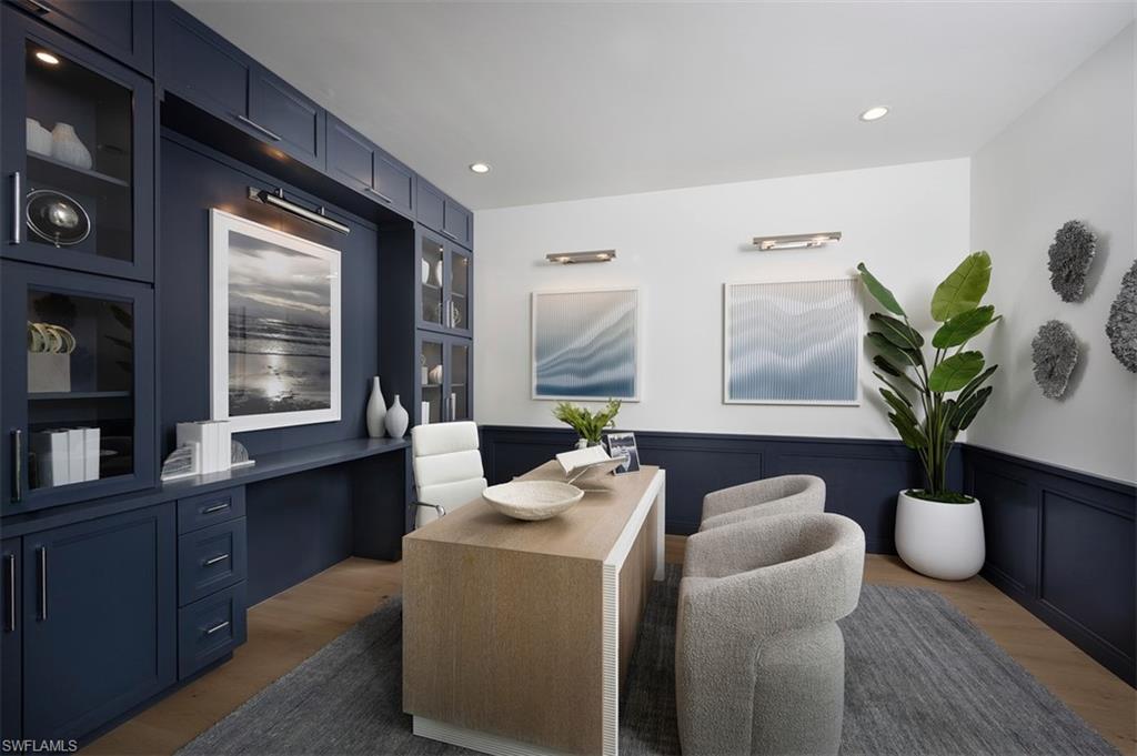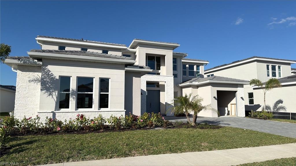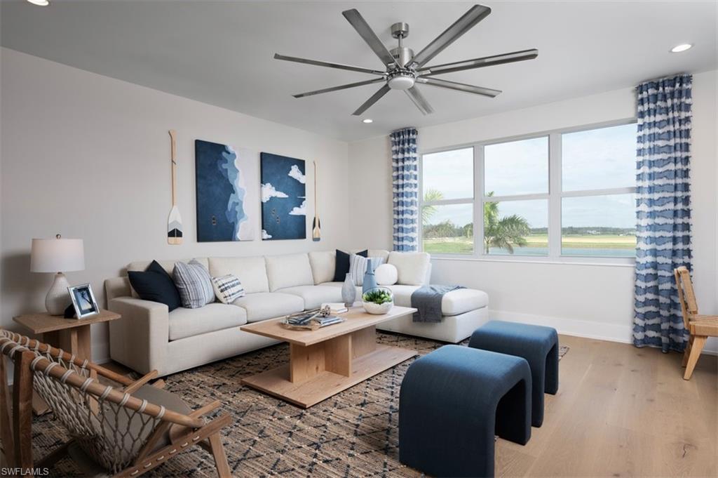 Discover the ultimate in luxury waterfront living with this brand-new, beautifully designed 2-story home in the heart of South Naples! Showcasing over 4, 061 square feet of refined living space, this stunning residence captures the essence of Florida elegance and indoor-outdoor harmony. Step outside to your own private oasis featuring a sparkling pool and spa under a screened enclosure, an expansive covered lanai, and a full cabana bathroom — all overlooking serene waterfront views. The oversized backyard and seamless outdoor living design create the perfect setting for entertaining guests, hosting family gatherings, or simply unwinding in your personal paradise surrounded by tropical tranquility. Inside, the open-concept floor plan welcomes you with expansive windows that frame beautiful water views throughout the main living areas, filling the home with light and sophistication. The gourmet kitchen is a showpiece, equipped with premium Jennair appliances, a natural gas cooktop with vented hood, an elegant butler’s pantry, and a large quartz-topped center island ideal for culinary creativity and conversation. Double-stacked wood cabinetry adds drama and functionality to this culinary haven. The primary suite is a true retreat, offering peaceful water views and a spa-inspired bathroom with a luxurious soaking tub, a spacious dual-head walk-in shower, double vanities with quartz countertops, and two expansive walk-in closets. Upstairs, three additional bedrooms each feature their own private en suite baths, while a generous loft provides flexible space perfect for a media room, home office, or relaxation area. Crafted with meticulous attention to detail, this home features impact-resistant windows and doors, the latest building codes, and a builder warranty for your peace of mind. Residents enjoy an exceptional resort-style amenity center complete with a resort pool, clubhouse, fitness center, tennis and pickleball courts, putting green, and a dedicated lifestyle director curating engaging events throughout the year. Perfectly located near Fifth Avenue South, white-sand Gulf beaches, and the vibrant dining and nightlife of Marco Island, this extraordinary South Naples residence offers the perfect blend of luxury, comfort, and timeless waterfront living — a true masterpiece designed to impress and inspire. Please see MLS supplements for floor plan layout/interior design selections. Ask your sales consultant about our exclusive rate buydown program and how it can help lower your monthly payments! Lot 189.