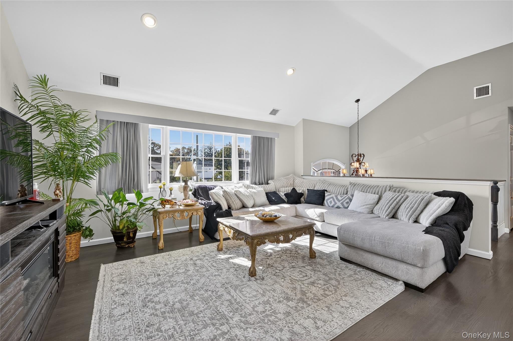 A unique home in the East Meadow Schools featuring three full floors of living space, 2508 square feet without the basement, 1 car attached garage, 2 zone gas heat, 2 zone central air, hardwood floors, Large room throughout the house, open floor plan, Open kitchen looking out to the formal dining room and living room , there are two primary bedrooms in this house with private bathrooms ( jacuzzi) 3 to 4 additional bedrooms, 5 fans throughout the house, There are solar panels on this home and they are owned so electric bills will be lower. This house could be a possible mother daughter with proper permits. . a must see !!!