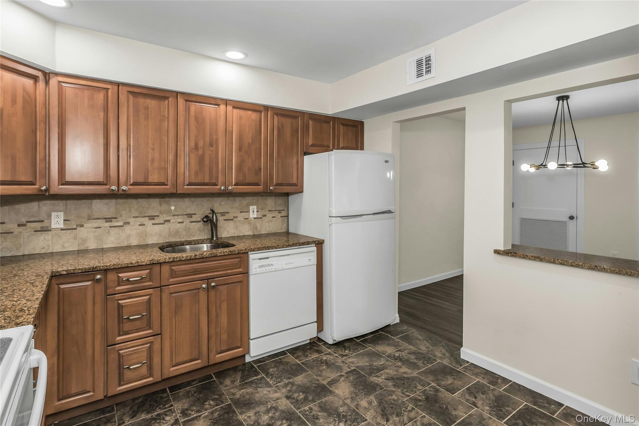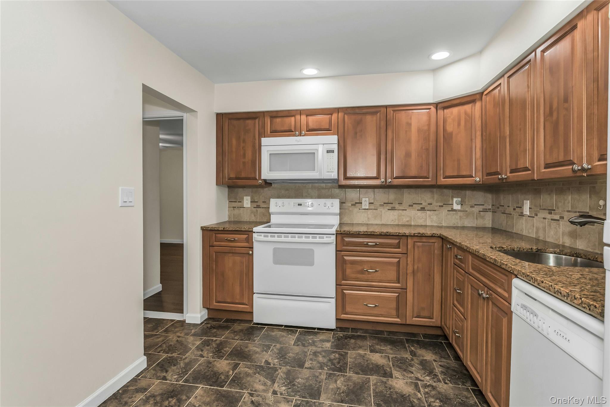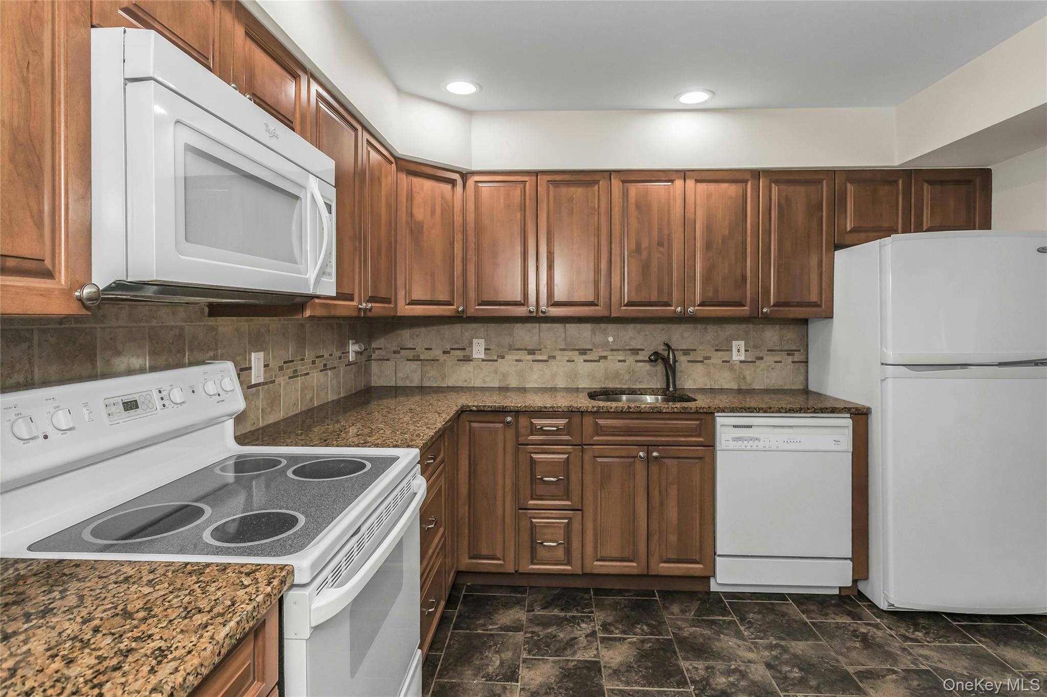 Welcome to The Villas in Plainview! A beautifully maintained community offering resort-style amenities and convenient living! This spacious condo features a Primary bedroom with an updated Full Bath and Walk-in closet, plus a second Bedroom and another Full bath. The updated Eat-in kitchen boasts Granite countertops, Soft-close Cabinetry, and flows seamlessly into the bright Dining/Living area with sliders leading to a Private Patio. Additional highlights include laminate flooring & in-unit washer/dryer (only a few years old), a newer water heater (2 years), ample closet space, and a large storage closet under the stairs. Enjoy all that The Villas has to offer—clubhouse, fitness center, basketball, pickleball & tennis courts, playground, pool, and plenty of parking. A perfect blend of comfort, style, and community—move right in and start living the good life!