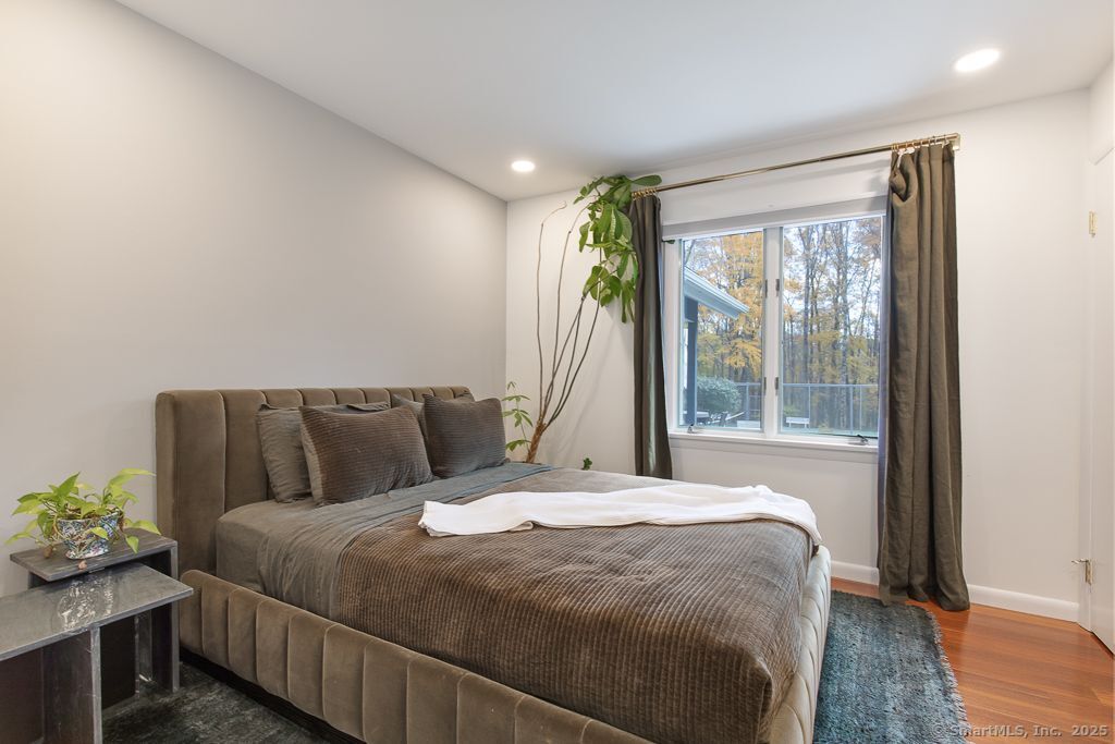 Bring the country club home with breathtaking gardens surrounding this magnificent contemporary California ranch, perfectly set at the end of a quiet cul-de-sac in one of Woodbridge's most desirable neighborhoods. You'd never guess you were just minutes from downtown New Haven while tucked away in this private nature lover's retreat backing up to the Wepawaug Falls-a series of cascading waterfalls owned by the Woodbridge Land Trust. Relax on the expansive deck and enjoy the tranquil sound of the backyard pond and waterfall. Take a dip in the heated gunite pool with spa or host a friendly game on your private tennis/sports court. Surround sound inside and out enhances every gathering. You simply won't find another property like this in Woodbridge! Step inside and be wowed by the open, light-filled layout with vaulted ceilings, gleaming hardwood floors, and designer lighting. A welcoming foyer leads to the formal living room and a spectacular great room with custom stone fireplace and spiral staircase to an open loft. The chef's kitchen with adjoining butler's pantry opens to a spacious formal dining room. Four generous bedrooms include a primary suite with spa-like bath, abundant custom closets, and a private deck overlooking the grounds. Lower-level adds even more living space. Conveniently located close to major highways, shops, restaurants, and Yale University.