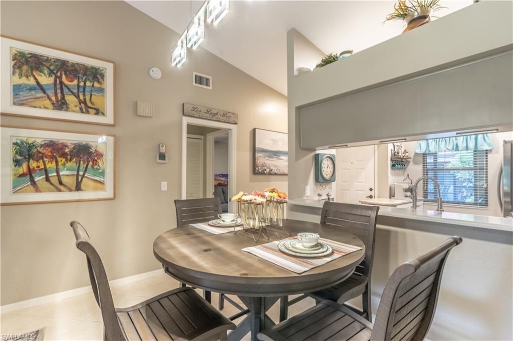 Comes with your own deeded covered parking spot with storage unit, just steps off the front of the Condo. 2 Bedroom and 2 Bath with a gorgeous Southern Exposure with a Beautiful Lake view with Lush Landscaping and well maintained yard. A Grill is allowed in the back of your property. The Pocket door for the guest room allows for a private guest suite. Primary Master bedroom suite the Bathrooms have Granite counter Tops and Dual updated vanity and shower with a new Toilet too. Guest bathroom has Granite updated Counter Tops also with a new vanity and updated tub. Beautiful Diagonal Tile throughout the home and flows beautifully as it extends to the Lanai to the Florida room. The roofs were replaced with gutters in 2022. A paver deck can be added to the rear up to 10 FEET and the width of the Condo. Brand new $ 10, 000 remodeled Kitchen with Quartz Counter Tops and Stainless Steel Appliances with beautiful stylish back splash the Bubble wall to accent the kitchen decor. New A/C- 2018, New Hot Water Heater-2025, updated plumbing, Freshly painted throughout Condo. Front Lanai is HUGE and screened in with privacy for your morning coffee or a beverage of choice in the evening. 100 Feet from the Condo is the community Pool, Sauna, Hot Tub to relax or socialize with the neighbors on any given day. Very quiet community and well kept Yard care. Just minutes to 5th Ave and the world class Beaches Naples has to offer. Great Restaurants and high-end shops just 10 minutes away. Welcome Home !
