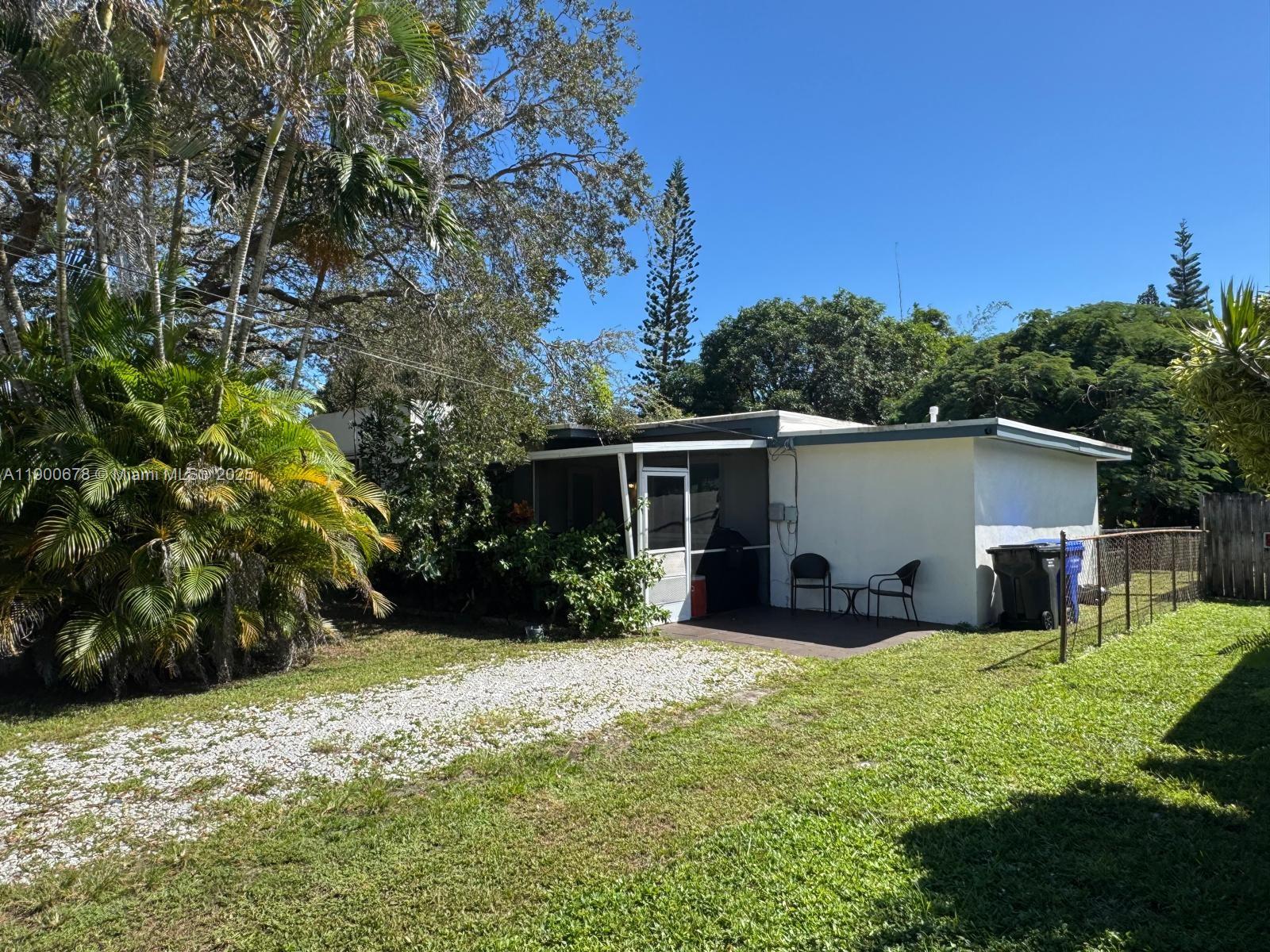 Charming 3-bedroom, 1-bath home with a separate rear unit currently used for storage, offering endless possibilities. Set on a generous 10, 500 sq ft lot at the end of a quiet cul-de-sac. Inside, natural light fills every corner, highlighting high ceilings, new baseboards, and freshly updated finishes. The kitchen features white cabinets, butcher block counters, a wall and standard oven, stainless gas stove, and double sink. Key highlights include impact windows plus accordion shutters, approx 8 yr old roof, 2022 A/C, and gas water heater. The screened porch overlooks a huge backyard with mature trees, including a mango tree. Additional perks include a spacious laundry room/pantry and transferrable PACE energy-efficient upgrades.