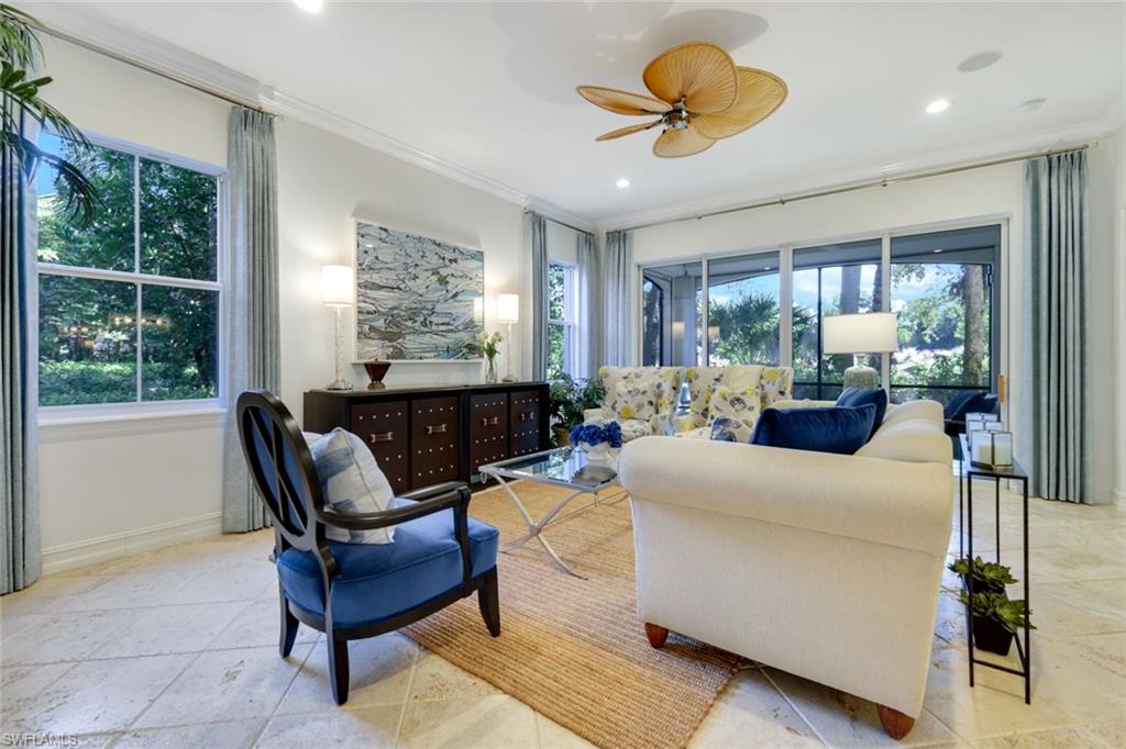 Luxury living in Castillo at Tiburon, this ground-floor end unit showcases two generous bedrooms, a comfortable den, and two full baths. This offering includes designer furnishings and a transferable Signature Membership (valued at $45K). Upon entering this impressive property, you are greeted with a cascading water feature which sets the theme for the entire interior. Relax on your private lanai while enjoying views of the legendary Gold Course of Tiburon which plays host to three separate professional tour televised golf events. This well-appointed home is a former model and features a renovated kitchen and baths, recessed lighting, surround sound system, custom closets, built in wine cooler, hurricane shutters, and an attached two car garage. The most beautiful community pool in all of Tiburon is a short stroll away and there is a convenient grilling area located just outside your door. Your Signature membership grants you access to Tiburon's 5-star amenities including golf, tennis, fitness center with classes, several dining options, the Club's award-winning pro-shop, and the neighboring Ritz-Carlton Golf Resort with The Reservoir Water Experience. This home presents an amazing opportunity for the discriminating buyer to experience the extraordinary.