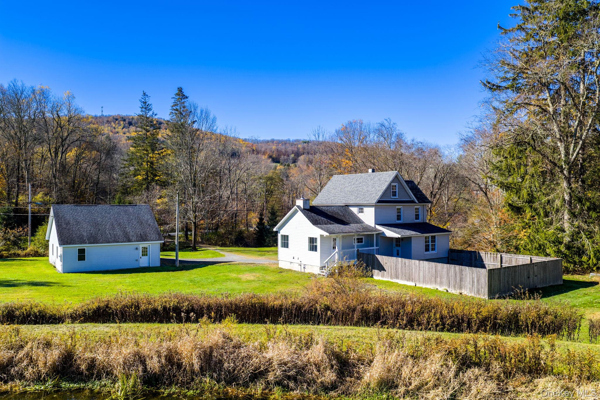 Located in North Branch, Sullivan County, NY, this charming two-bedroom, one-and-a-half-bath farmhouse sits on just over two acres of peaceful countryside. A gentle stream borders a picturesque lawn, and your closest neighbor is a tranquil pond. The perfect country setting. Inside, the living room’s beautiful fireplace brings that cozy, welcoming feel everyone loves. The spacious two-story garage offers workshop potential, and the fenced backyard is ideal for your four-legged friends. Enjoy the privacy of rural living while being just a short drive from Callicoon and Jeffersonville's shops and restaurants. Call today to plan your escape to North Branch, NY