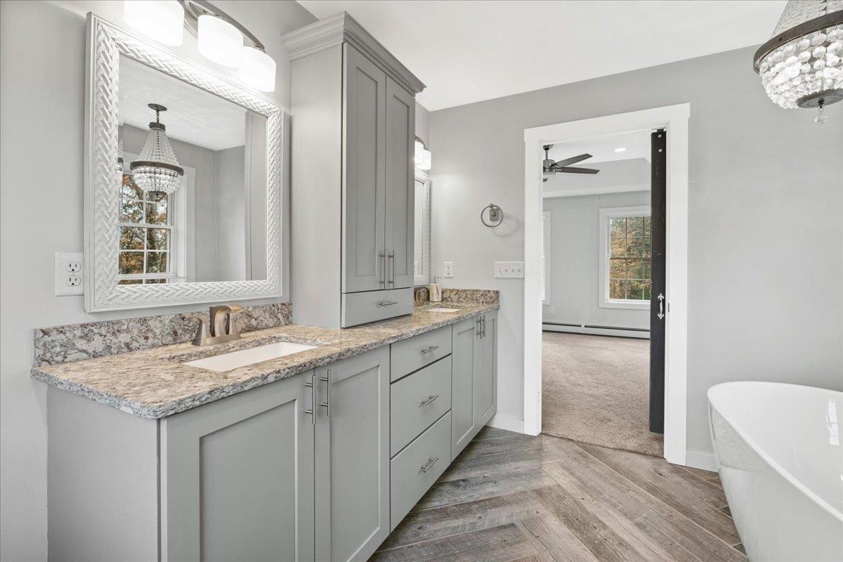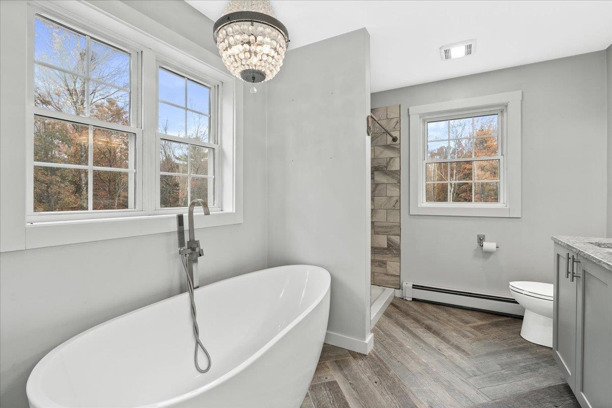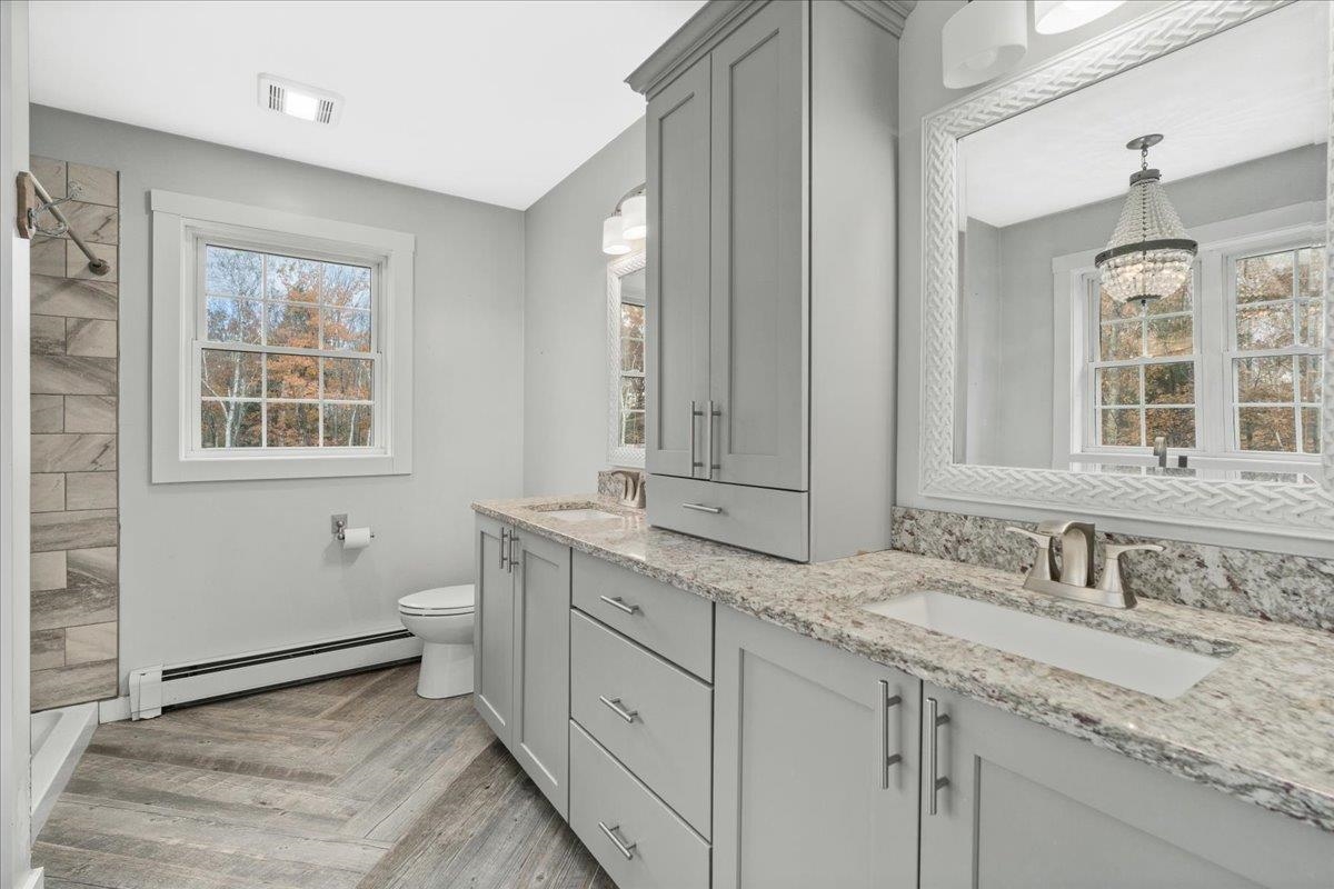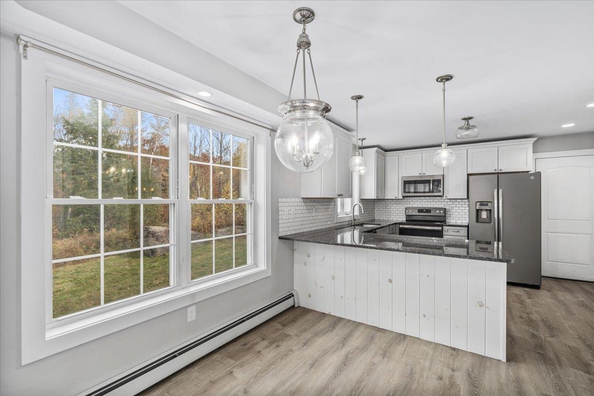 HUGE $30, 000 price reduction! Welcome to 27 Westbrook Drive — where modern comfort meets timeless charm! Built just 8 yrs ago, this better-than-new home sits proudly in one of New Ipswich’s most sought-after neighborhoods, Westbrook Heights, tucked near the cul-de-sac yet privately set back with stunning curb appeal & a long, welcoming driveway. Step inside and fall in love with the bright open layout & the farmhouse chic style featuring a cozy pellet stove that adds warmth & ambiance to the family room. The gorgeous eat-in kitchen is a showstopper — complete with stainless steel appliances, granite countertops, cozy breakfast nook & space that’s perfect for entertaining or everyday life. Upstairs you’ll find three generous bedrooms, including a spacious primary suite that feels like a retreat! Enjoy the luxurious en-suite bath with a soaking tub beneath a sparkling chandelier, a separate tiled shower, double granite vanity, and eye-catching herringbone LVP floors. Step outside your living room to your expansive deck overlooking a peaceful, tree-lined backyard — perfect for relaxing or hosting family gatherings. And with a walk-out daylight basement, there’s plenty of room to expand and create the space of your dreams! Don't forget about the heated garage, Tesla EV wall charger, a fantastic neighborhood & walking trails nearby. This home truly has it all — modern updates, style, privacy, and a welcoming community!