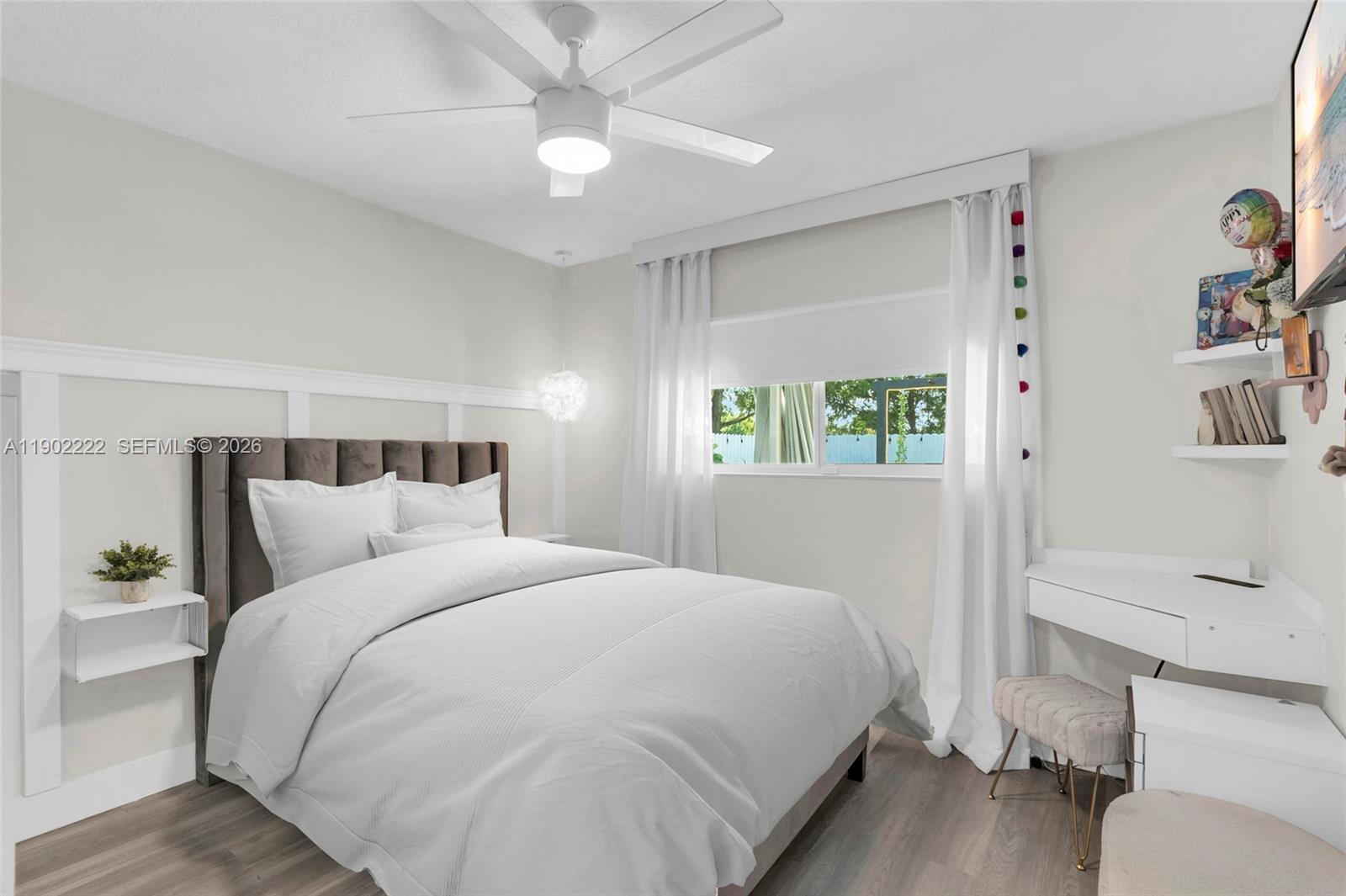 Fully remodeled modern gem in Miramar! This 5 bed, 4 bath home features an open concept layout, designer finishes an open concept layout, designer finishes, an electric fireplace, and a sleek white kitchen with quartz countertops and stainless steel appliances. The private backyard is an entertainer's dream with a covered patio, outdoor bar, turf lawn, and raised deck spa with a waterfall feature. Beautiful curb appeal with lush hedges and a long driveway. Move in ready and centrally located near top schools, and major highways, the perfect blend of luxury and lifestyle.