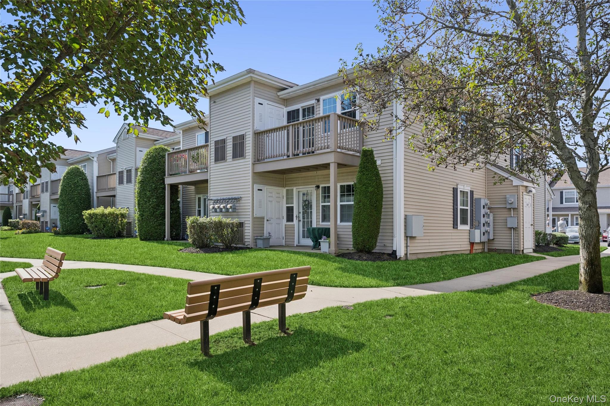 Exceptional Opportunity in Dutchgate at North Valley Stream. Welcome to this beautiful upper-level corner residence located in the desirable 55+ gated community of Dutchgate. This elegant second-floor condominium features high ceilings and a convenient stair lift chair, combining comfort and accessibility. The open-concept layout offers a spacious living and dining area, a modern kitchen with stainless steel appliances and tile backsplash, and two spacious bedrooms, each with double closets and two bathrooms including a private ensuite bathroom in the primary bedroom. Start your day with the morning sunrise from the bedrooms, or unwind on your private balcony while enjoying the peaceful natural surroundings. Additional highlights include an in-unit washer and dryer, gas heating, central air conditioning, and an assigned parking space conveniently located in front of your unit. Residents of Dutchgate enjoy access to a wide range of resort-style amenities, including a Clubhouse, Fitness Center, Outdoor Pool, Hobby and Game Room, Card Room, Library, Billiards Room, Ping Pong Table, Outdoor Patio, Multi-Purpose/Meeting Room, and a TV Room. This unit is ideally situated just a short distance from the Clubhouse for added convenience. Located near major highways, shopping centers, and public transportation, this home offers the best of comfort, convenience, and community living.