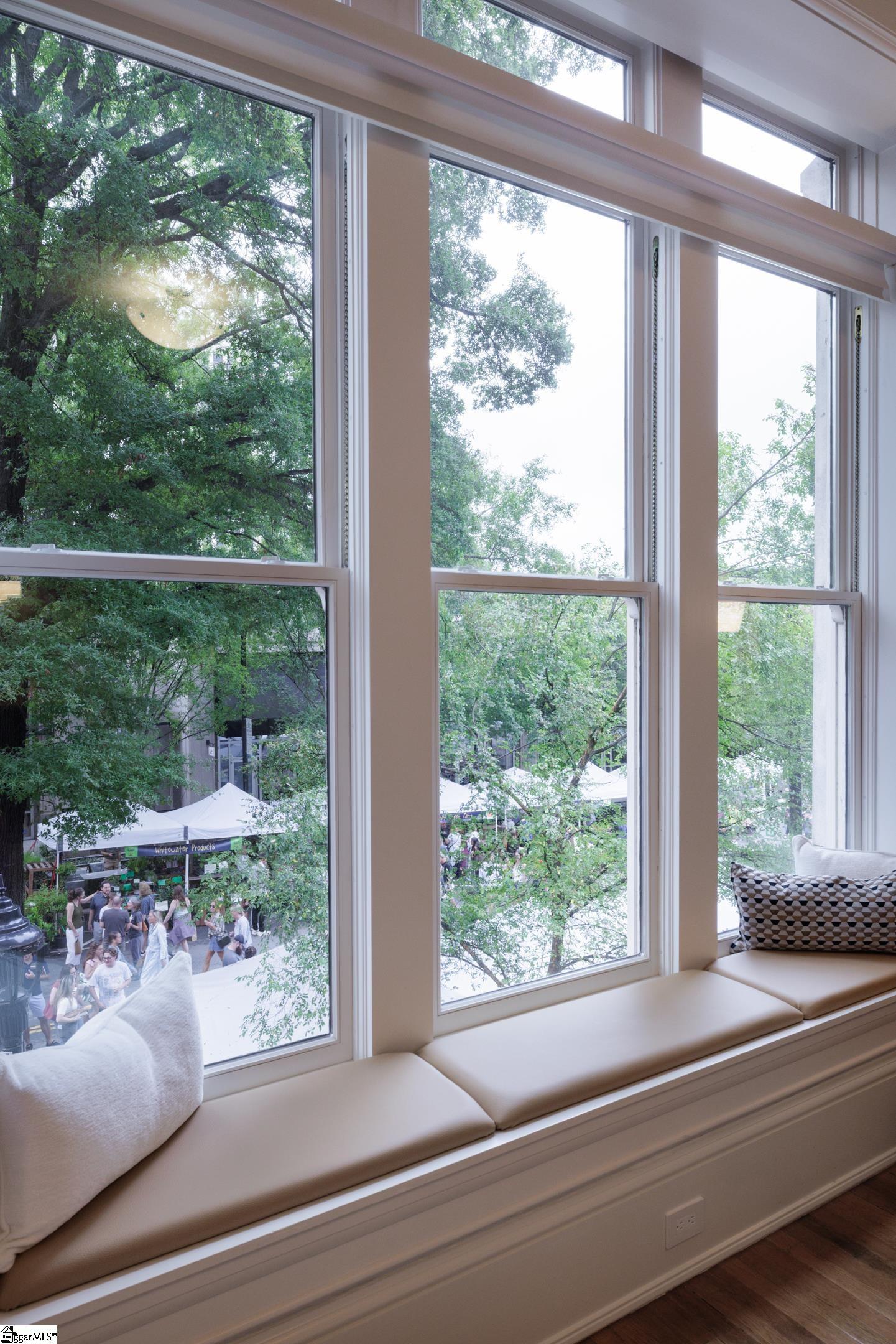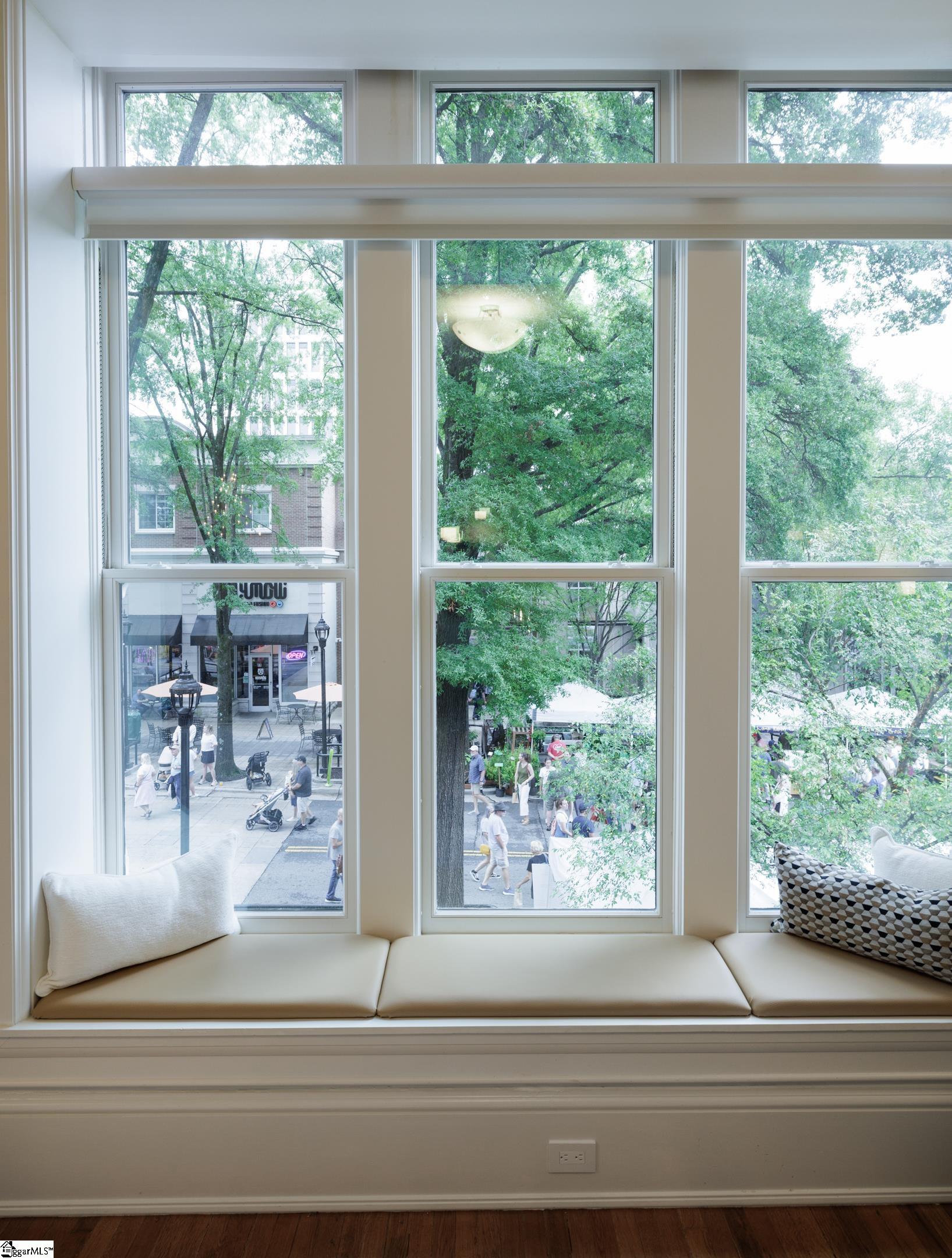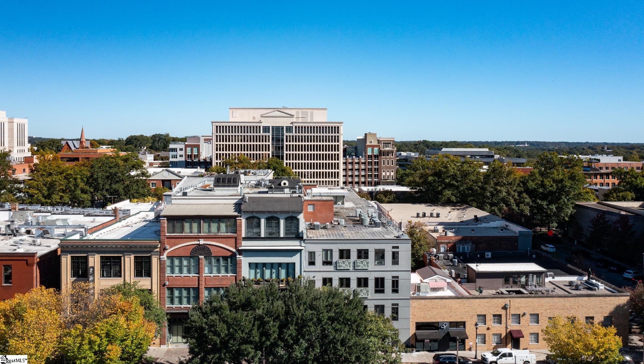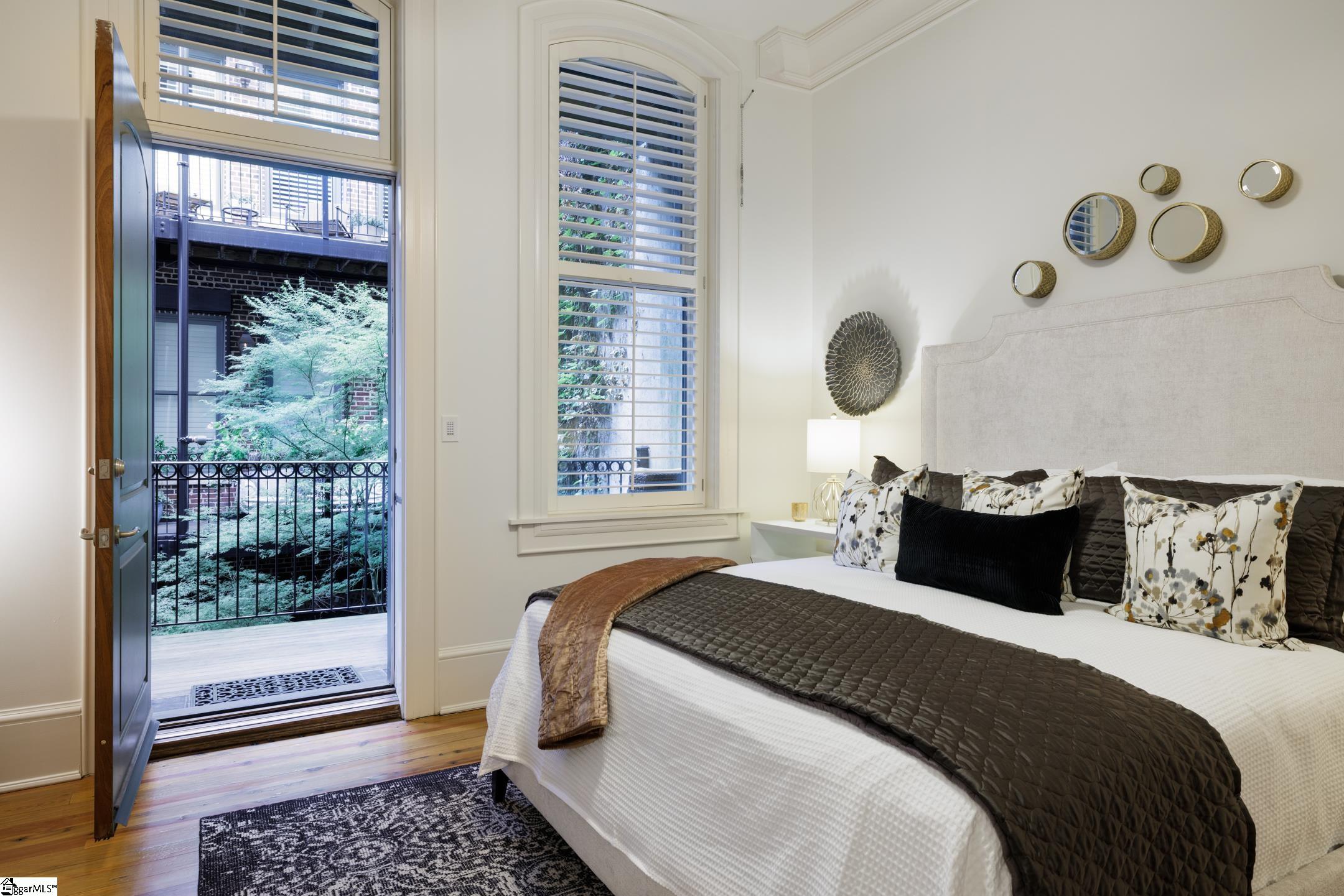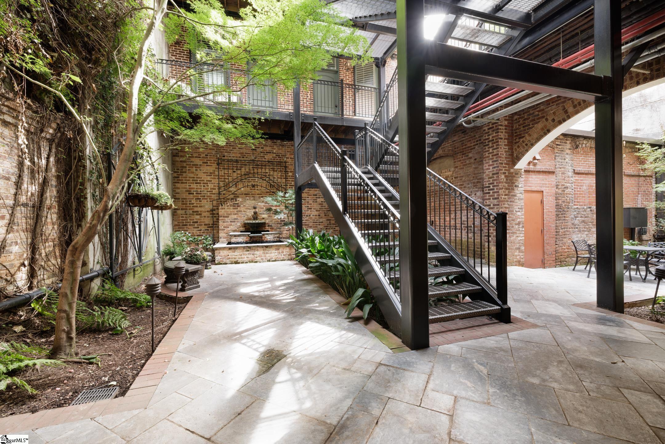 Welcome to 18 South Main Street, Residence 201—a rare offering where architectural heritage and modern luxury converge. Set within the historic Park Place on Main (circa 1919), this extraordinary home is part of a masterful transformation completed in 2010, converting two original buildings into just seven high-end residences. The five rear home units face Laurens Street, while the remaining two—including Residence 201—enjoy premier frontage along Main Street. Between the two buildings lies the exquisite courtyard, a beautifully designed indoor and outdoor space including covered seating with limestone fireplace and wet bar; grilling and dining al-fresco amongst stunning hardscape and landscape features; entry to your pub/lounge and wine cellars. This exclusive community delivers the aesthetic and craftsmanship of a bygone era paired seamlessly with contemporary sophistication that is rarely found today. Enter your unit directly from Main Street just one flight up, or arrive through the Laurens Street rear entry, where your two reserved parking spaces are located. From either entrance, you can walk or take your private elevator directly into your residence. Inside, oversized windows, soaring ceilings, and an open, modern interior create a refined yet inviting atmosphere. Solid historic masonry construction provides exceptional quiet and privacy—an amenity rarely found in the heart of downtown. The layout is exceptional: two ensuite bedrooms overlook the tranquil courtyard, while the kitchen, dining, and living spaces front vibrant Main Street—an ideal balance of serenity and city energy. A gracious entry gallery features a curved architectural wall, library/office/flex space, and a concealed full-size Murphy bed offering elevated guest accommodations without compromising design. Park Place on Main offers refined luxury living in the heart of Greenville’s most vibrant downtown scene—steps to award-winning dining, boutique shopping, live music, theater, seasonal events, and beautiful outdoor spaces for an active lifestyle. Truly this home captures the essence of Greenville. Make your private appointment today to experience this exceptional residence in person. Please see Associated Documents for the complete list of features and important property information.